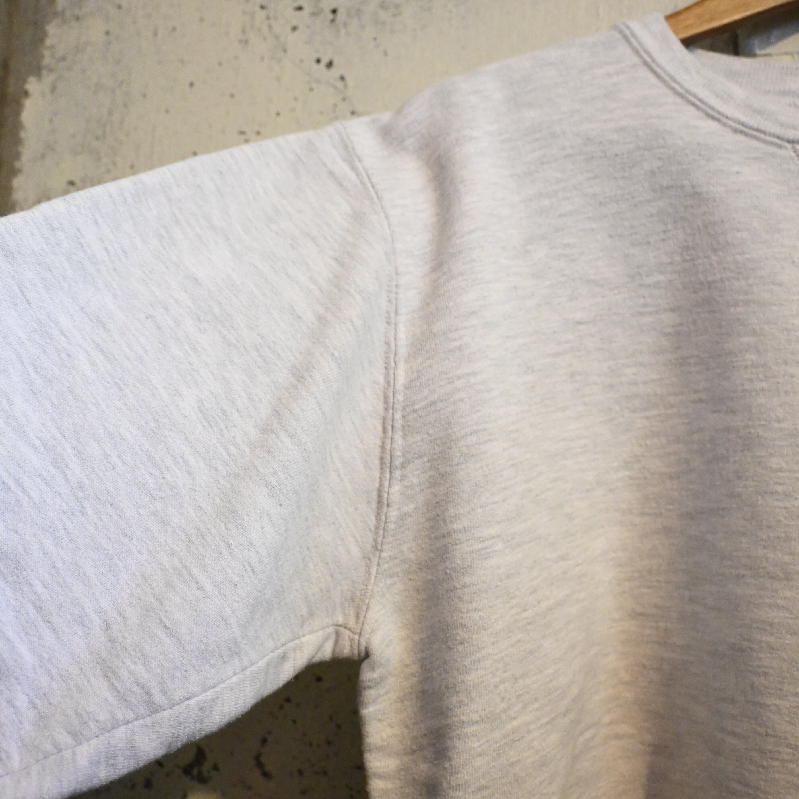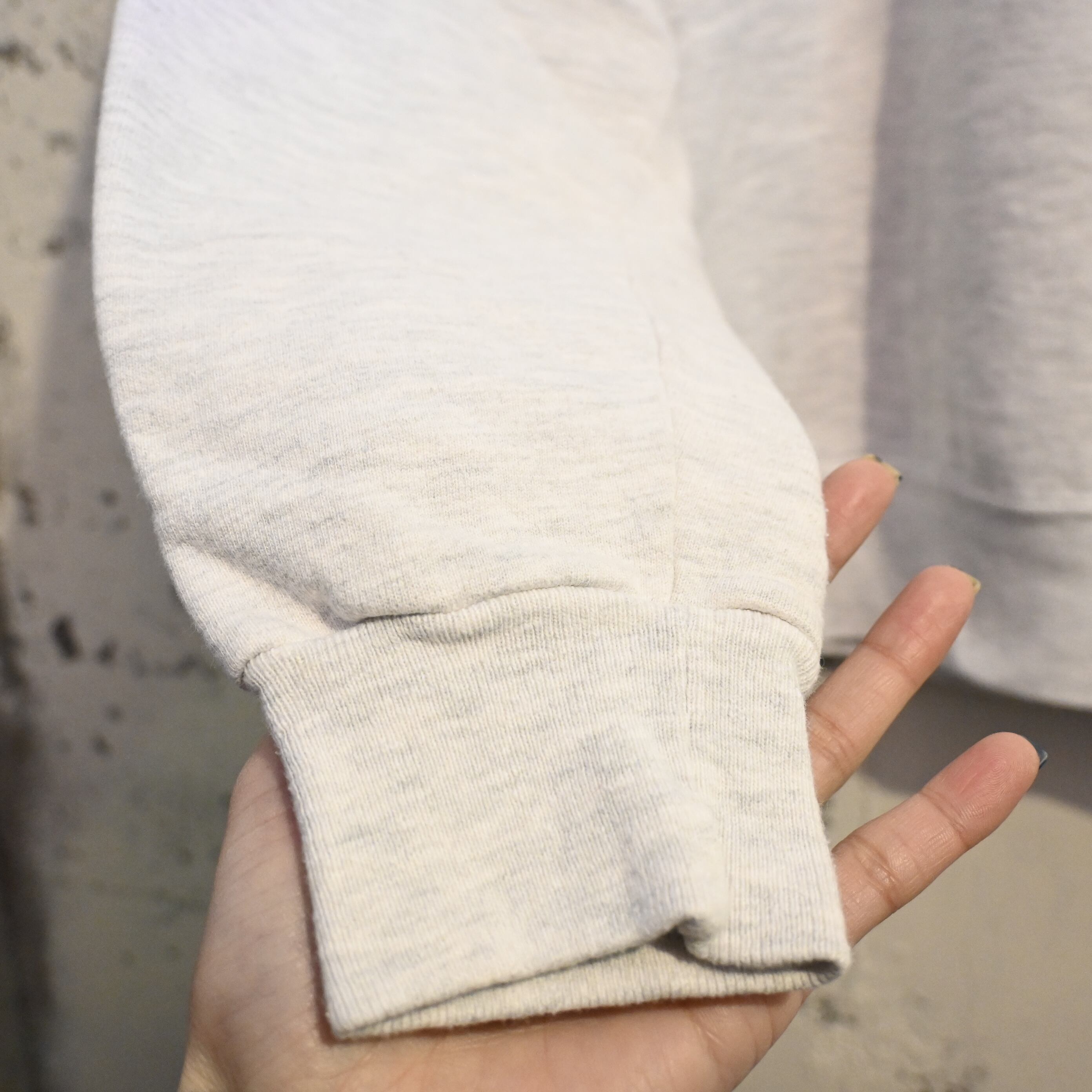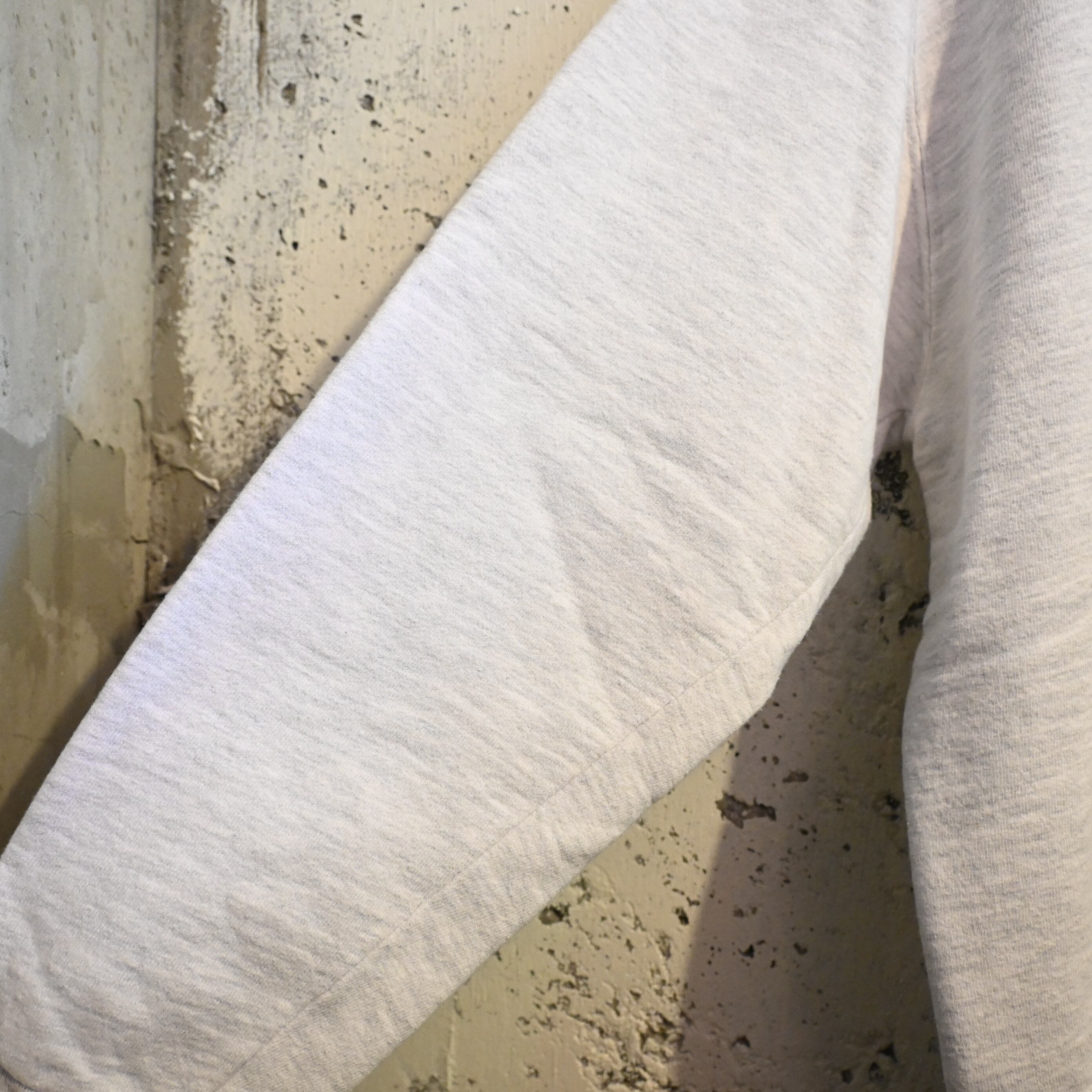 リバースウィーブとは異なる クラシックな縦編みスウェット で、柔らかく軽めの着心地が特徴。