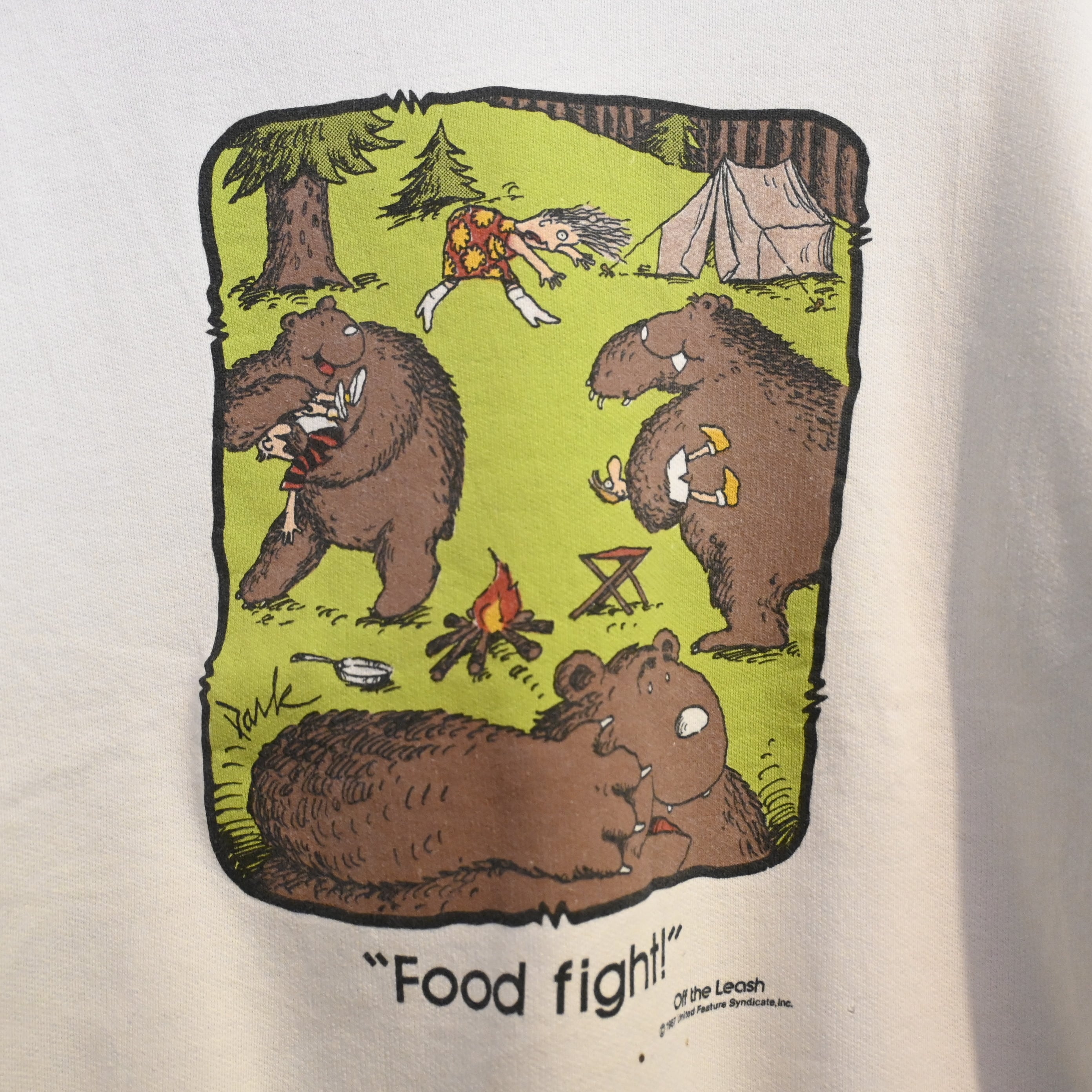 [ L ] TICORE CANADA "Food Fight" Off the Leash 1987 Print Sweatshirt / ヴィンテージ スウェット フードファイト 熊プリント 1987年 コピーライト