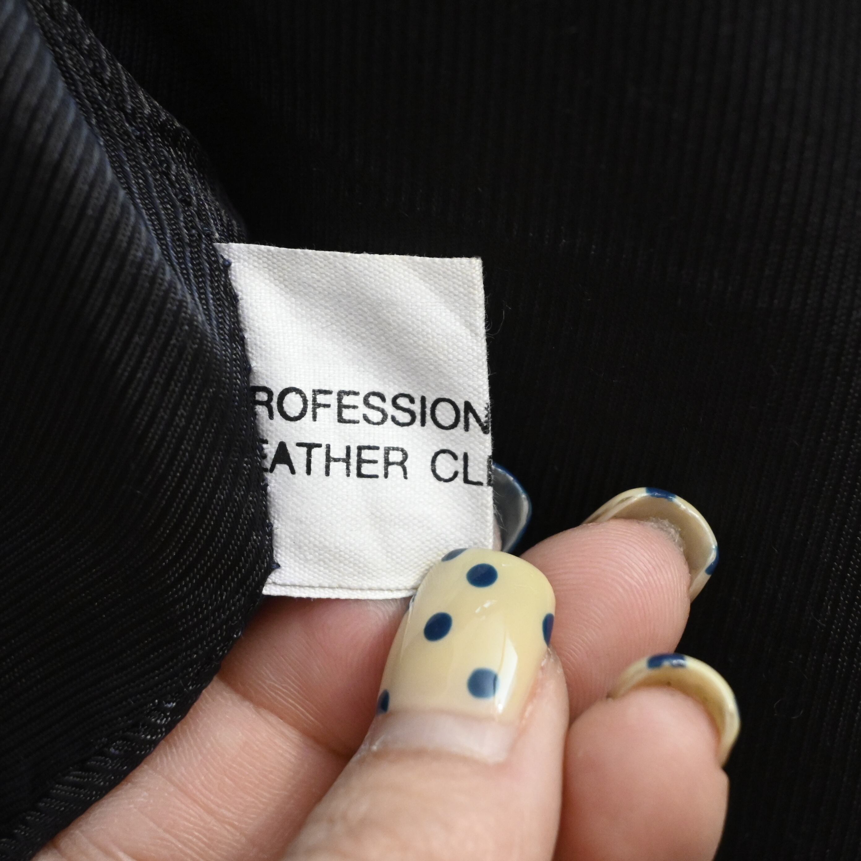 タグ表記には「PROFESSIONAL LEATHER CLEAN」「REAL SUEDE CLEAN ONLY」とあり、本革スエード素材であることが確認できます。