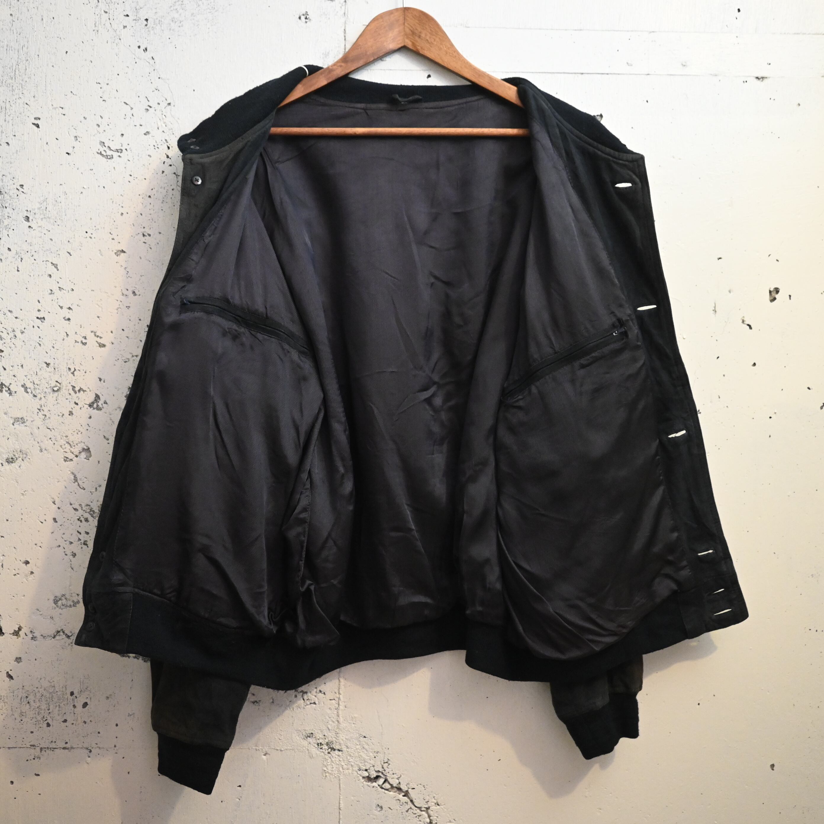 バルスタージャケットは、A-1フライトジャケットやスポーツブルゾンの流れを汲みながら、1980〜90年代にヨーロッパ古着でも多く見られたレザーブルゾンの定番型。こちらも余計な装飾を抑えたシンプルな設計で、素材の質感とシルエットが際立つ仕上がりです。