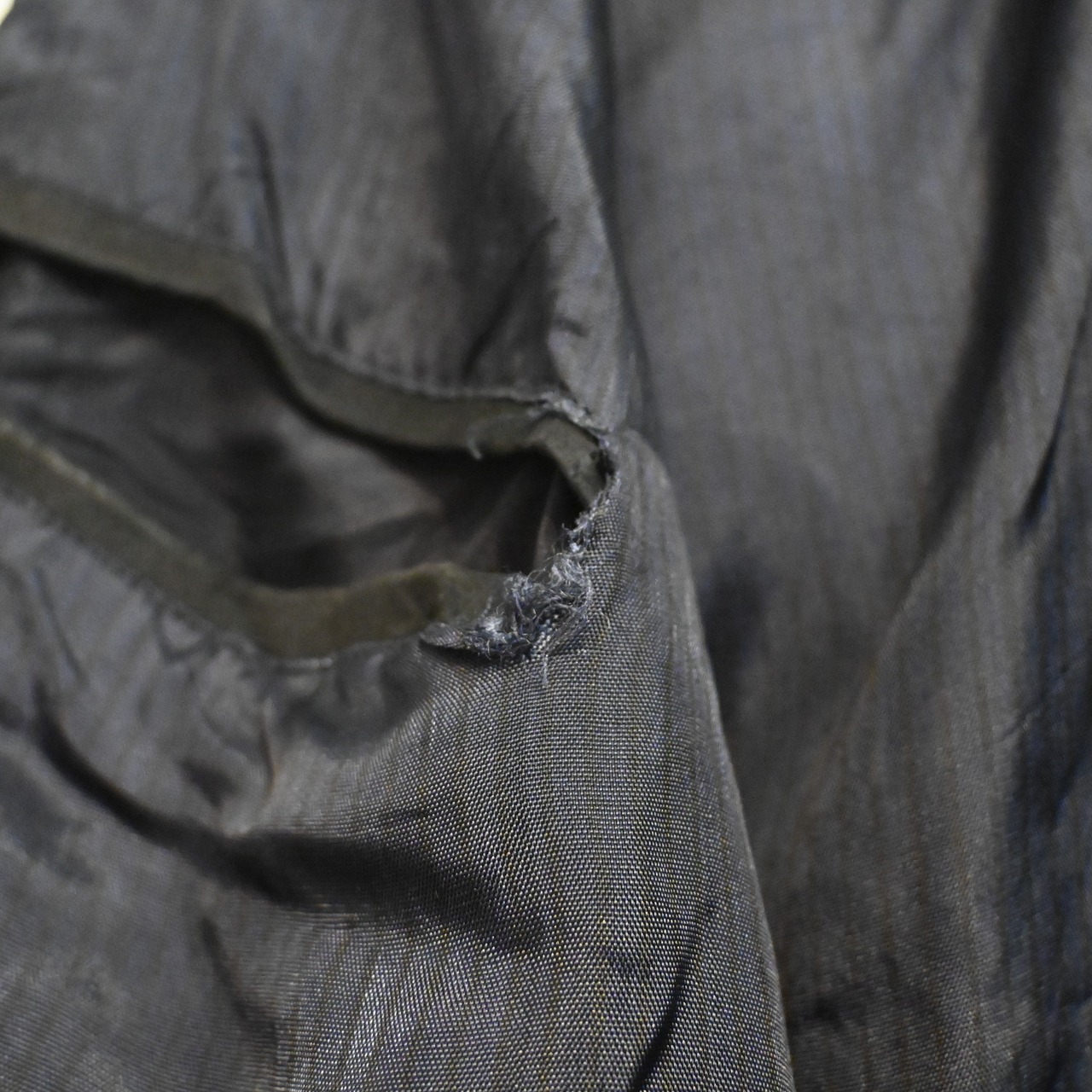 右袖部分にファスナーの跡のようなあたりがあります。下の2つのボタンが取れています。