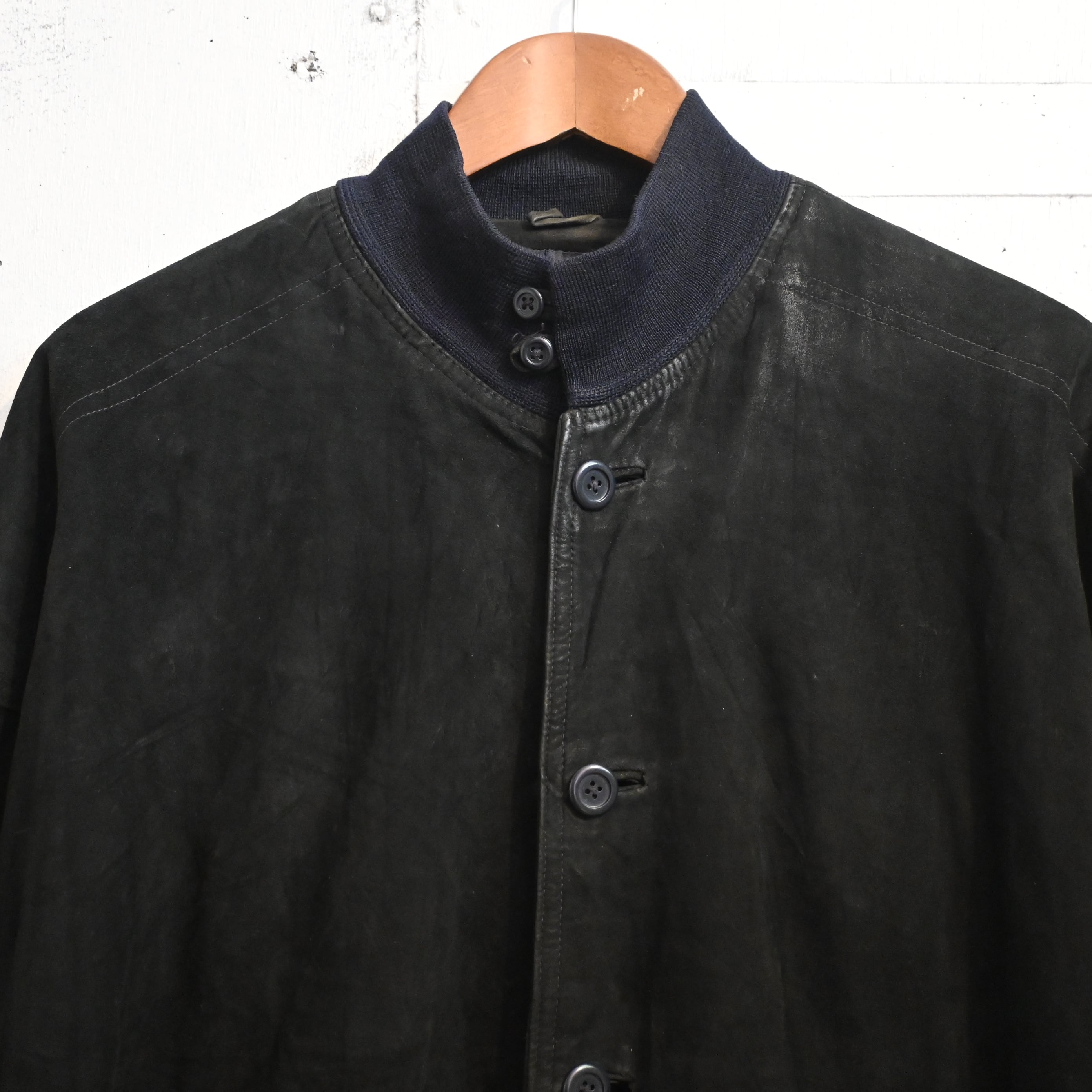 [ about L ] Unknown Suede Leather Barstar Jacket , Black / スエードレザー バルスタージャケット ブラック