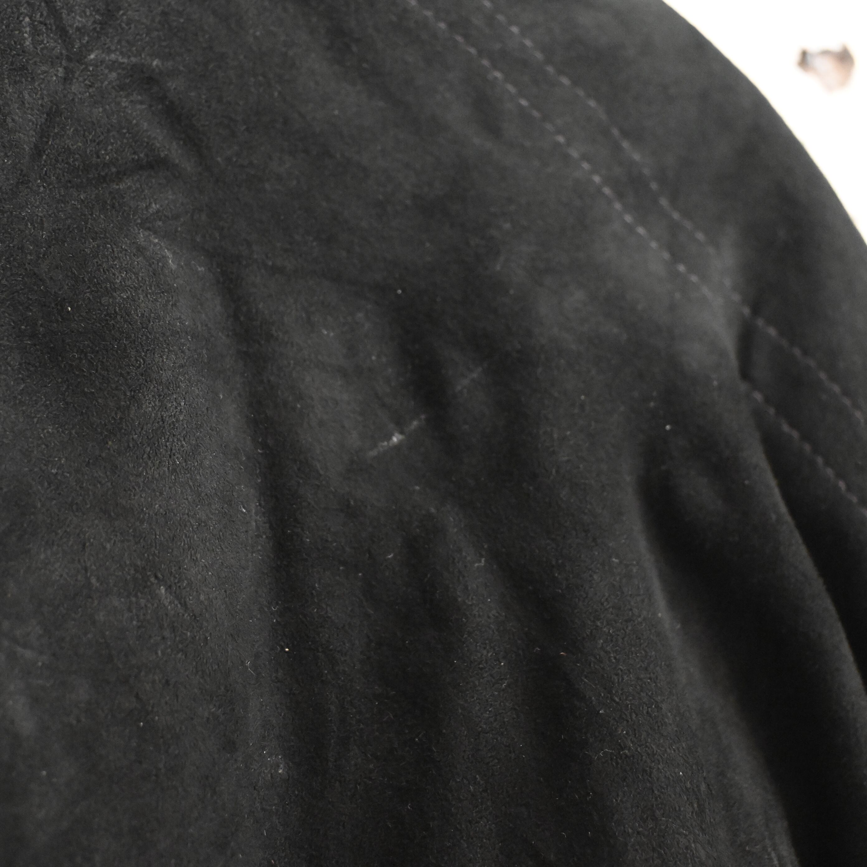 しっとりとした質感のスエードレザーを使用した、クラシックなブラックカラーのバルスタージャケットです。