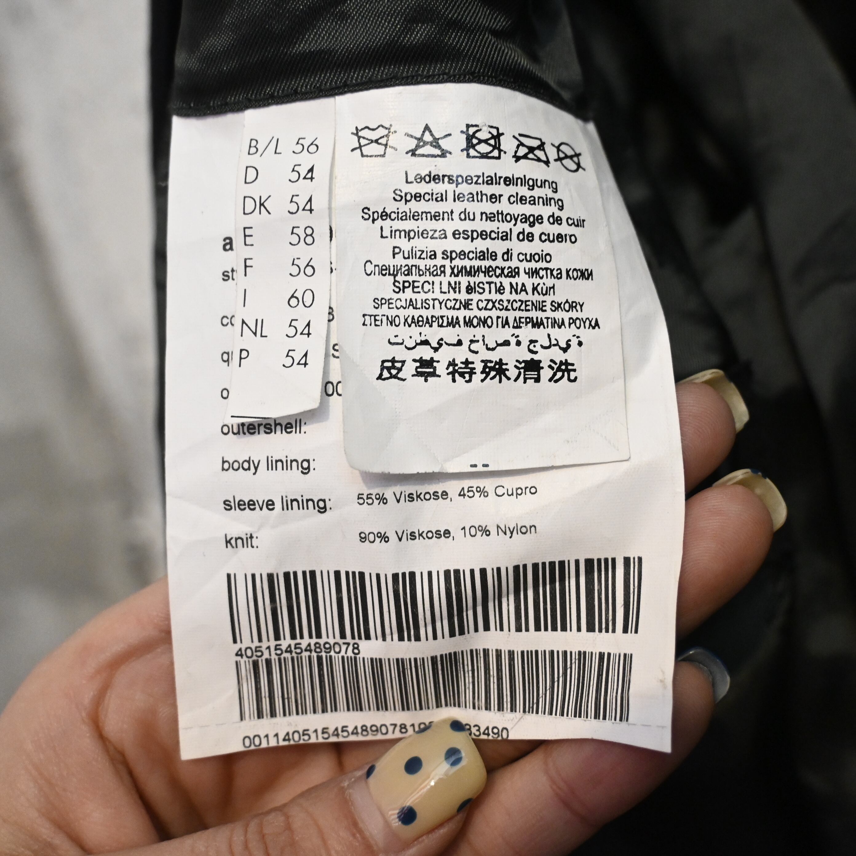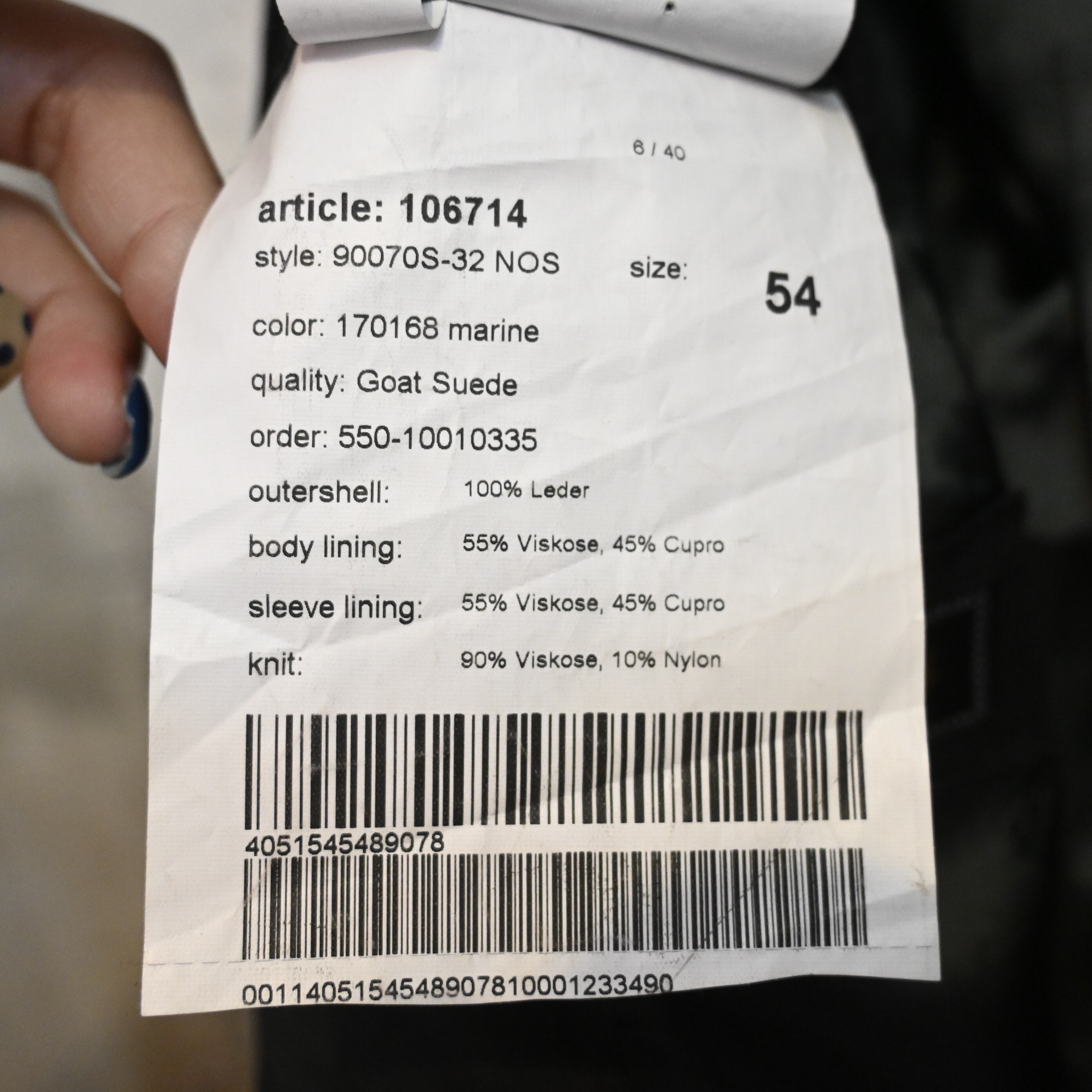 タグには「LUXUS SEIT 1897」の表記が入り、品質ラベルでは「Goat Suede」「color : marine」と明記。ドイツ語表記を含むことからドイツ流通背景を感じる仕様で、ヨーロッパ古着らしい上質な作りです。裏地は55%ビスコース・45%キュプラで滑りが良く、袖通しも非常にスムーズです。