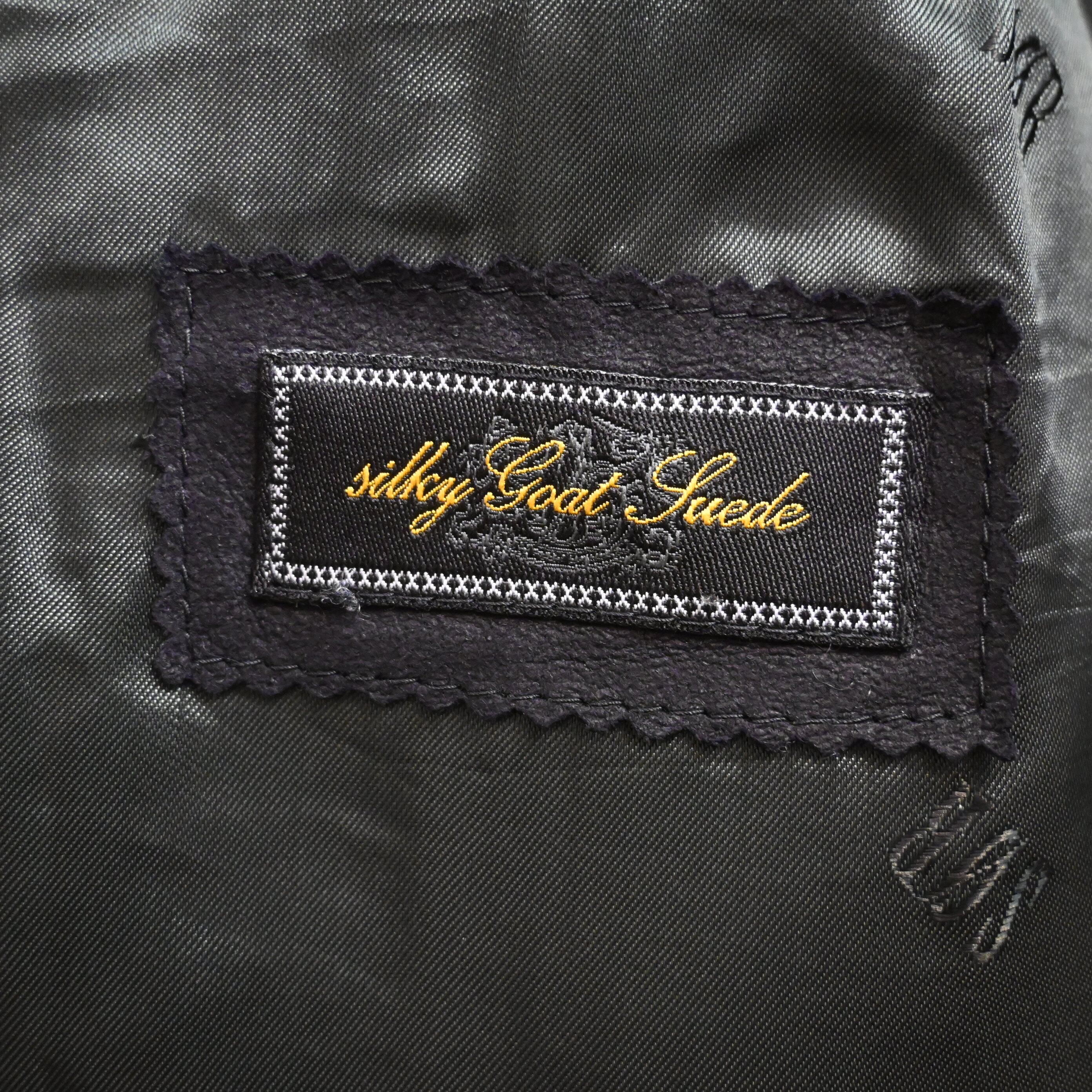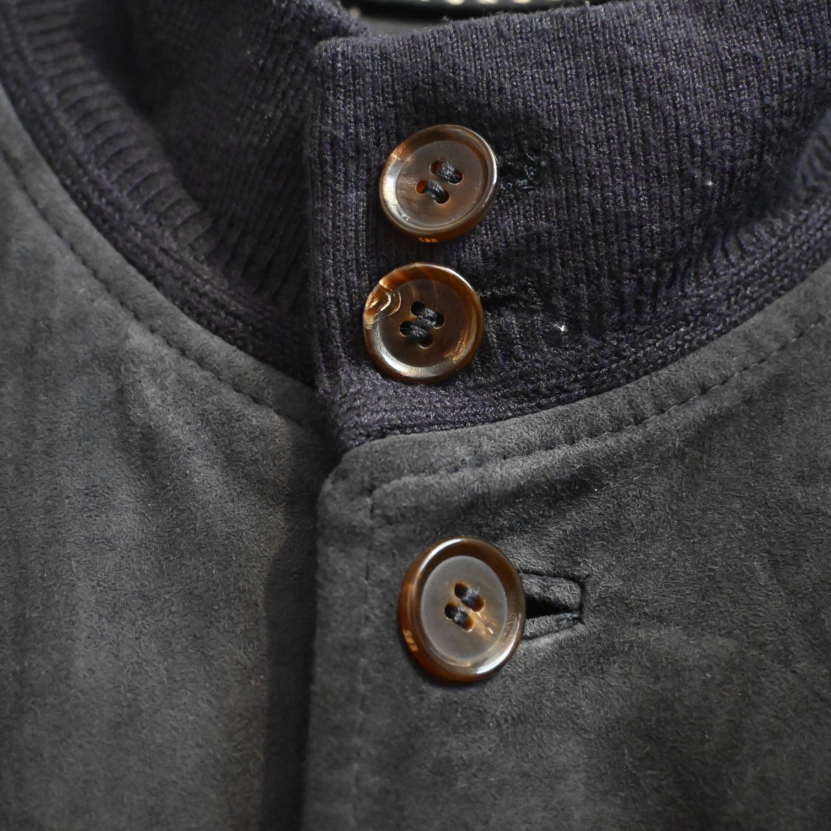落ち着いた深みのあるダークネイビーカラーに、しなやかなゴートスエード(山羊革)を使用した一着で、一般的なカウスエードに比べて軽さと柔らかさがあり、着用時の馴染みの良さが魅力です。