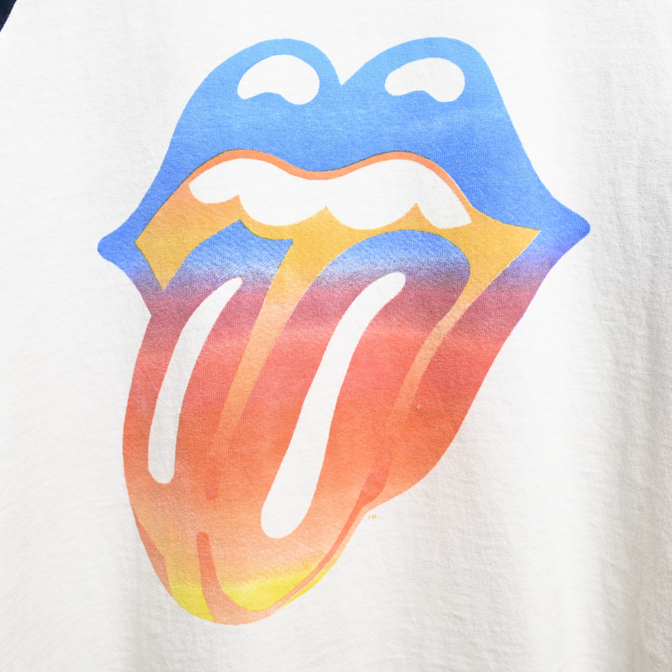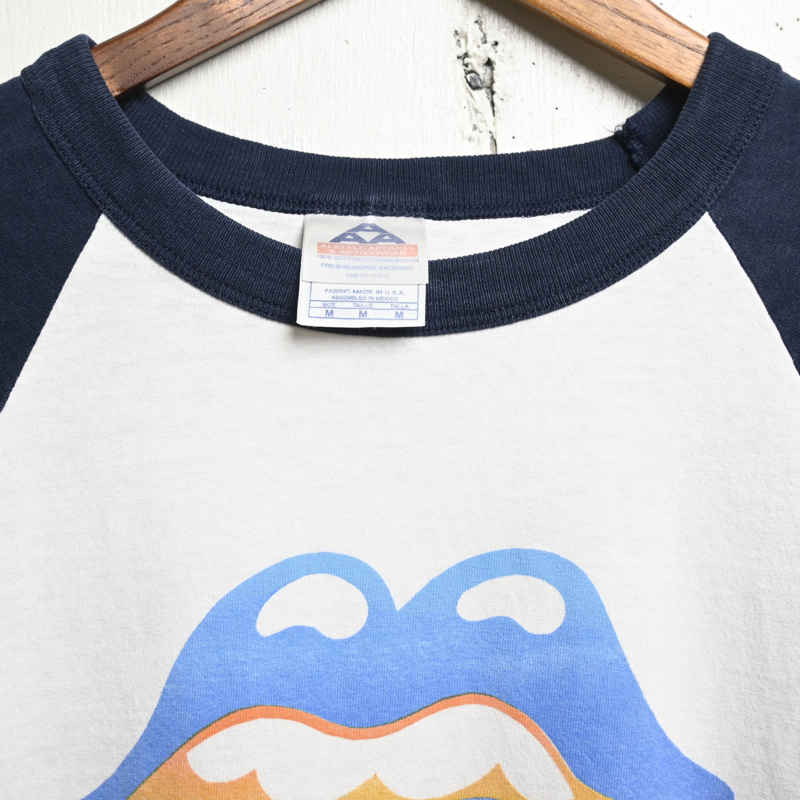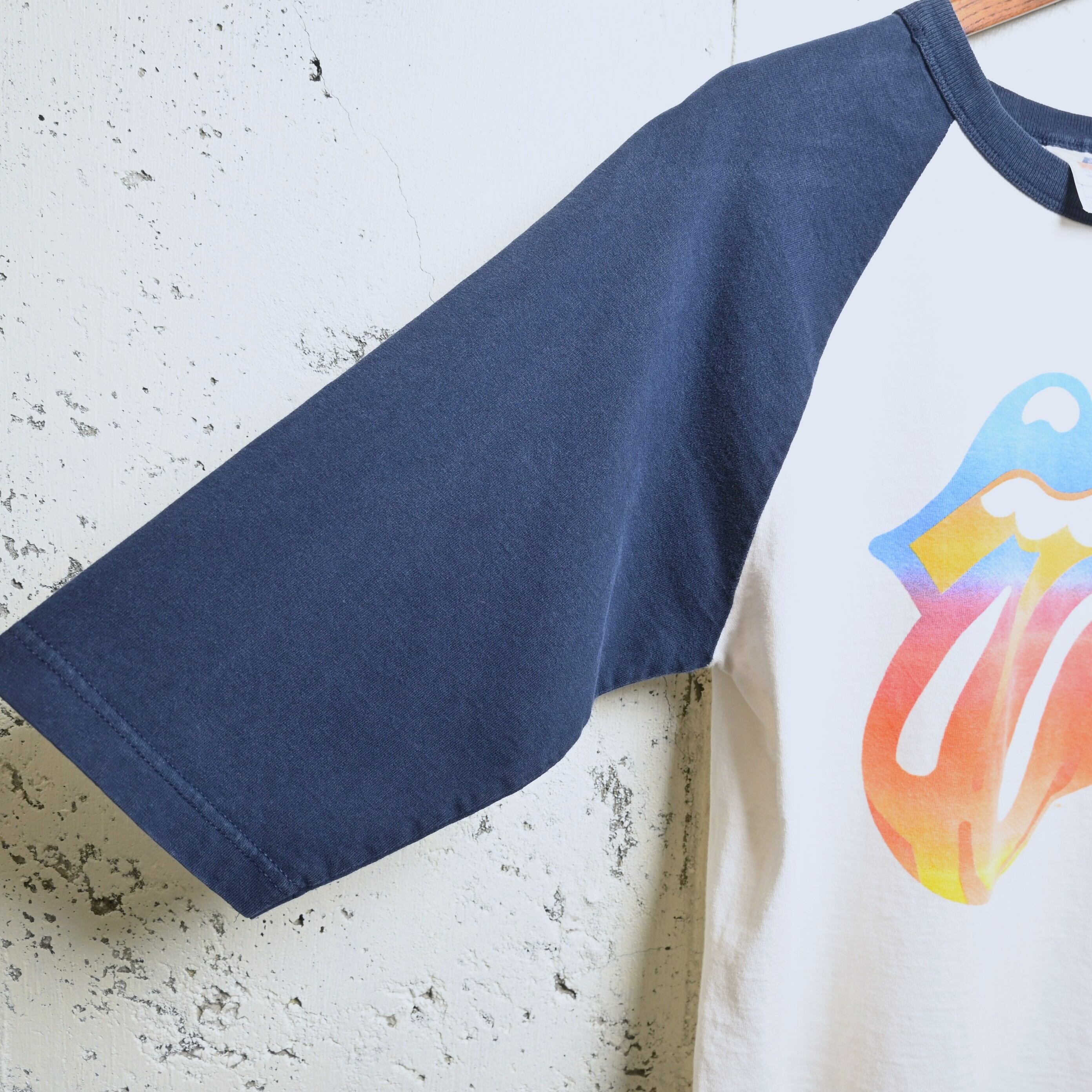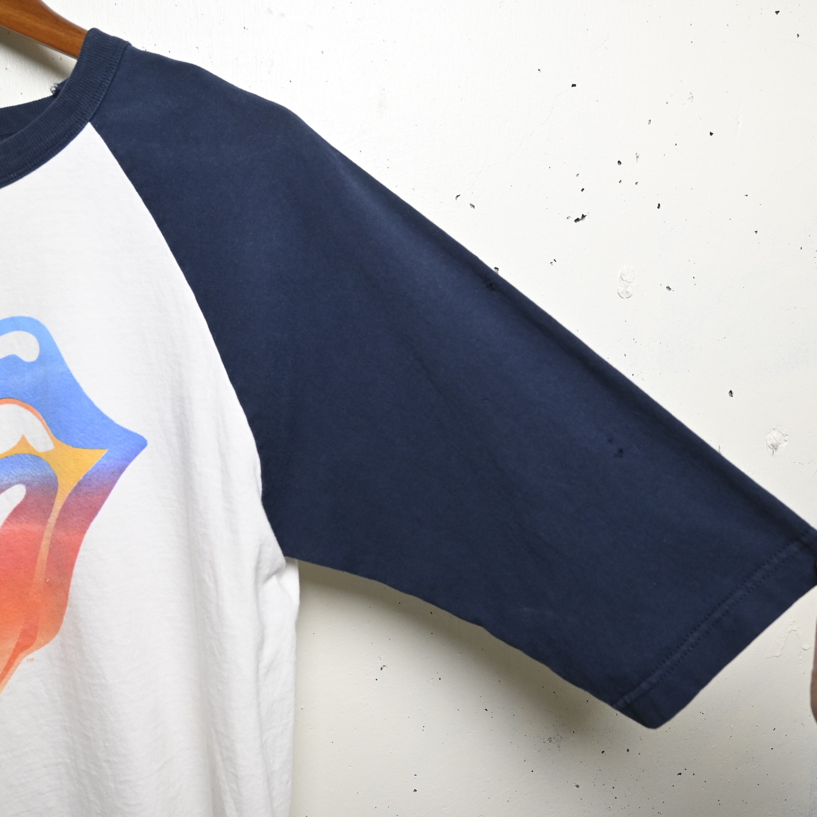 [ M ] AAA 2002年 USA製 "THE ROLLING STONES" Raglan Band T-shirt ,White-Navy