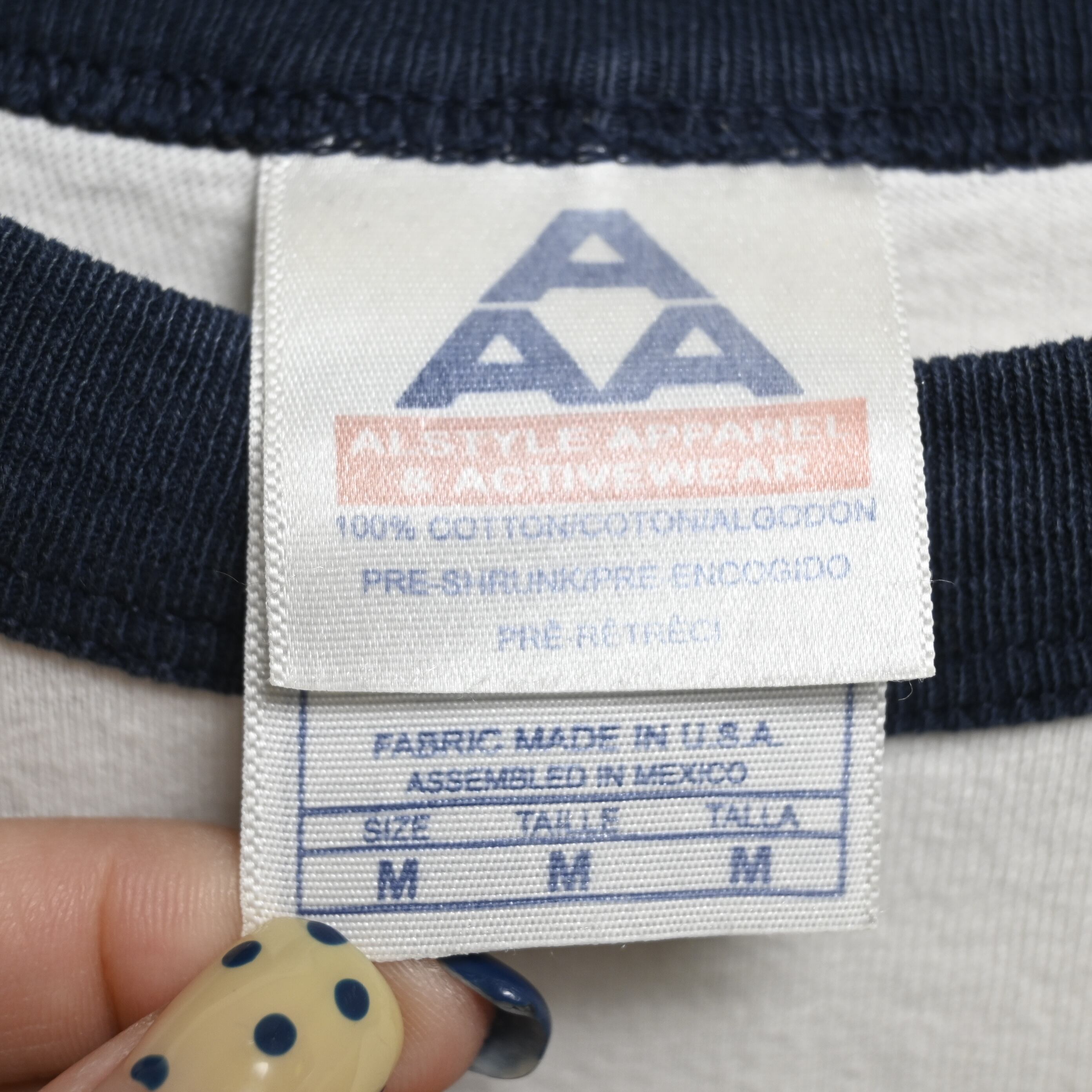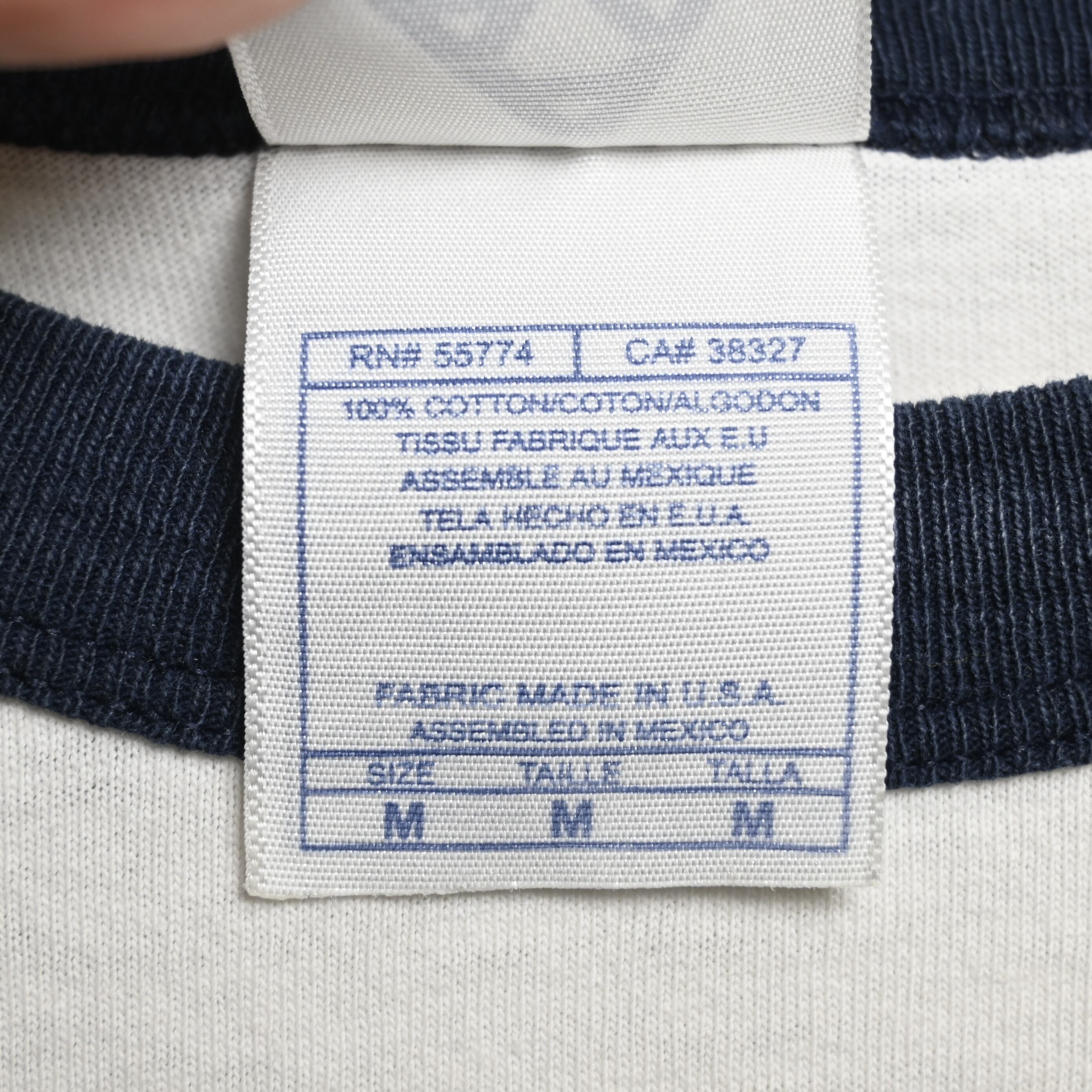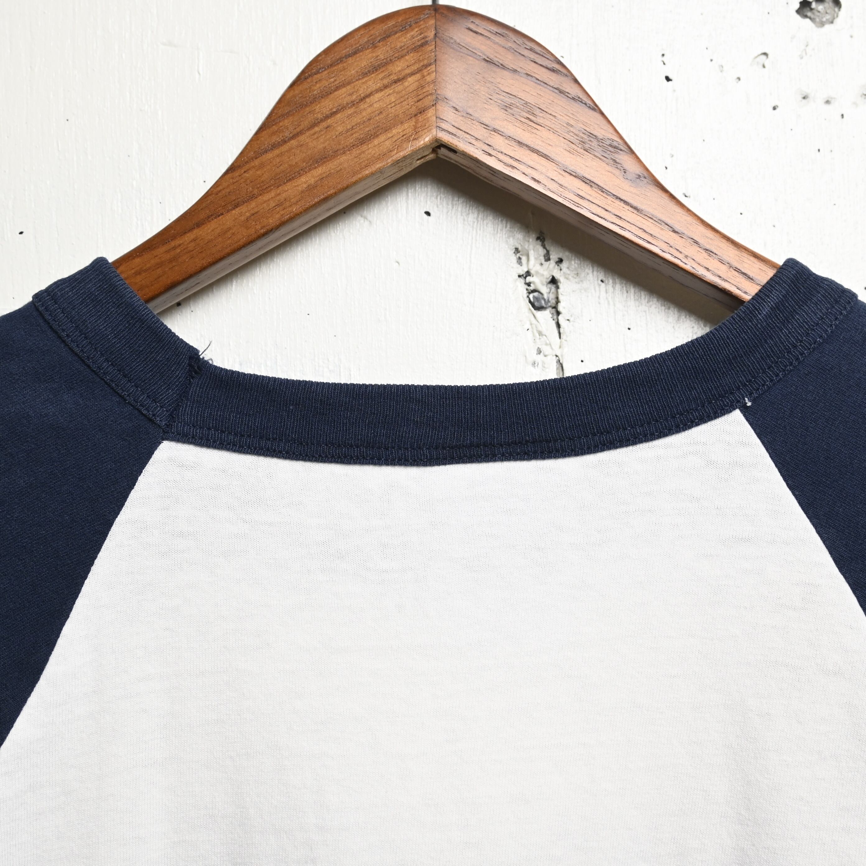 ボディはAAA製、Fabric Made in U.S.A. / Assembled in Mexico表記。コットン100%のラグラン仕様で、着込むほどに柔らかく馴染みやすい生地感です。デニムや軍パンとの相性はもちろん、ジャケットのインナーでもプリントが映える一枚です。