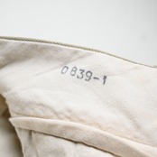 フロントはアルミジッパー仕様、無駄のないプレーンなフロントデザインに、バックは片側ボタン付き・片側玉縁ポケットのシンプルな構成。軍支給品らしい合理性がありながら、現代のワードローブにも自然に馴染む完成度の高いデザインです。