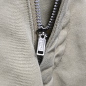 生地はしっかりとしたコットンツイル。50年代以前の厚手チノと比べるとやや軽やかで、通年穿きやすいバランスです。色味はやや明るめのカーキで、経年による柔らかな表情もあり、スウェット・シャツ・ジャケットまで幅広く合わせられます。