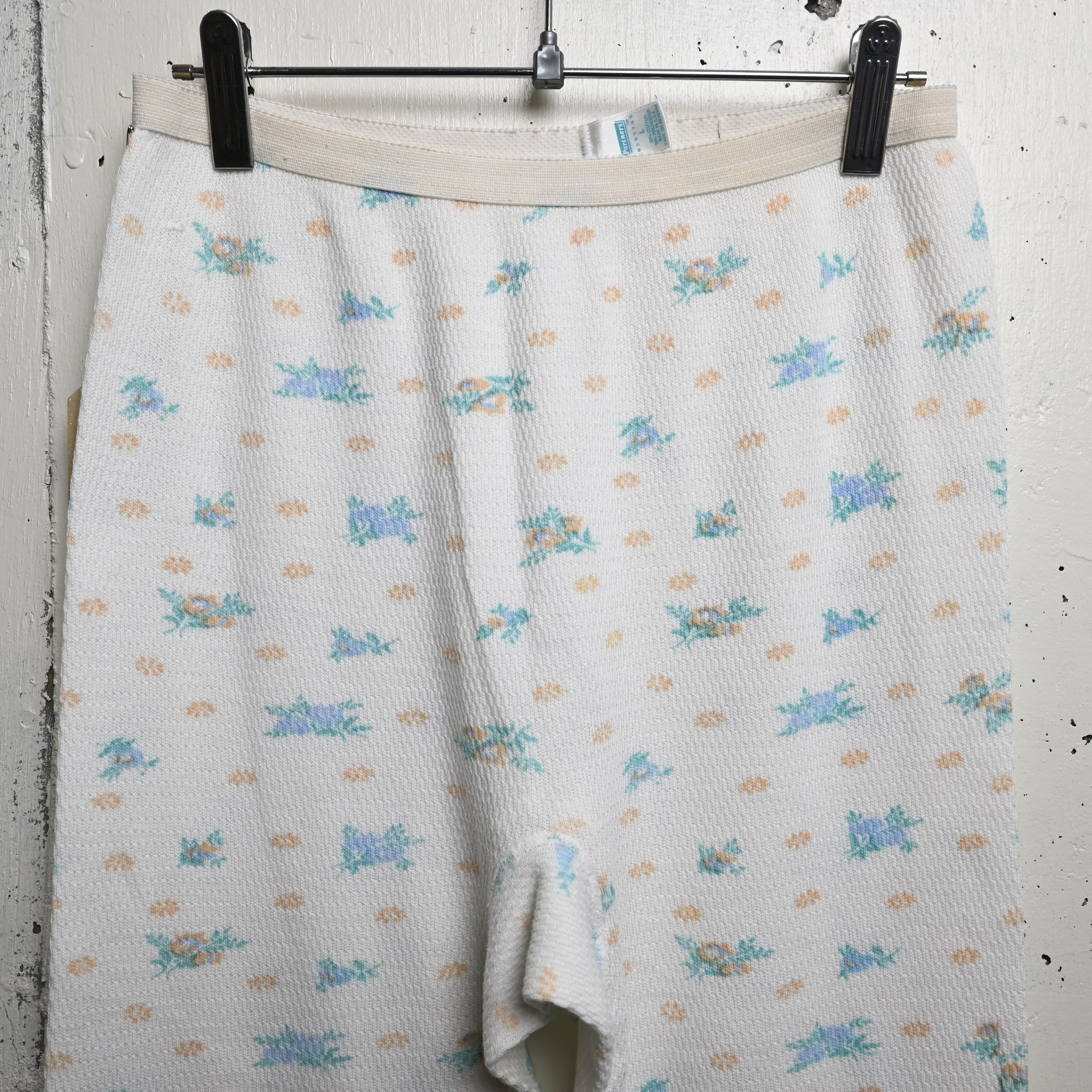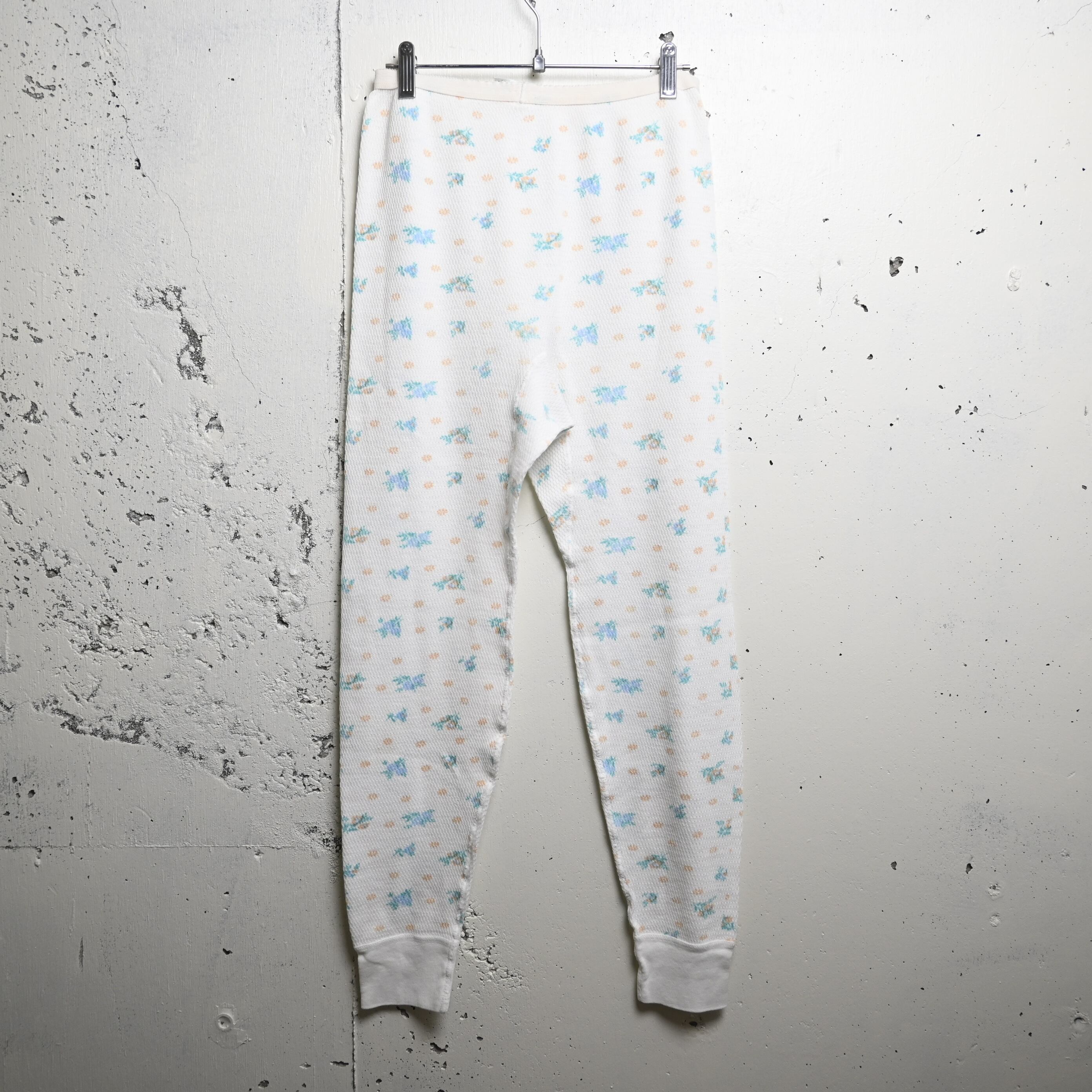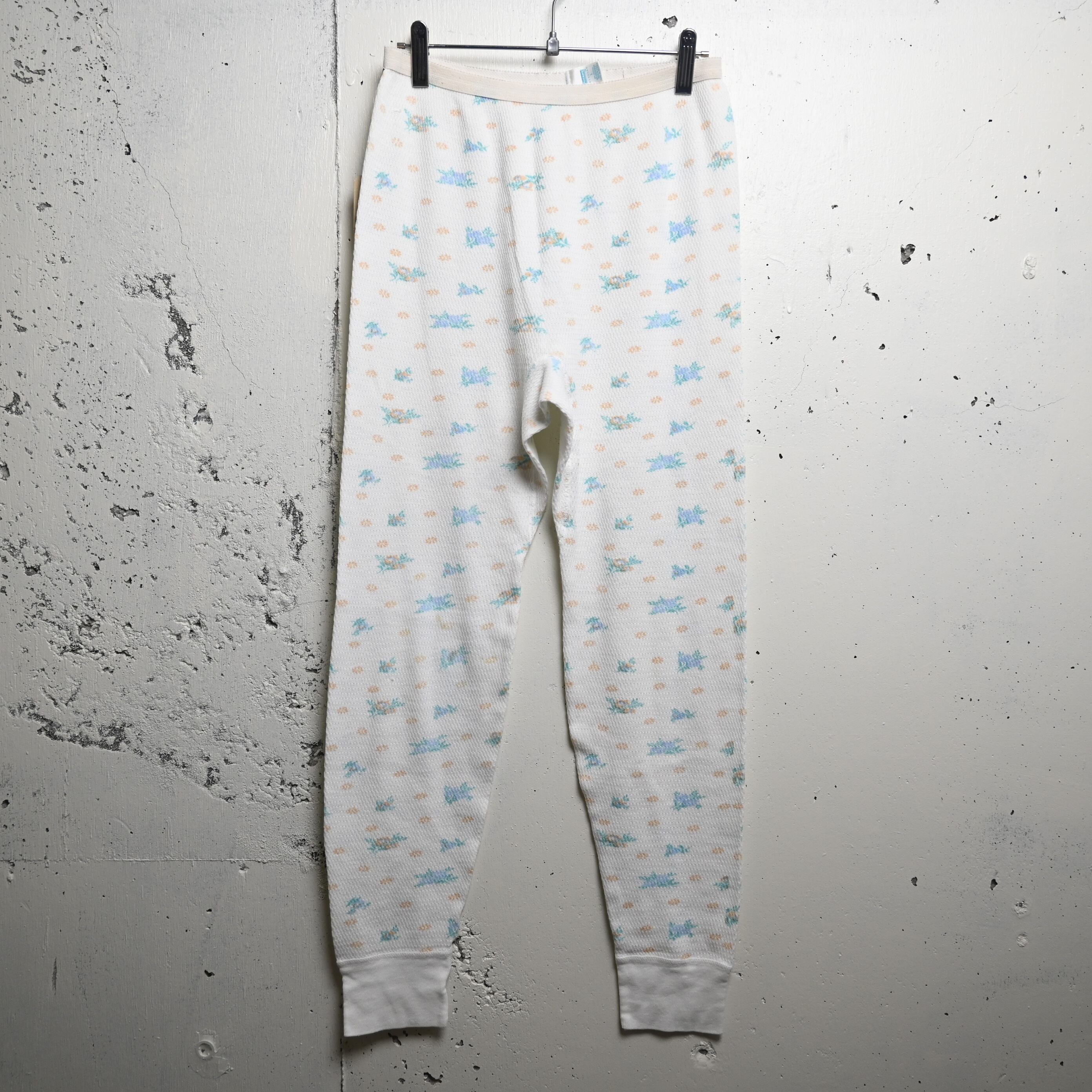 [ L ] Partners 90s USA製 Floral pattern Thermal Pants , White / パートナーズ フローラル柄 サーマルパンツ