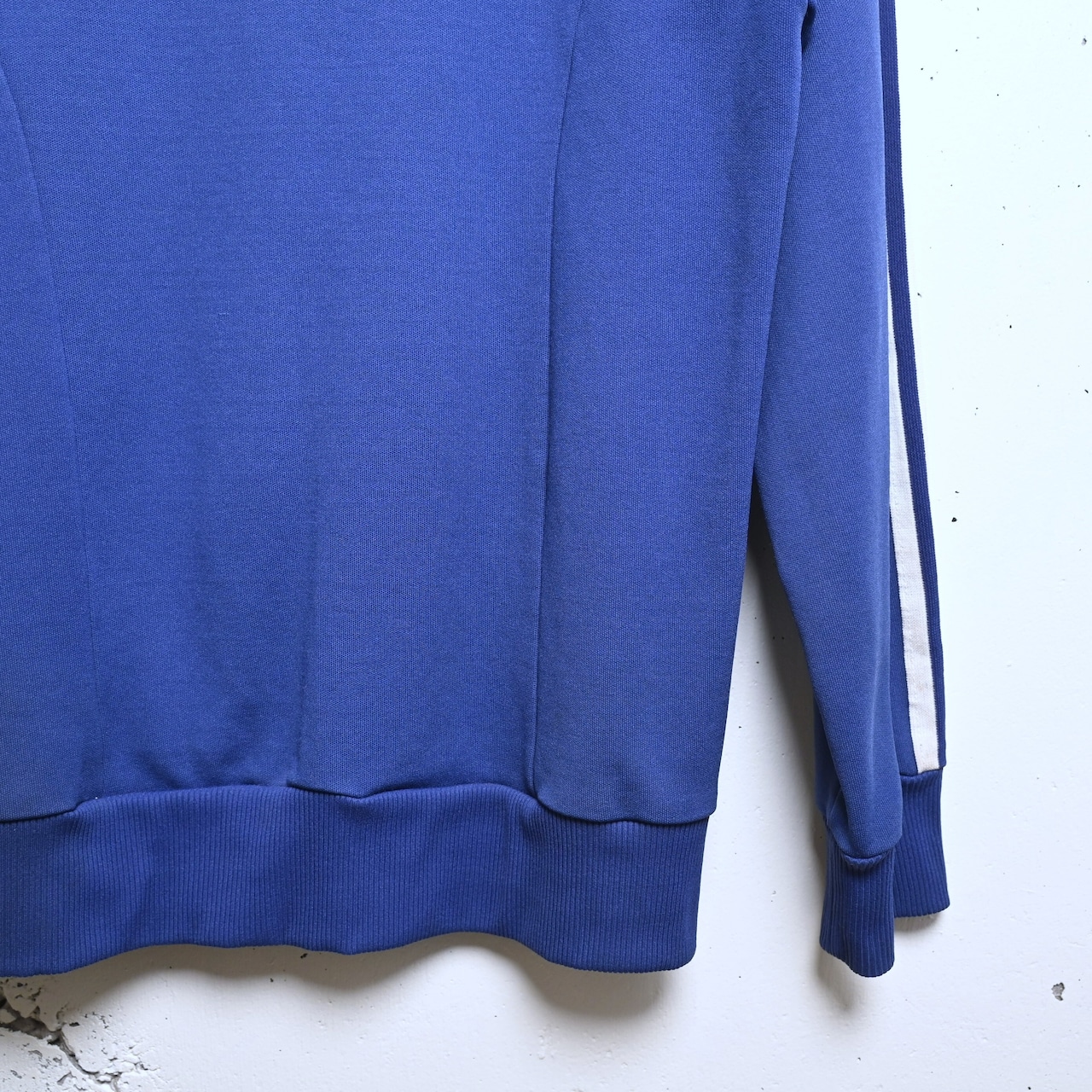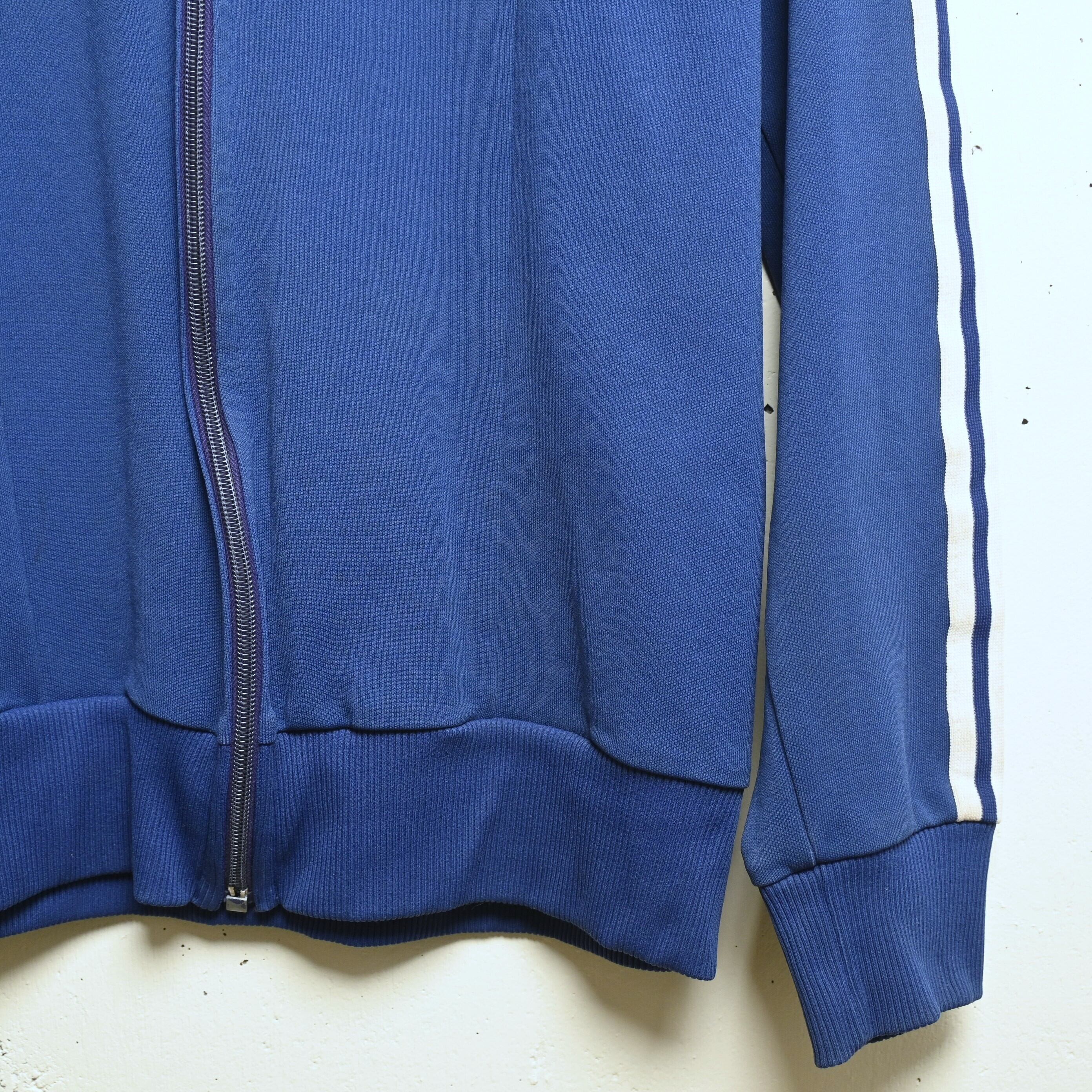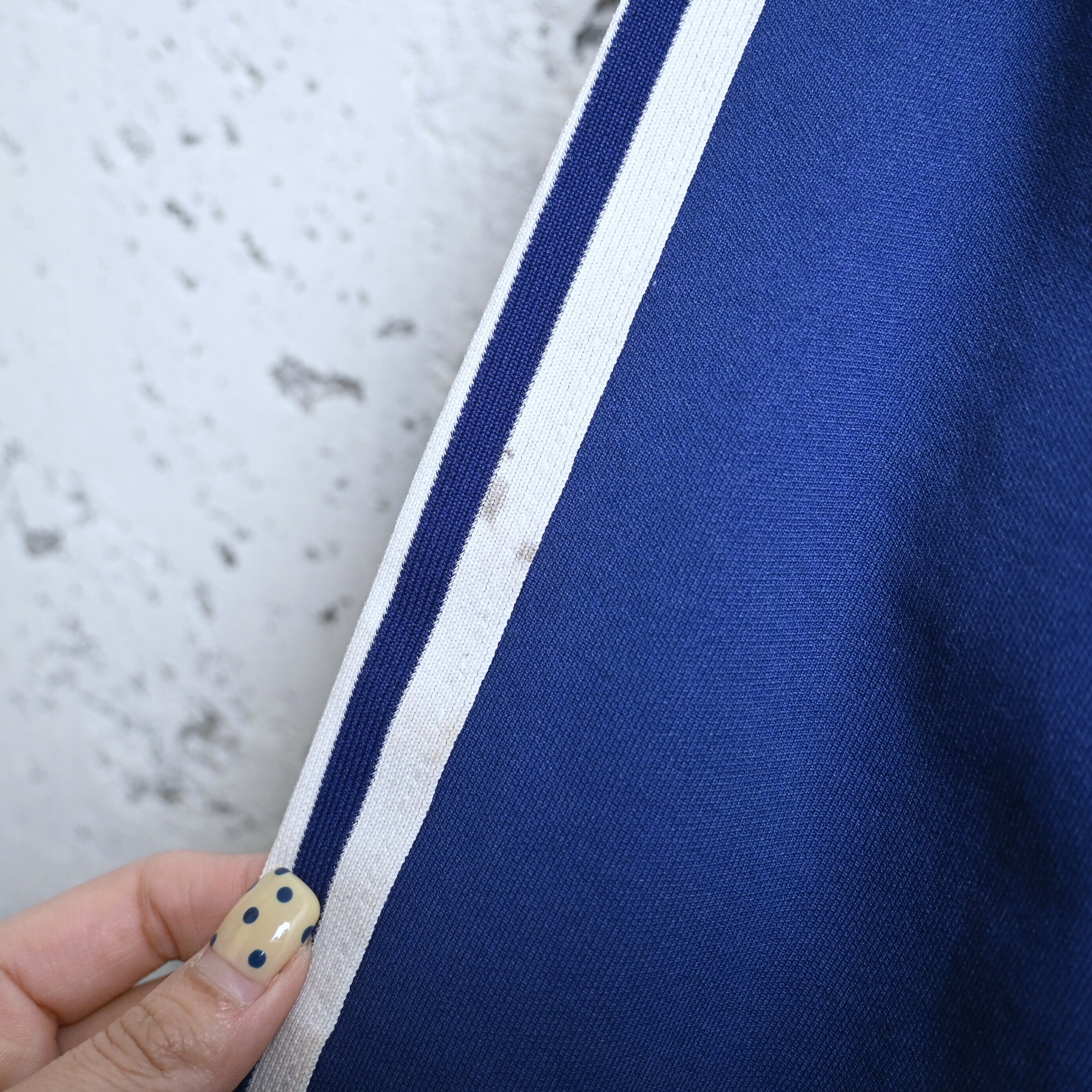 近年は西ドイツ〜ヨーロッパ生産期の無地系トラックジャケットも評価が高く、こうしたシンプルなブルー×ホワイト配色は年代問わず安定して人気があります。