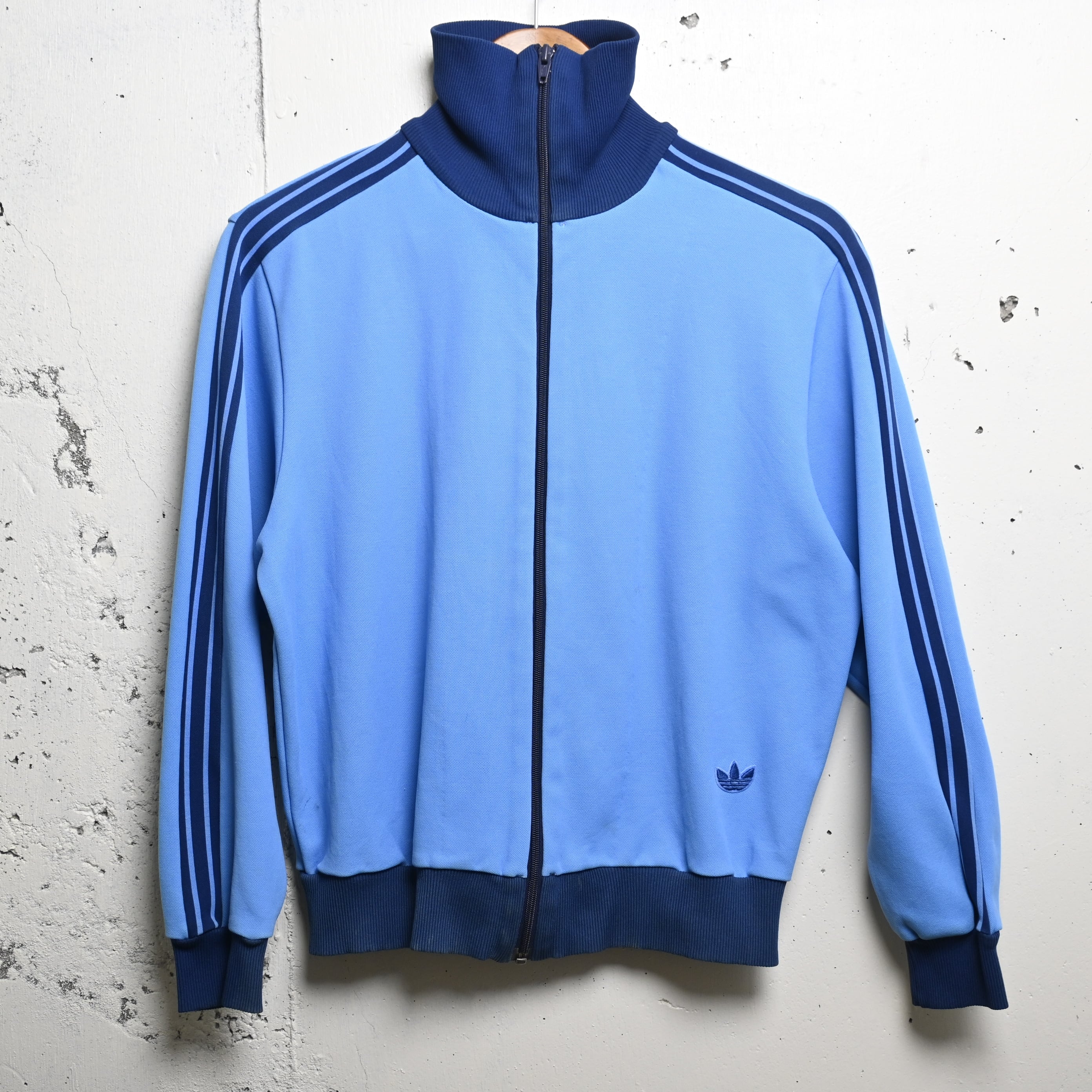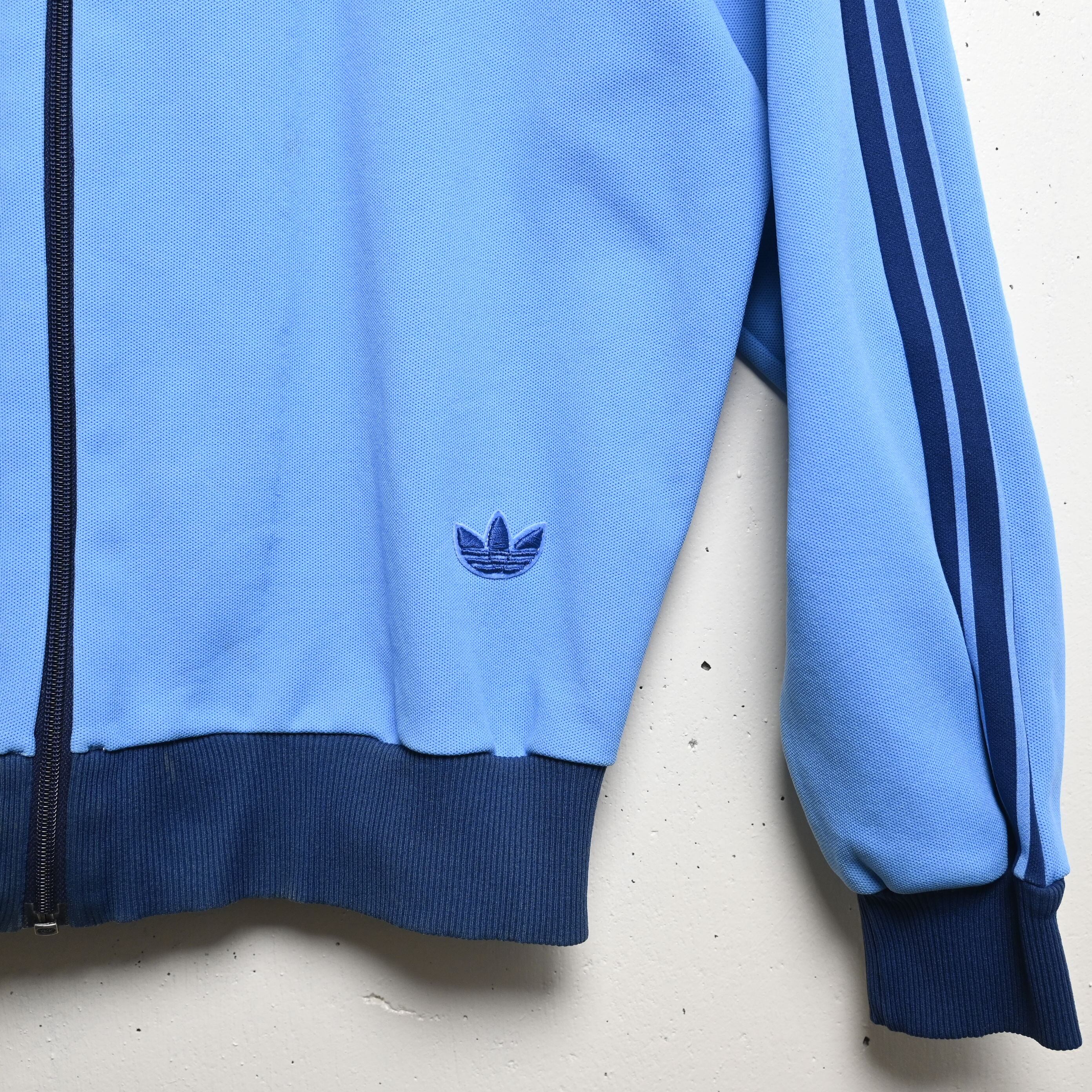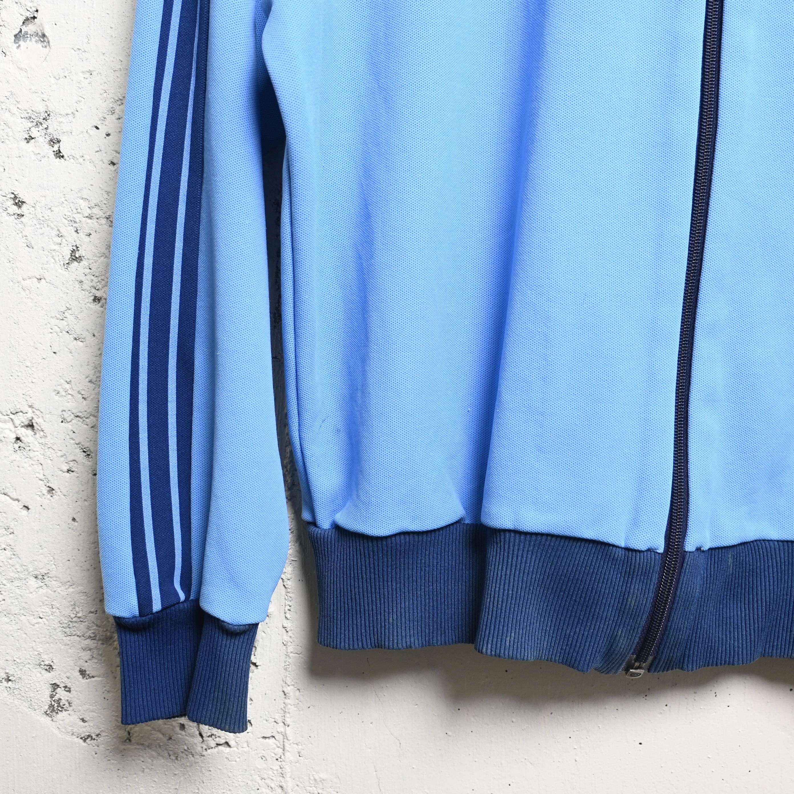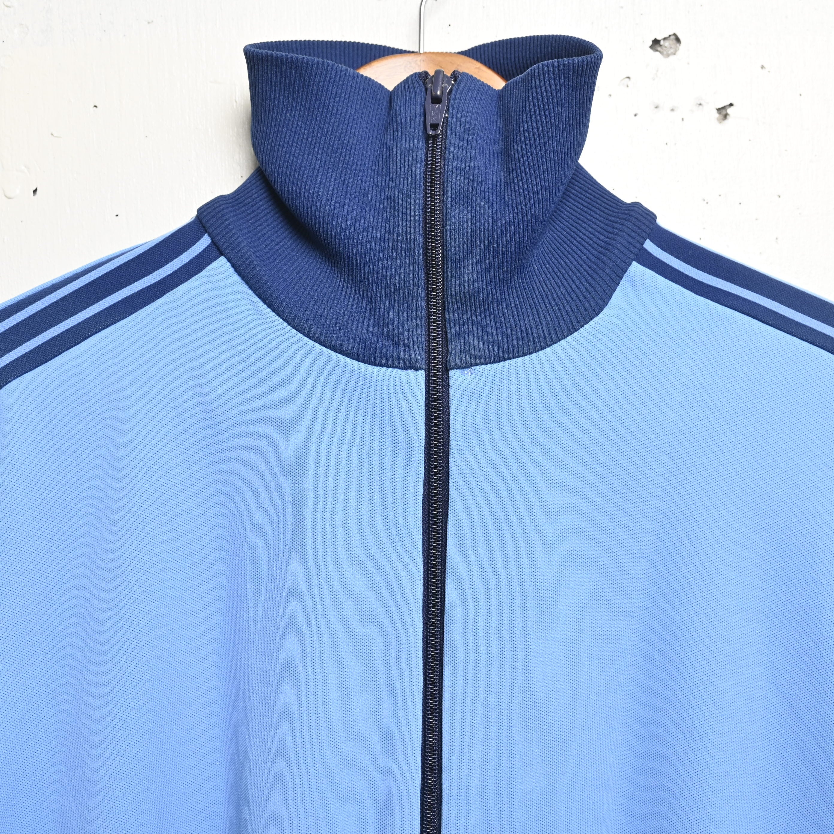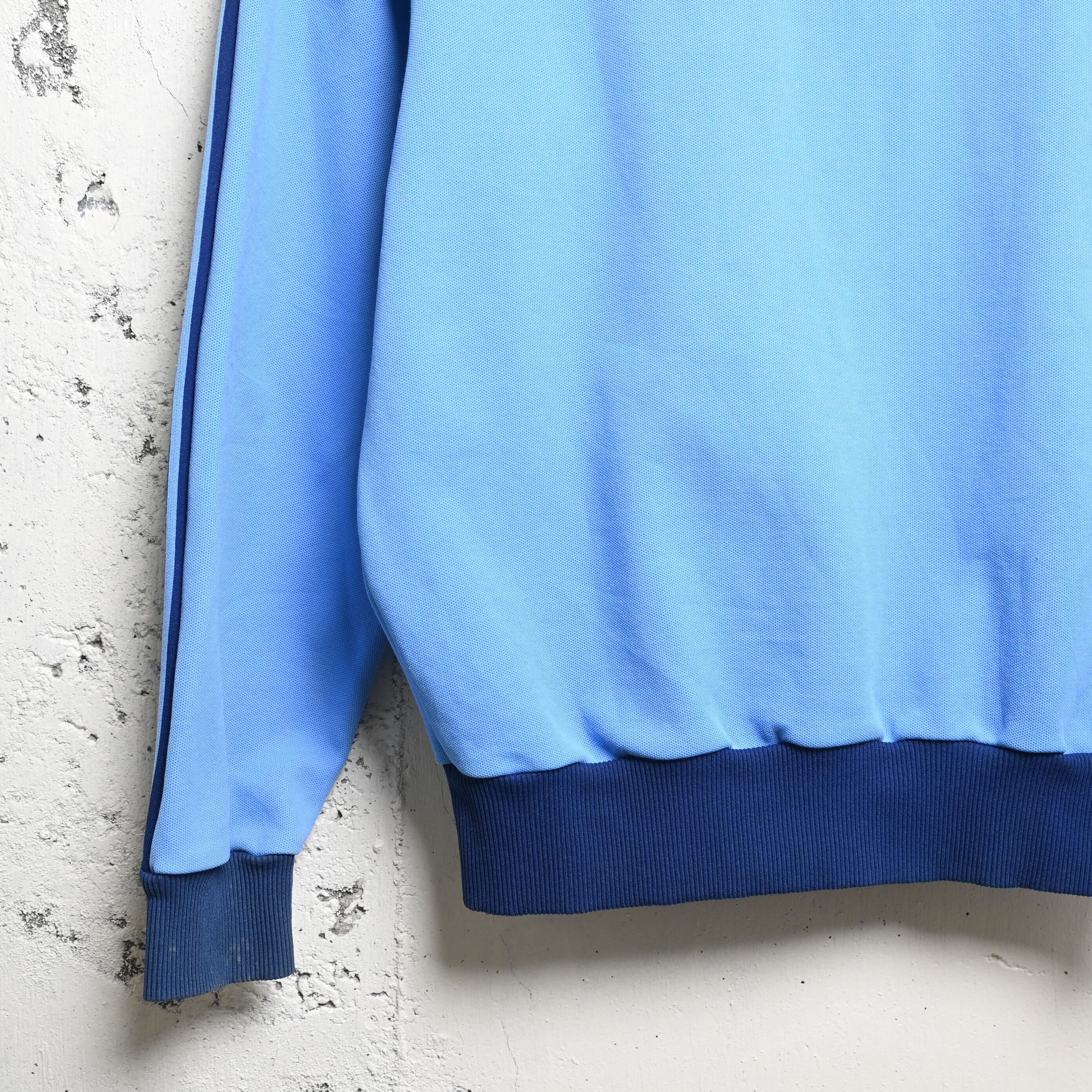 カラーはライトブルーをベースに、ネイビーの3ラインとリブを合わせた非常に人気の高い配色。いわゆるATP系の印象にも通じる爽やかな色味ですが、よりクラシックで落ち着いた雰囲気があり、70年代adidasならではの空気感をしっかり感じられる一着です。