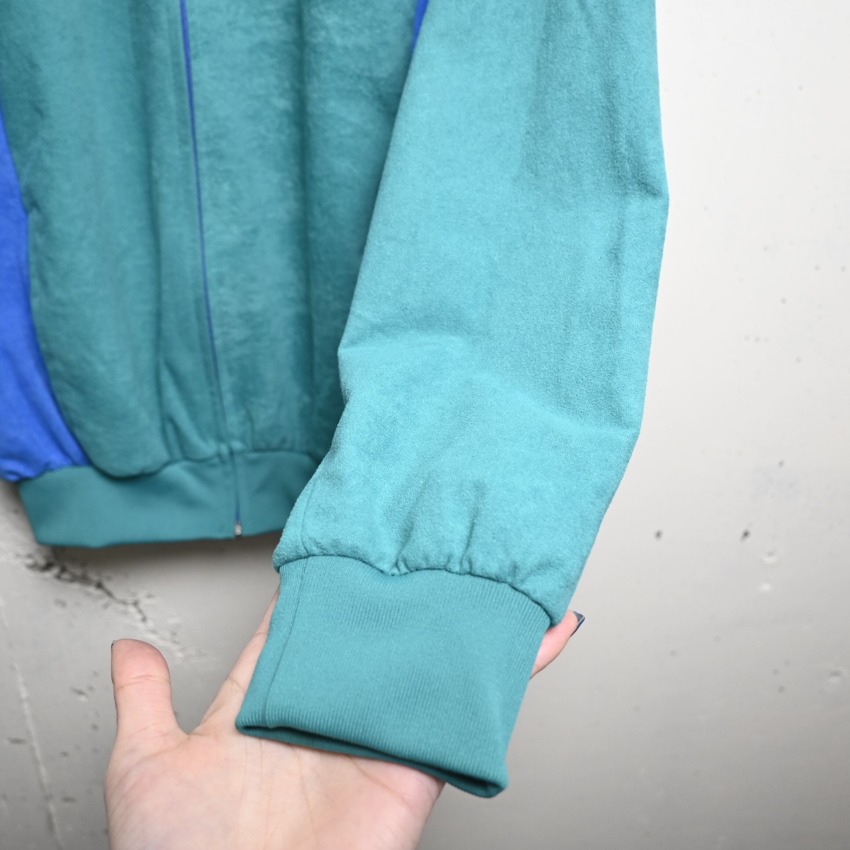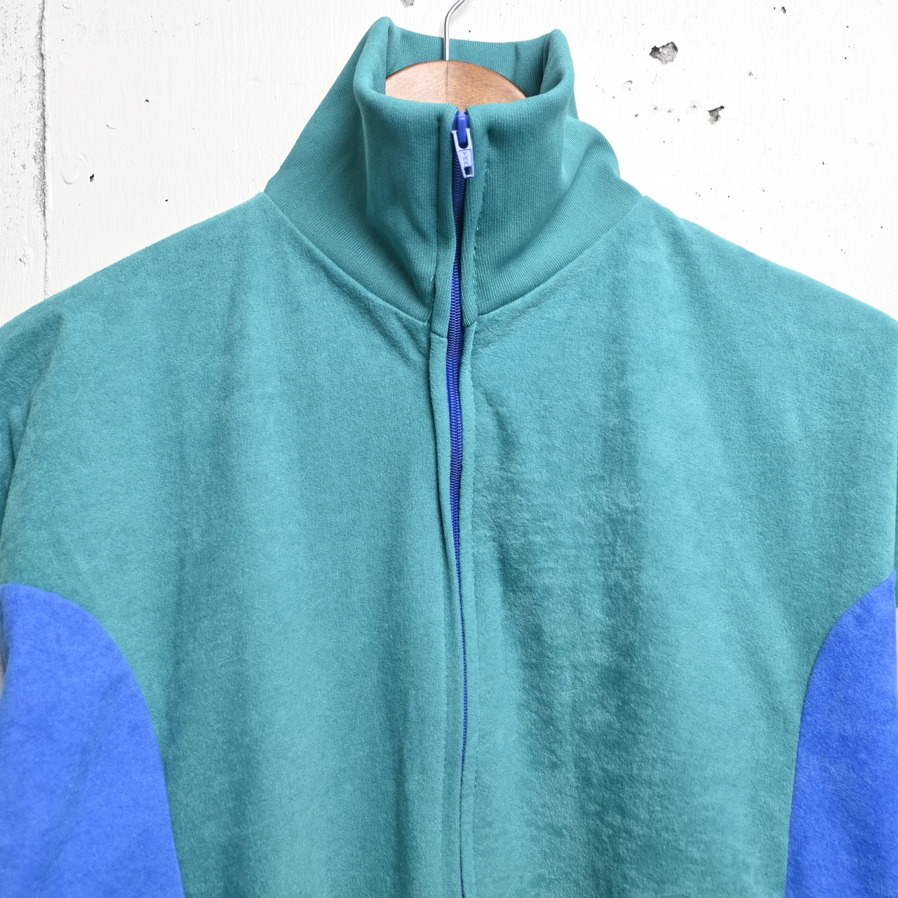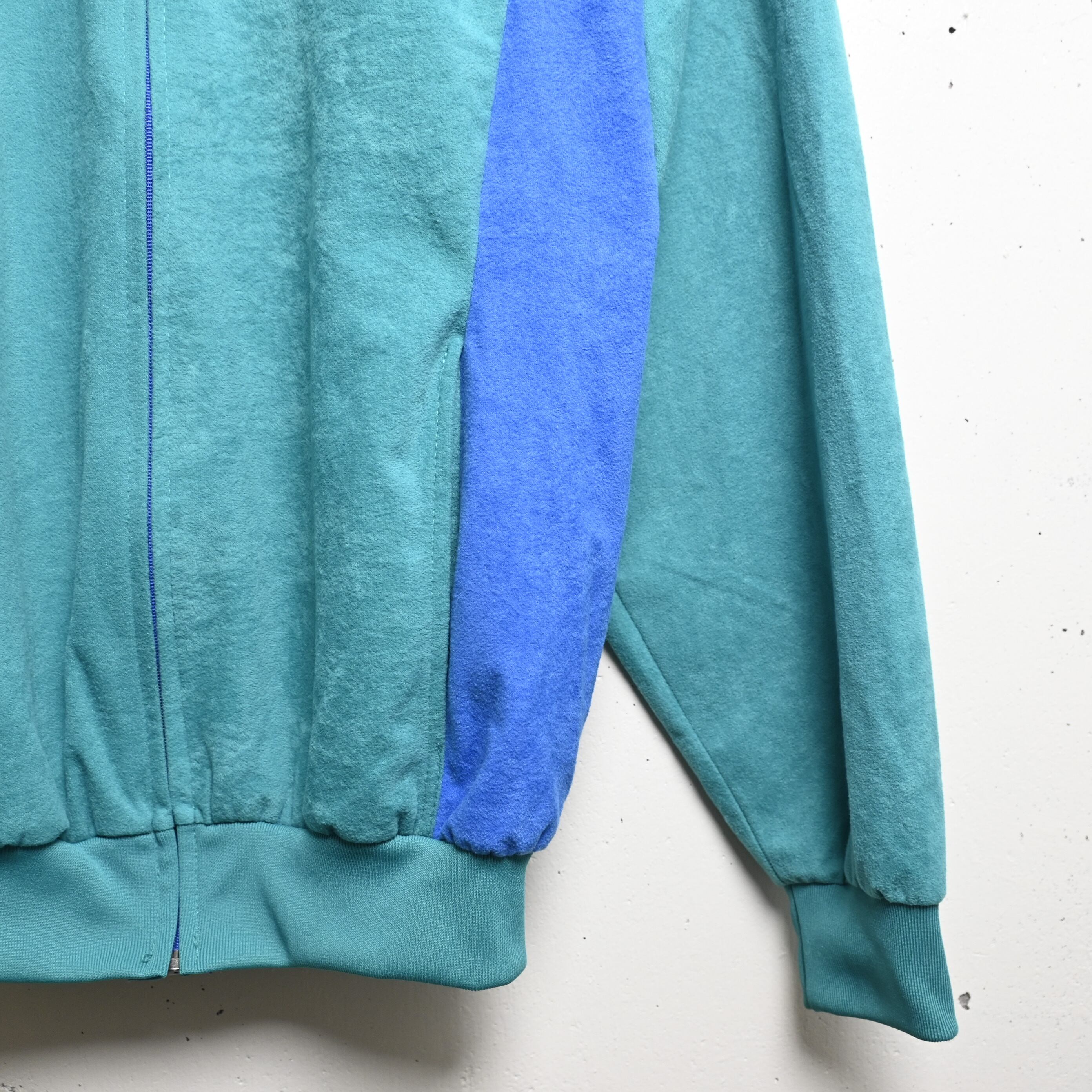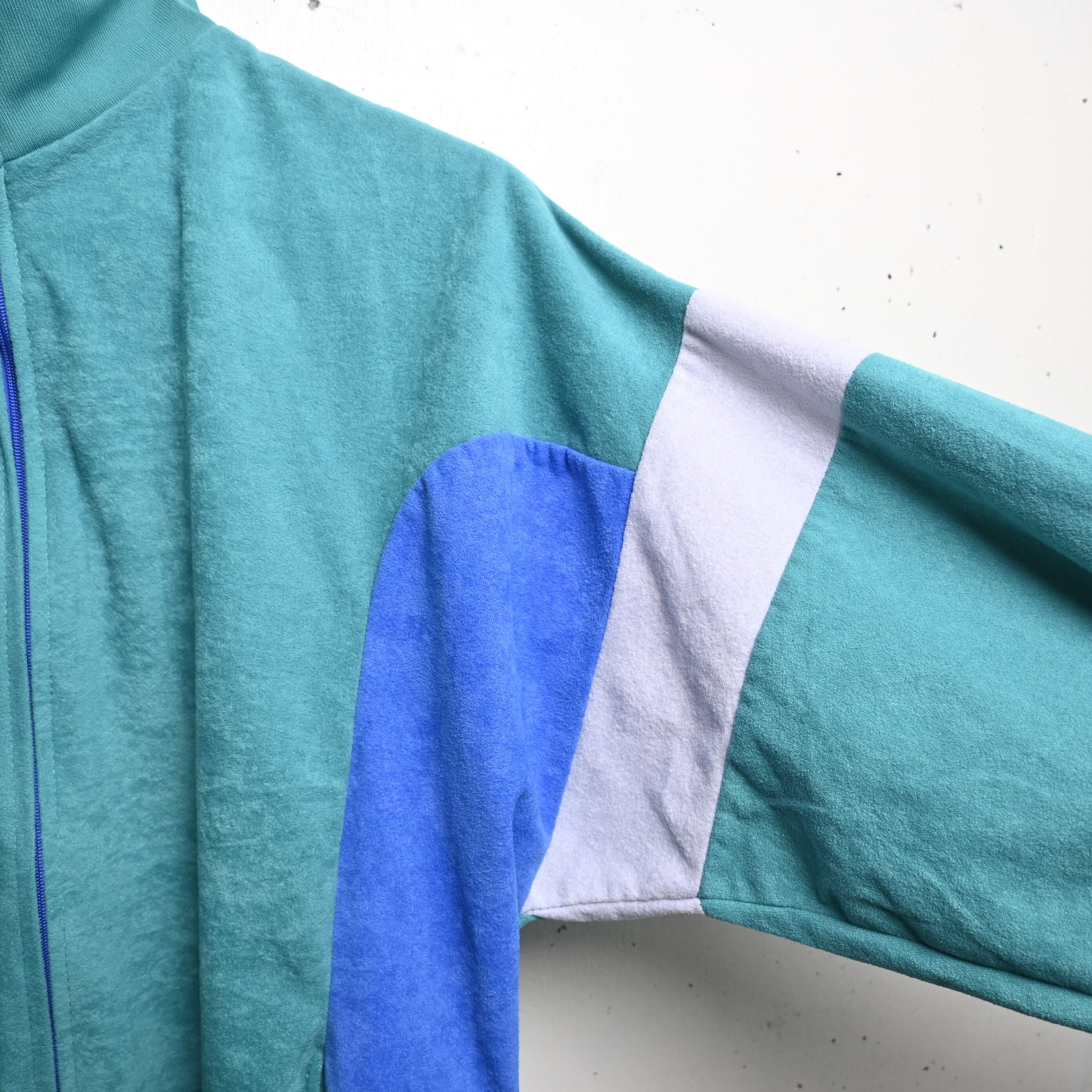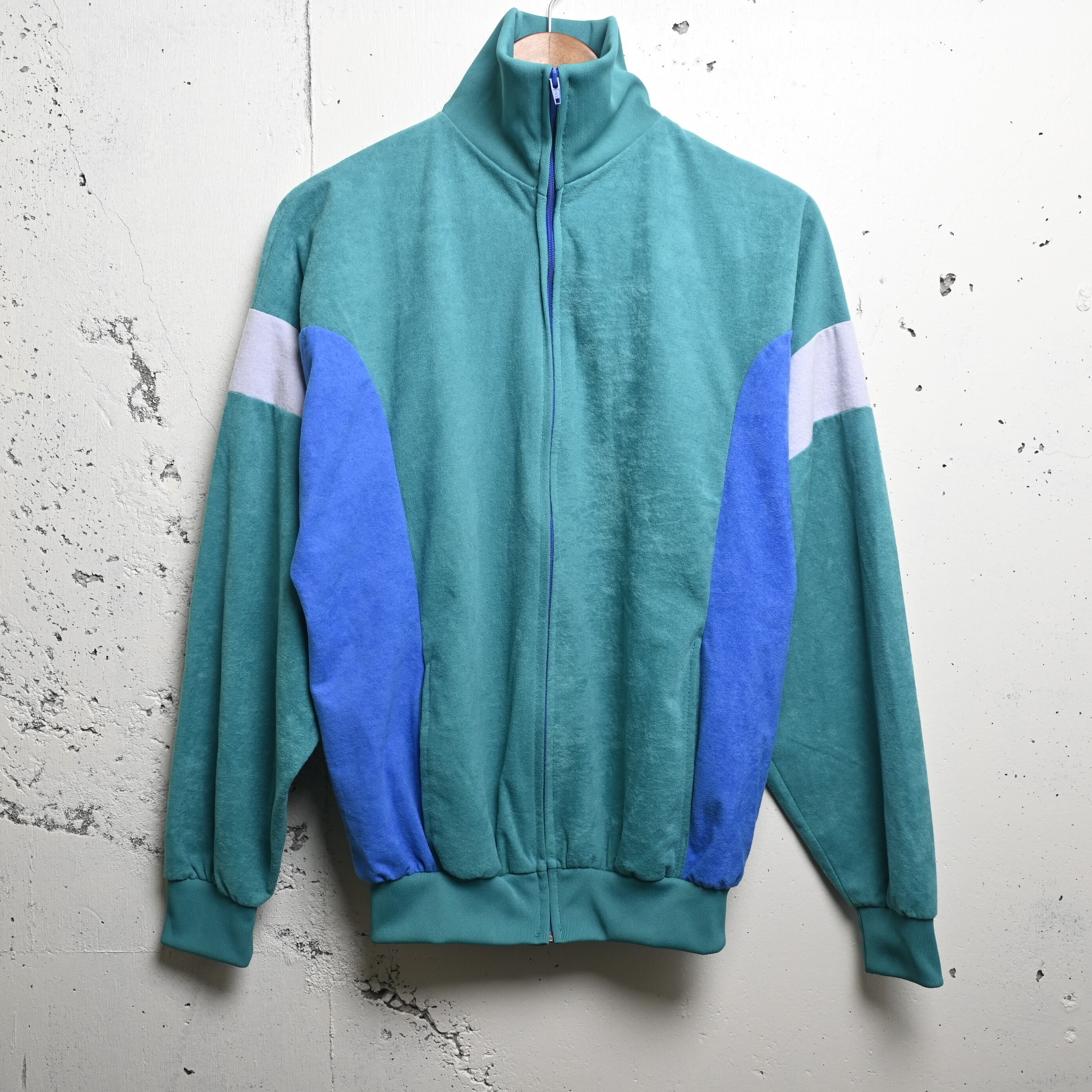 [ 88/92 ] Unknown 80-90's Euro Velvet Track Jacket , Blue Green Gray / ユーロ ベロアトラックジャケット ブルーグリーン グレー