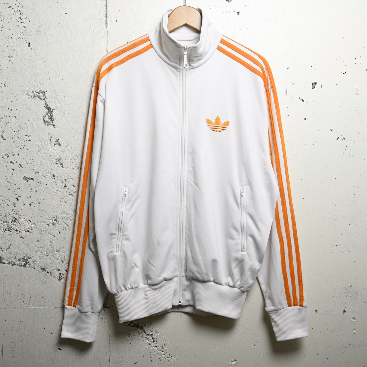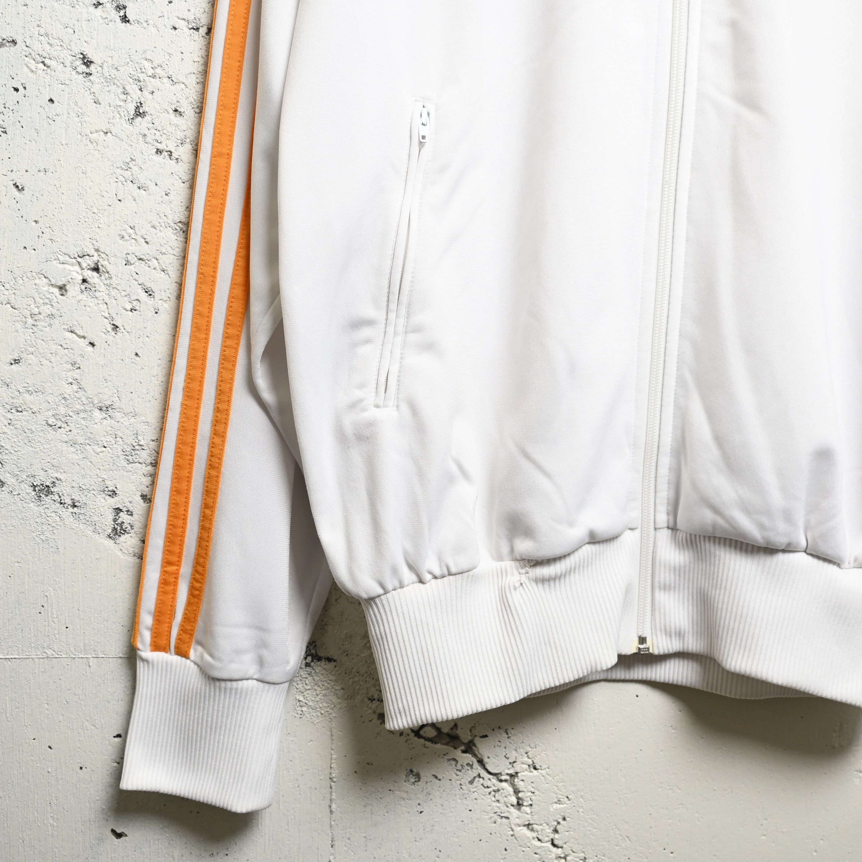 年代を問わず支持されるトラックジャケットですが、ホワイト×オレンジの配色は流通数がそれほど多くなく、サイズバランスも含めて探すと意外と見つかりにくいカラーです。