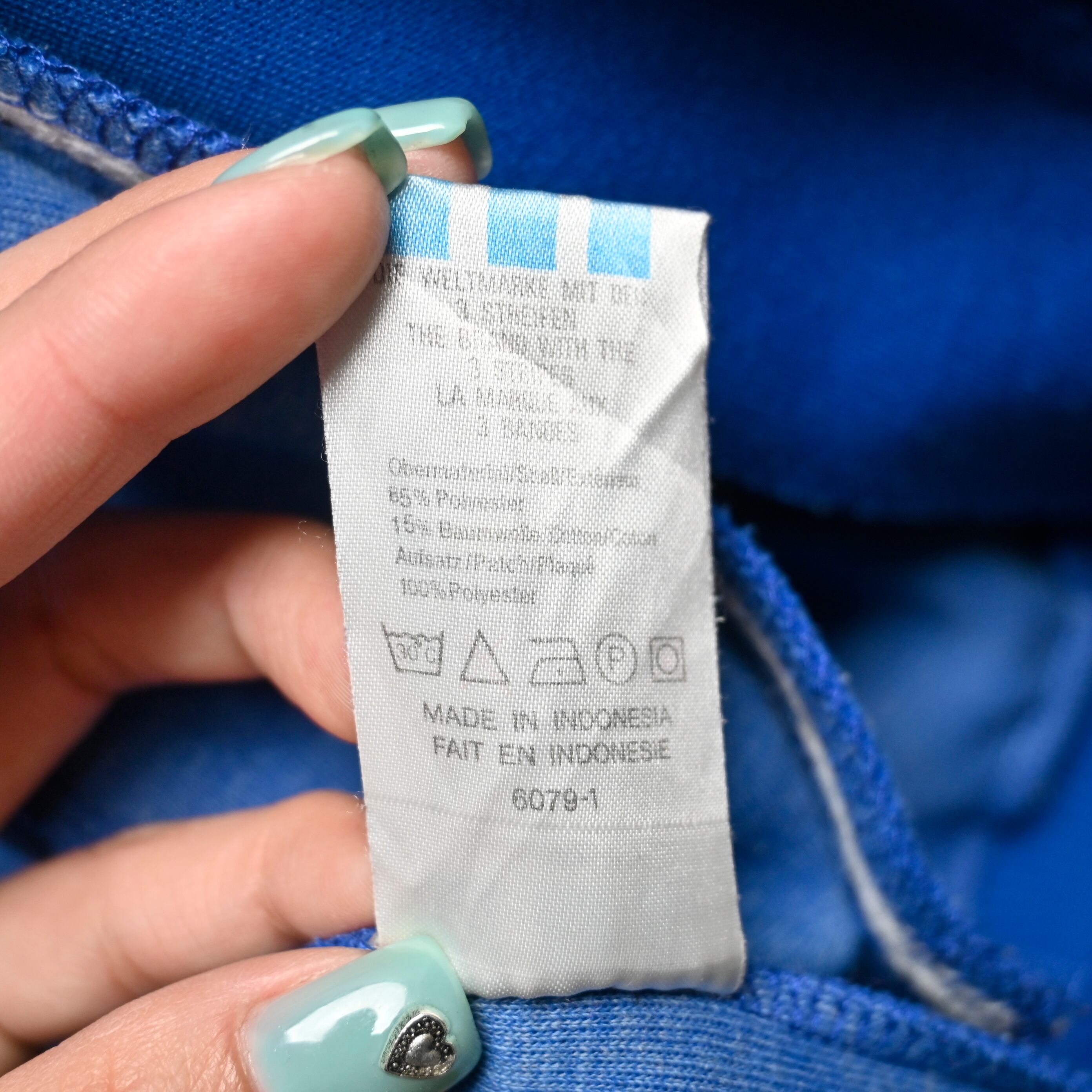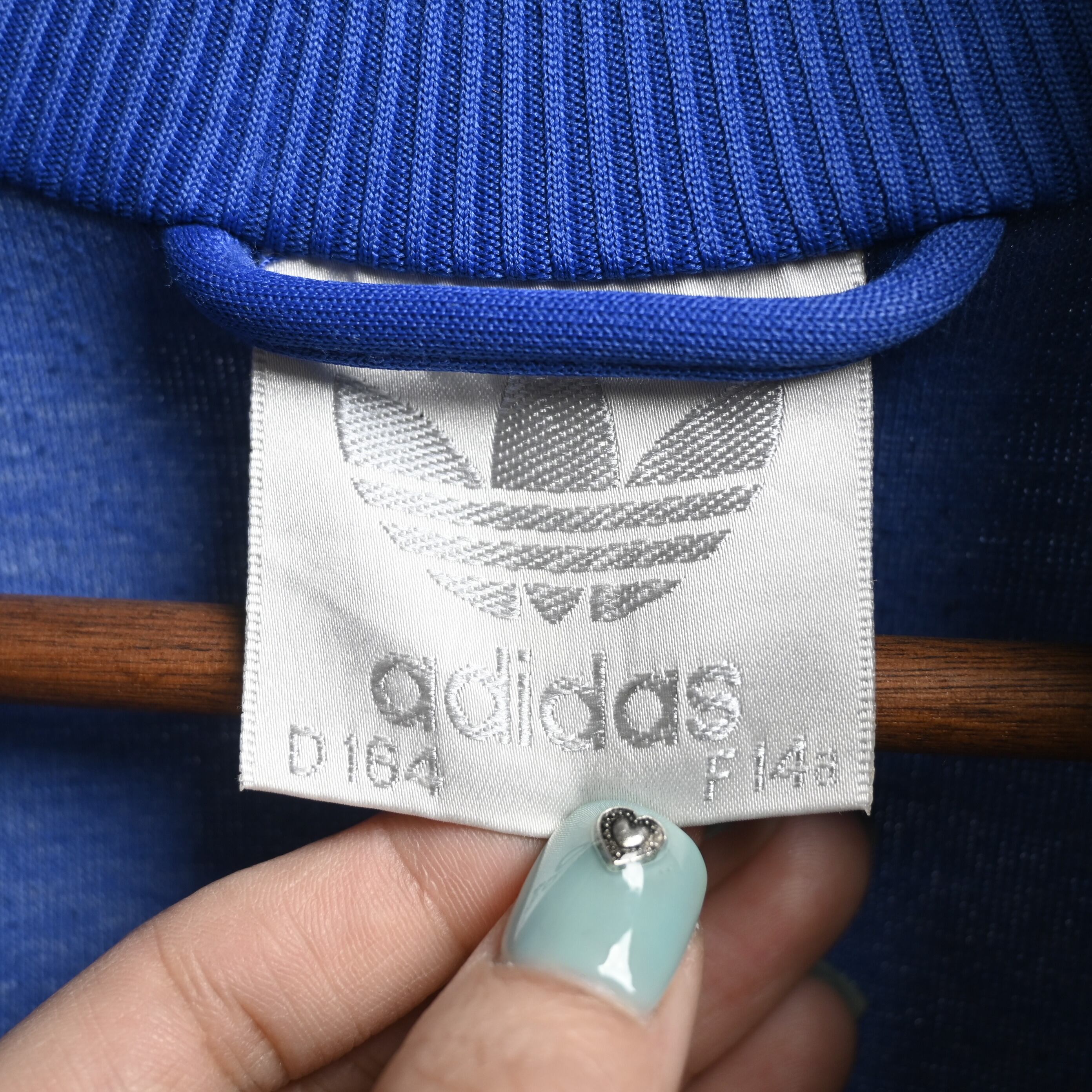 タグは銀タグ期の流れを感じるadidas Originals表記で、インドネシア製。素材はポリエステル主体で程よい光沢としなやかさがあり、着用時にきれいなシルエットが出ます。F14A表記で現代のS程度のサイズ感となり、ジャスト寄りで着たい方にもおすすめです。