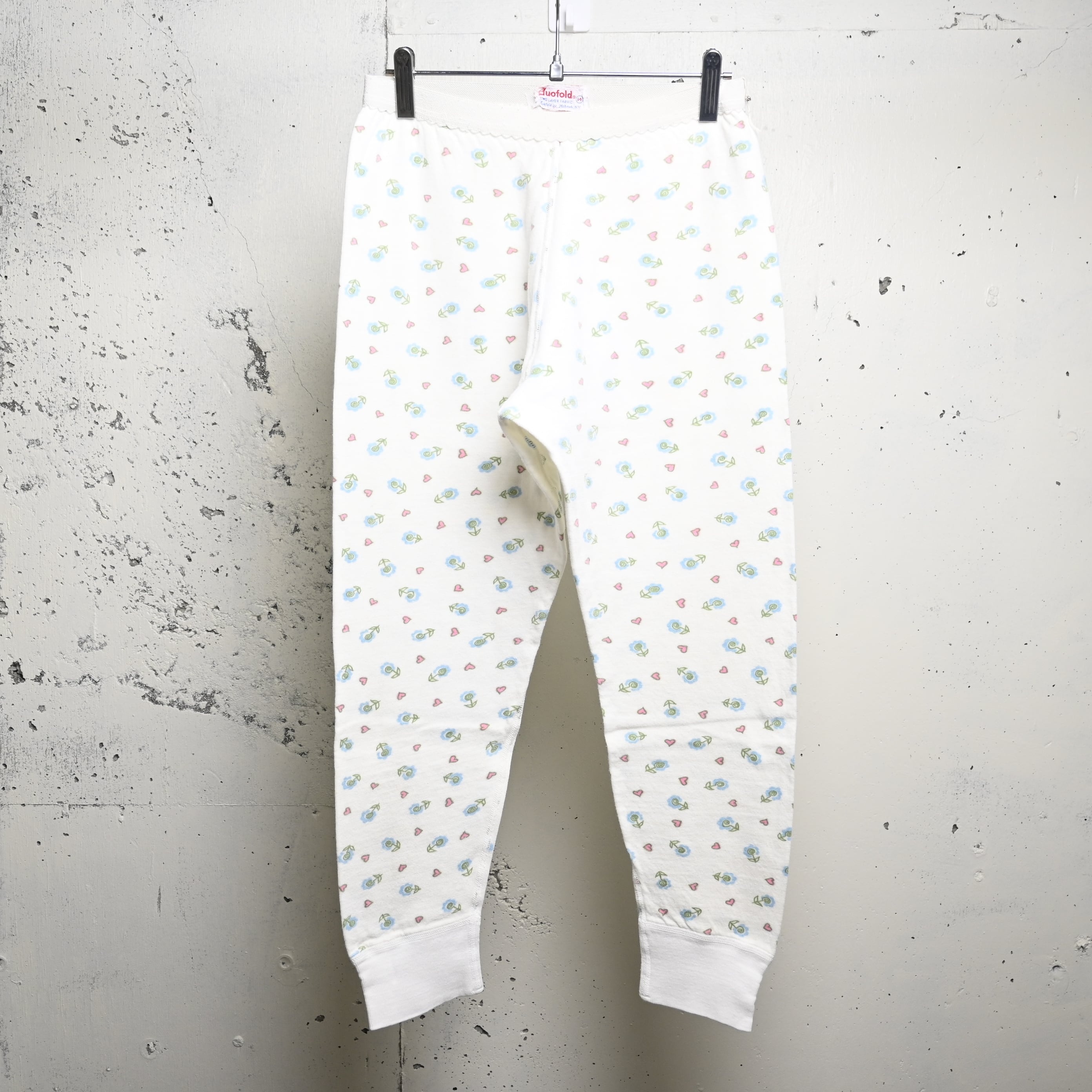 [ 14 ] Duofold 70‐80s USA製 Flower Pattern Spats Thermal Cotton Pants , White