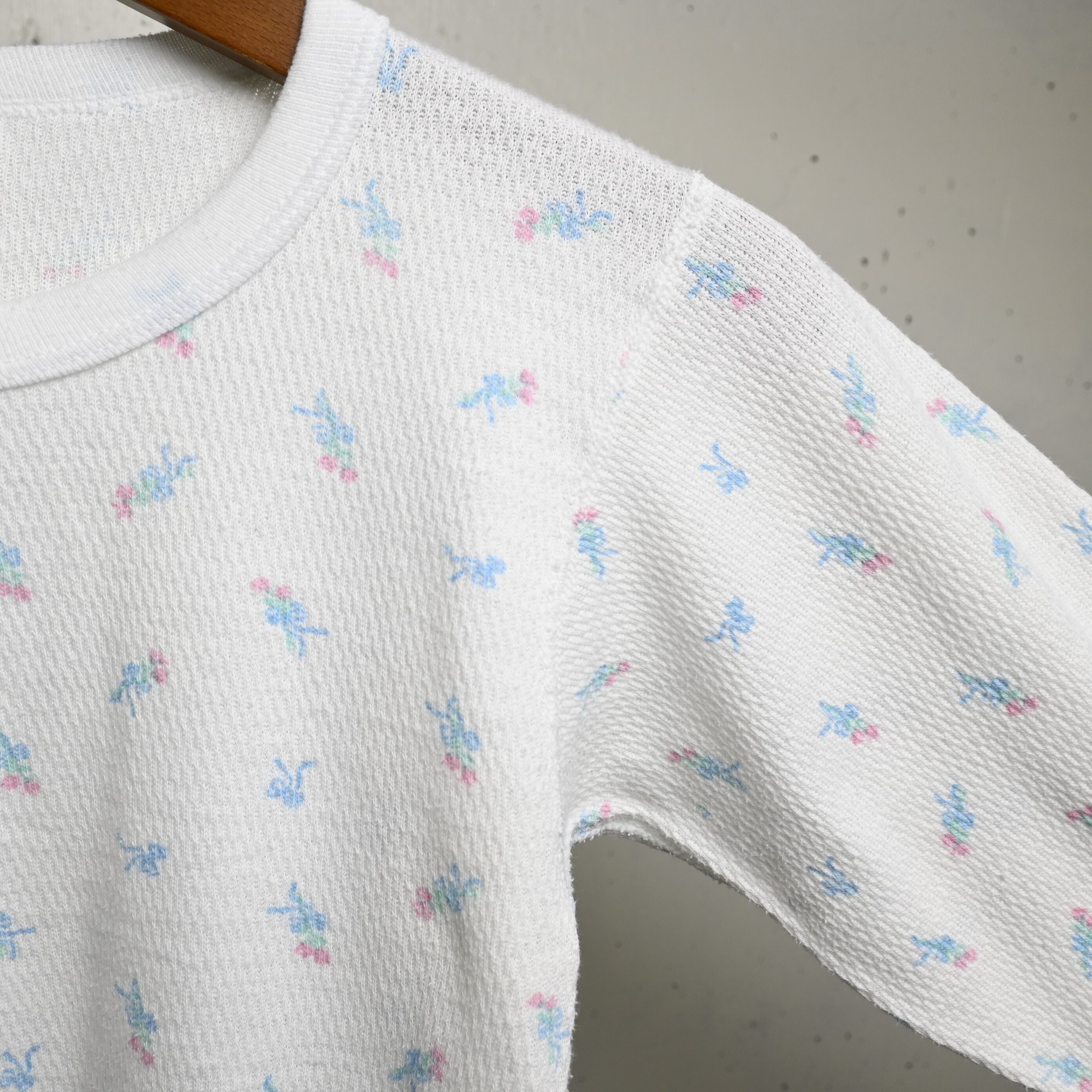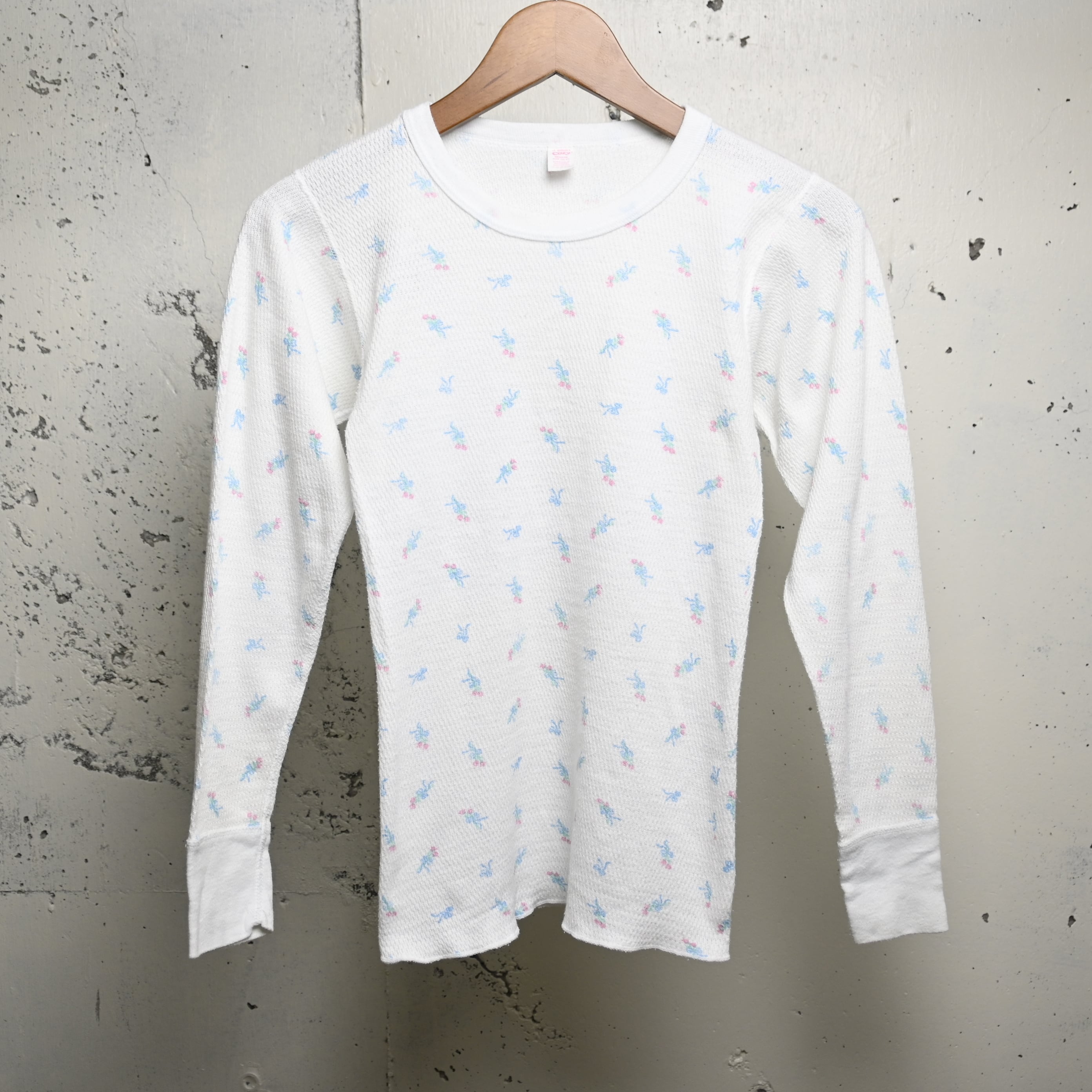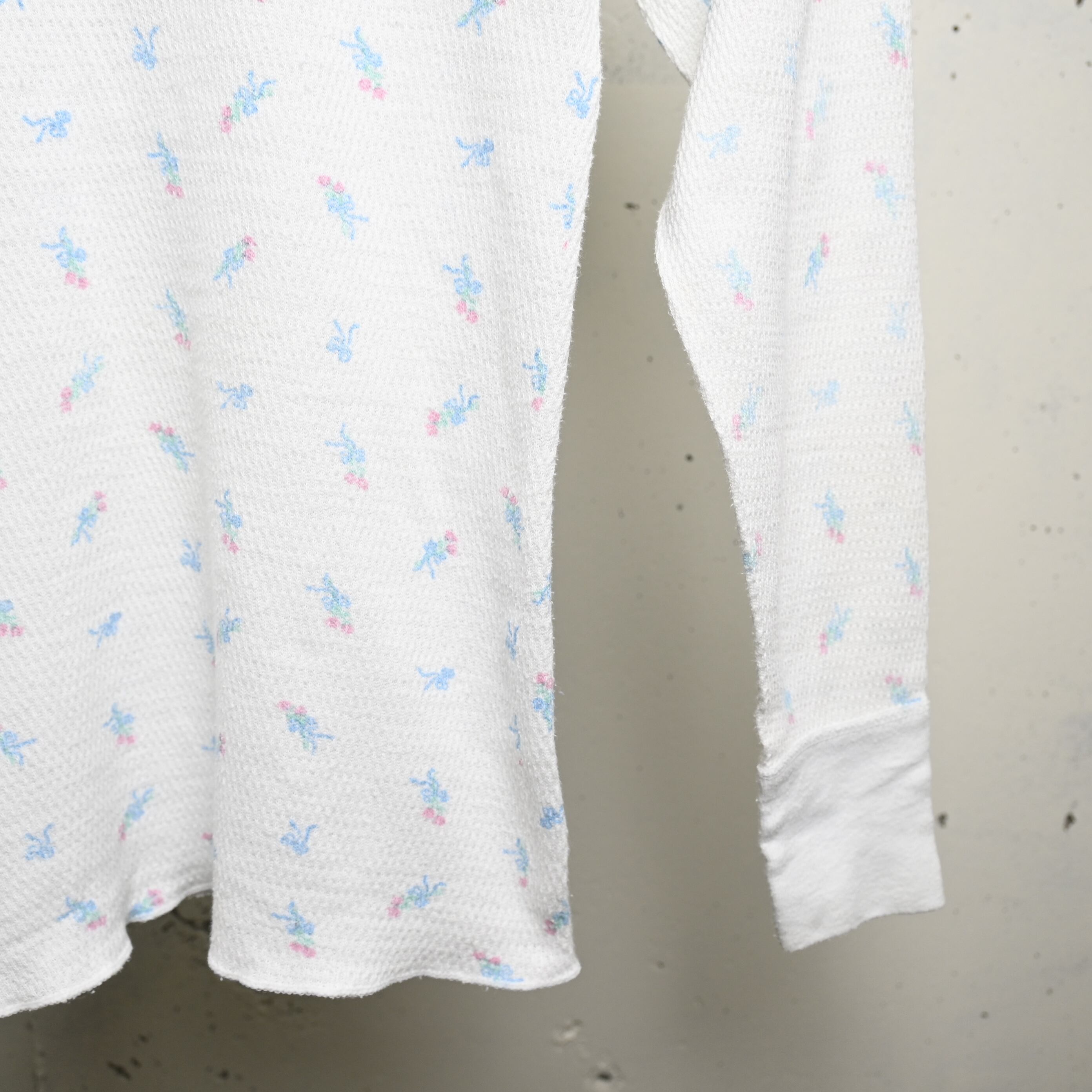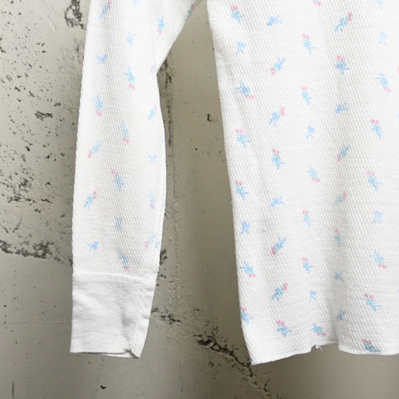[ M ] J.E.MORGAN COZY 80s USA製 Flower Pattern L/S Thermal Shirt , White