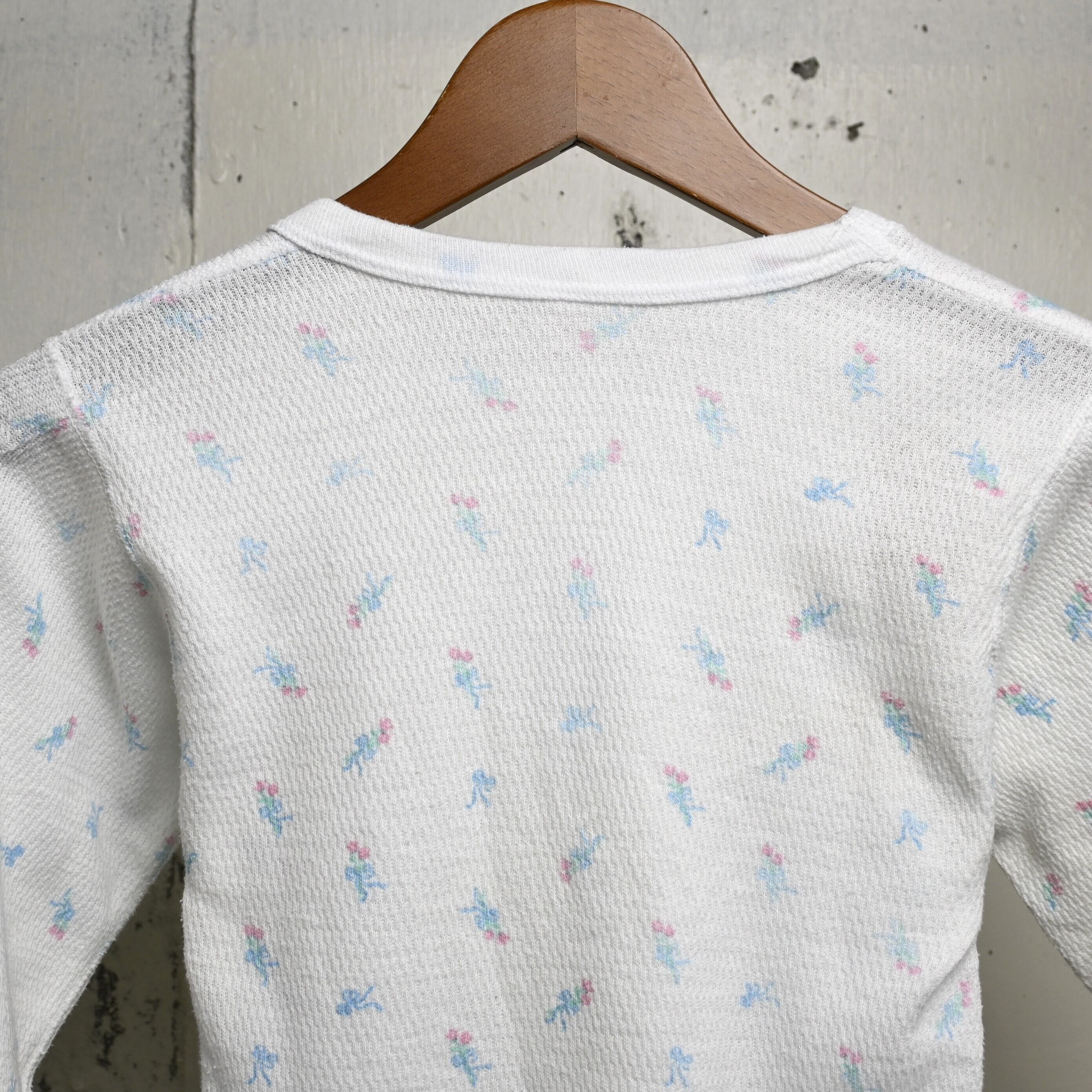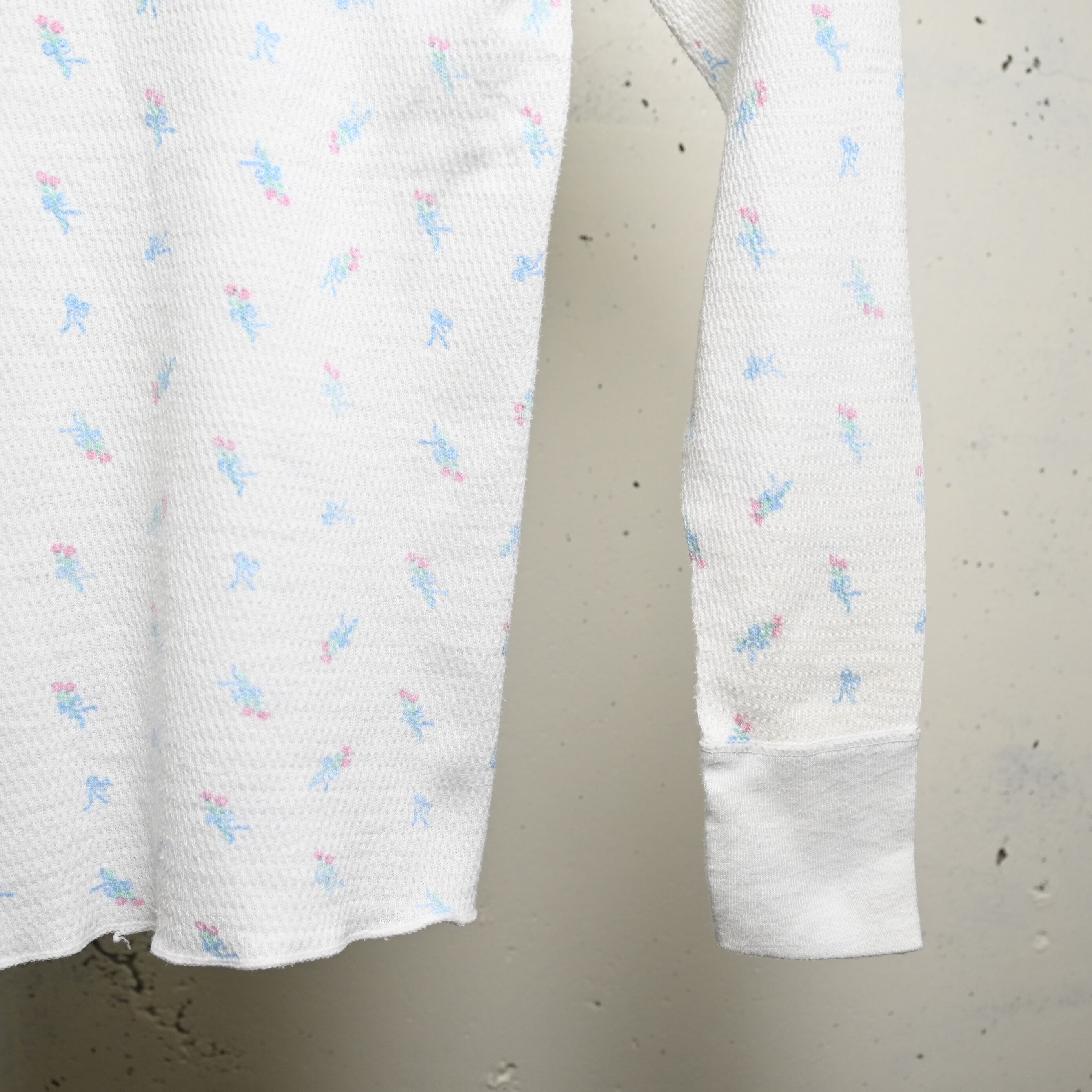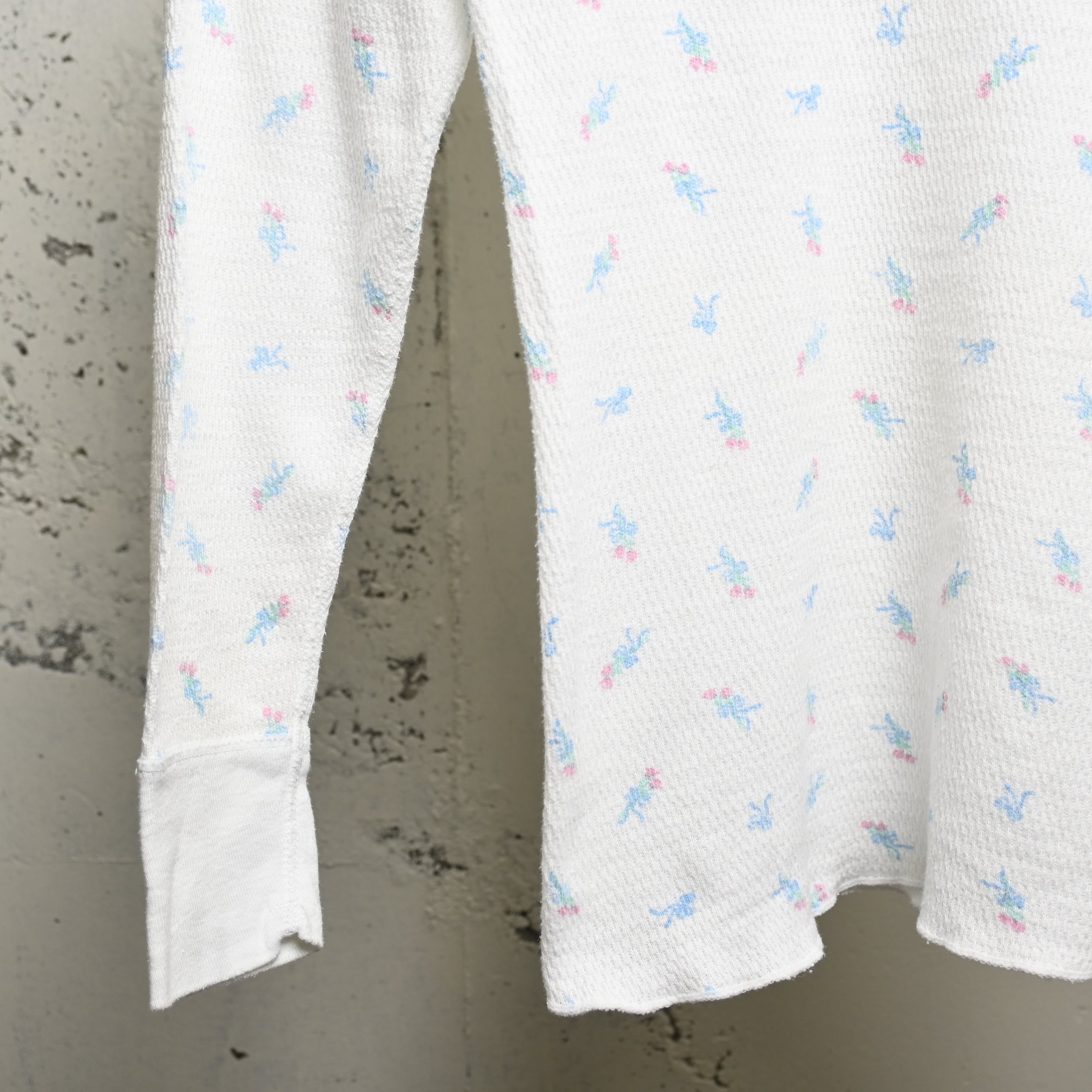 [ M ] J.E.MORGAN COZY 80s USA製 Flower Pattern L/S Thermal Shirt , White / J.E.モーガン フラワーパターン ロングスリーブ サーマルシャツ