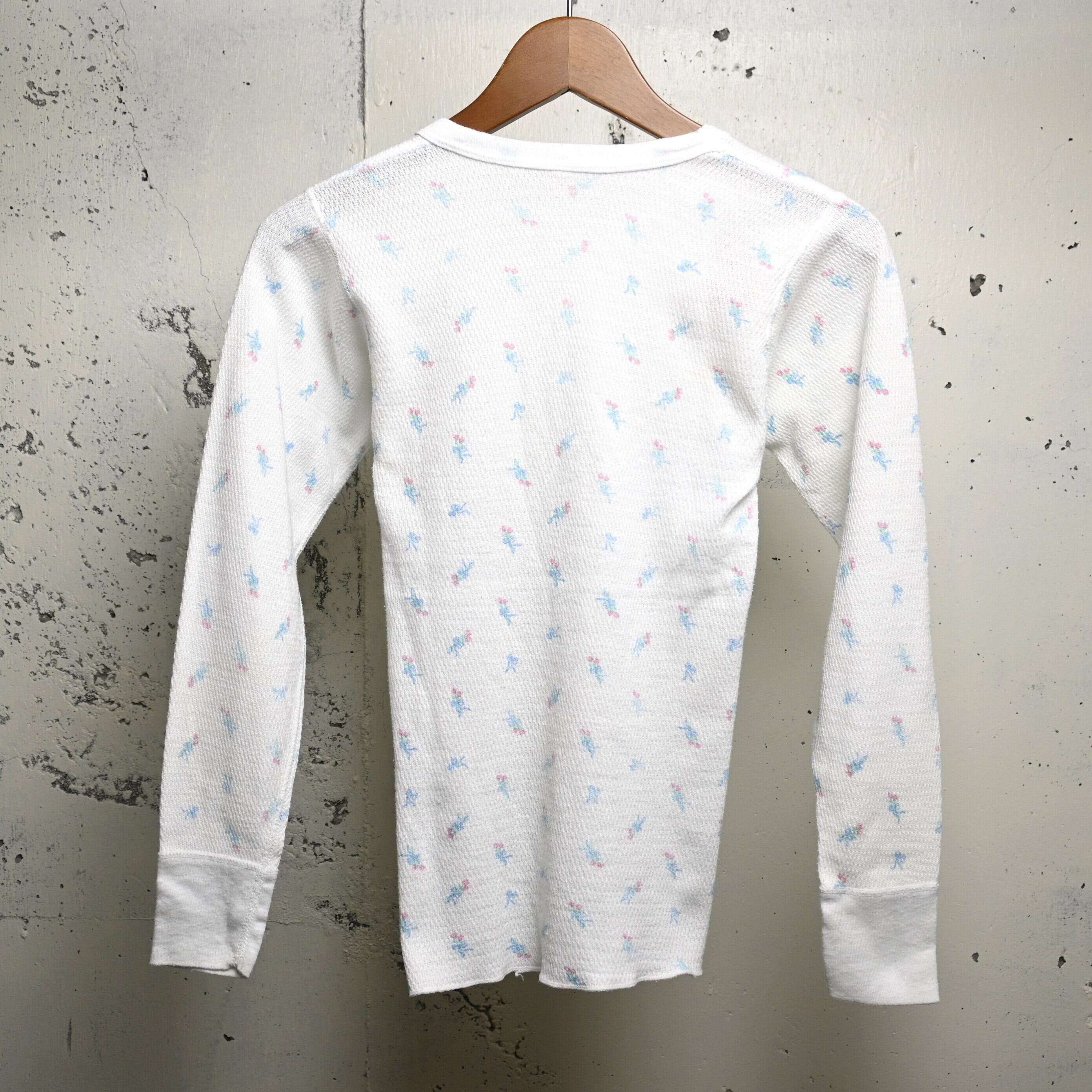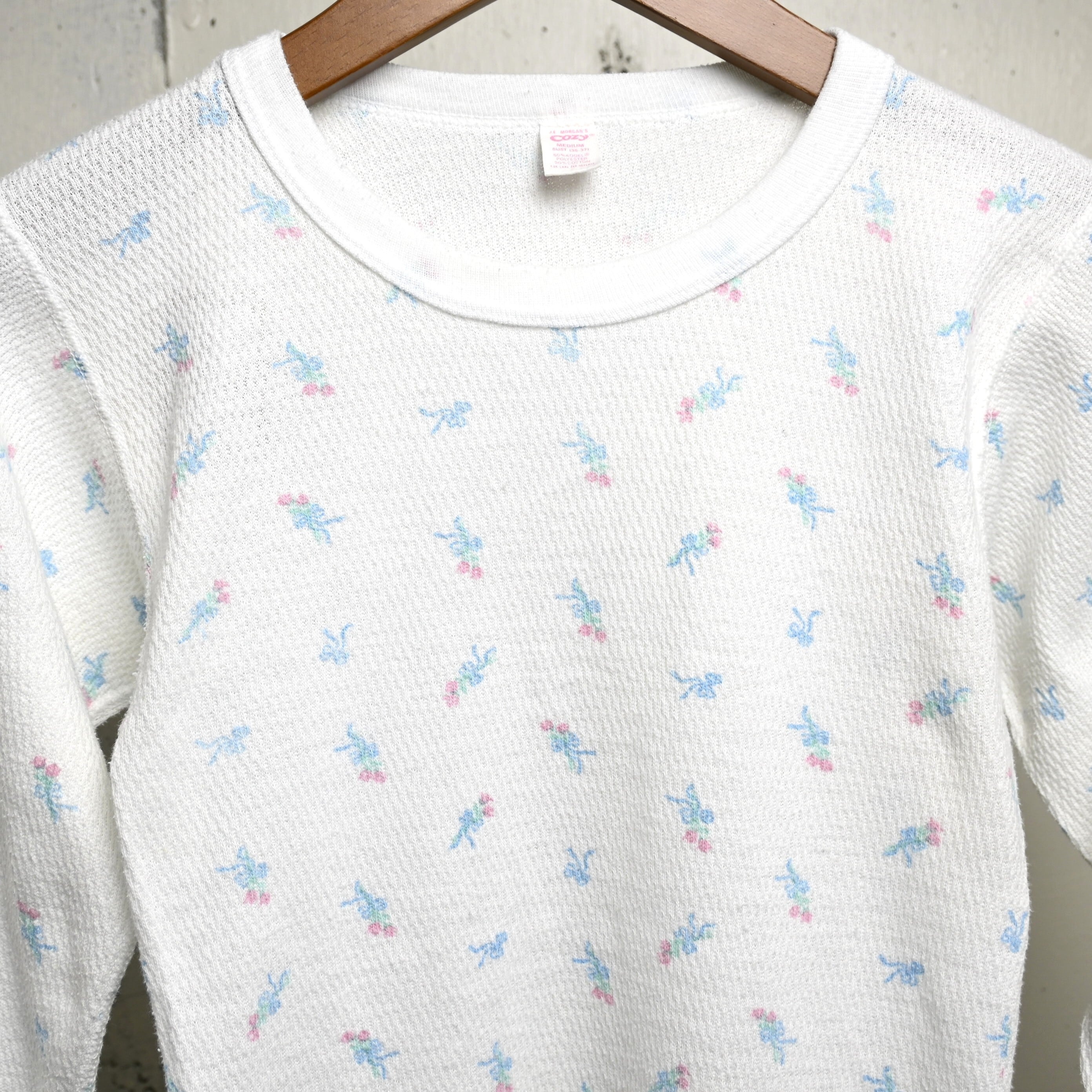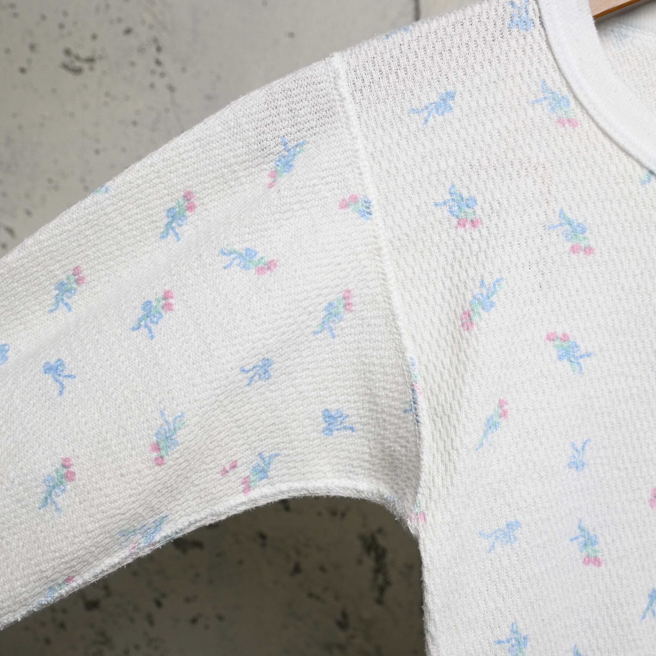 [ M ] J.E.MORGAN COZY 80s USA製 Flower Pattern L/S Thermal Shirt , White / J.E.モーガン フラワーパターン ロングスリーブ サーマルシャツ
