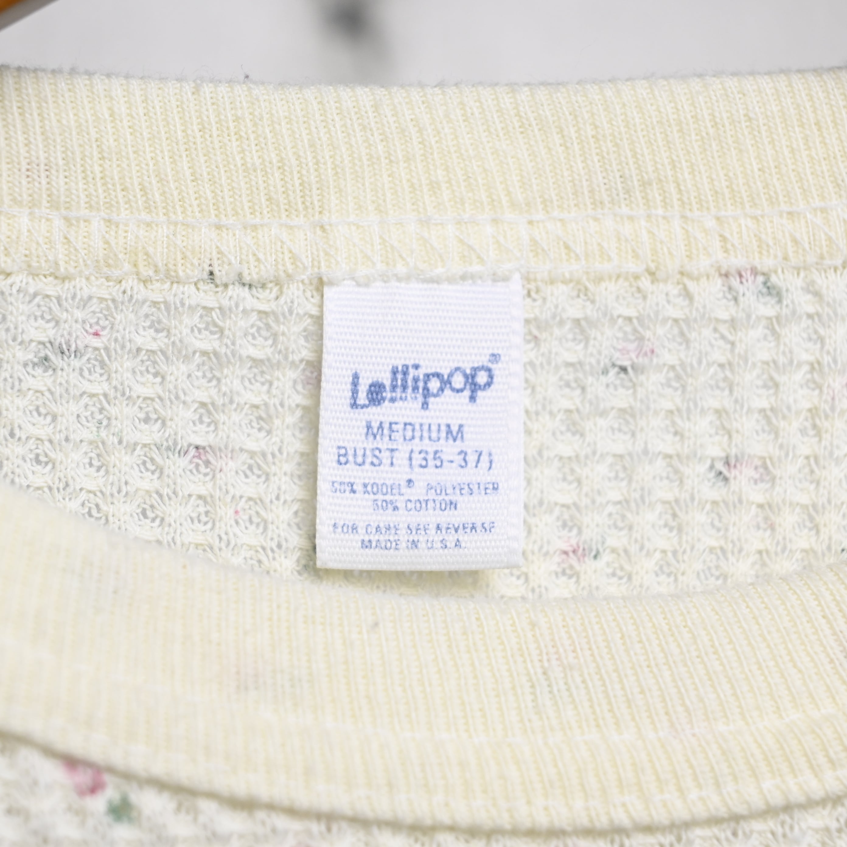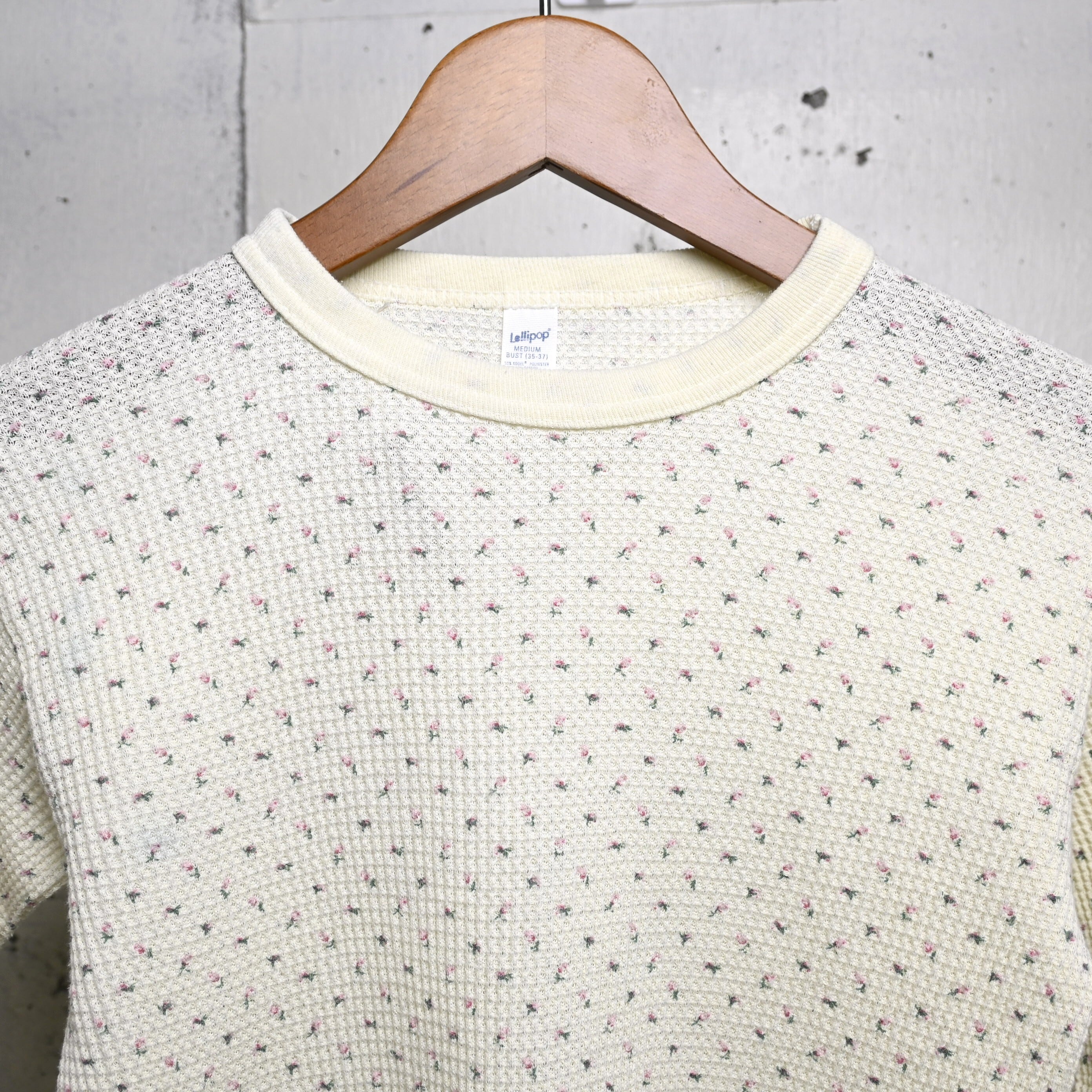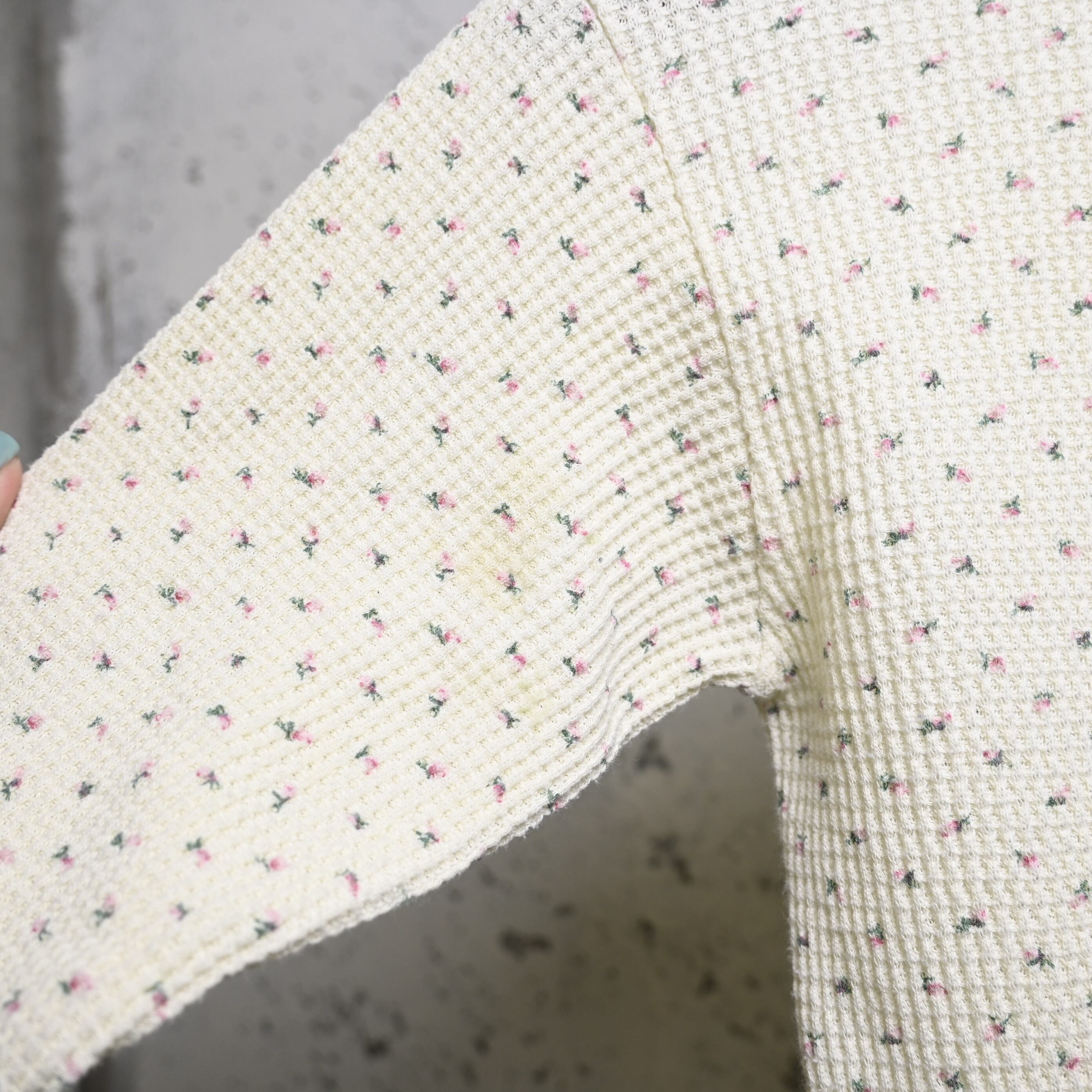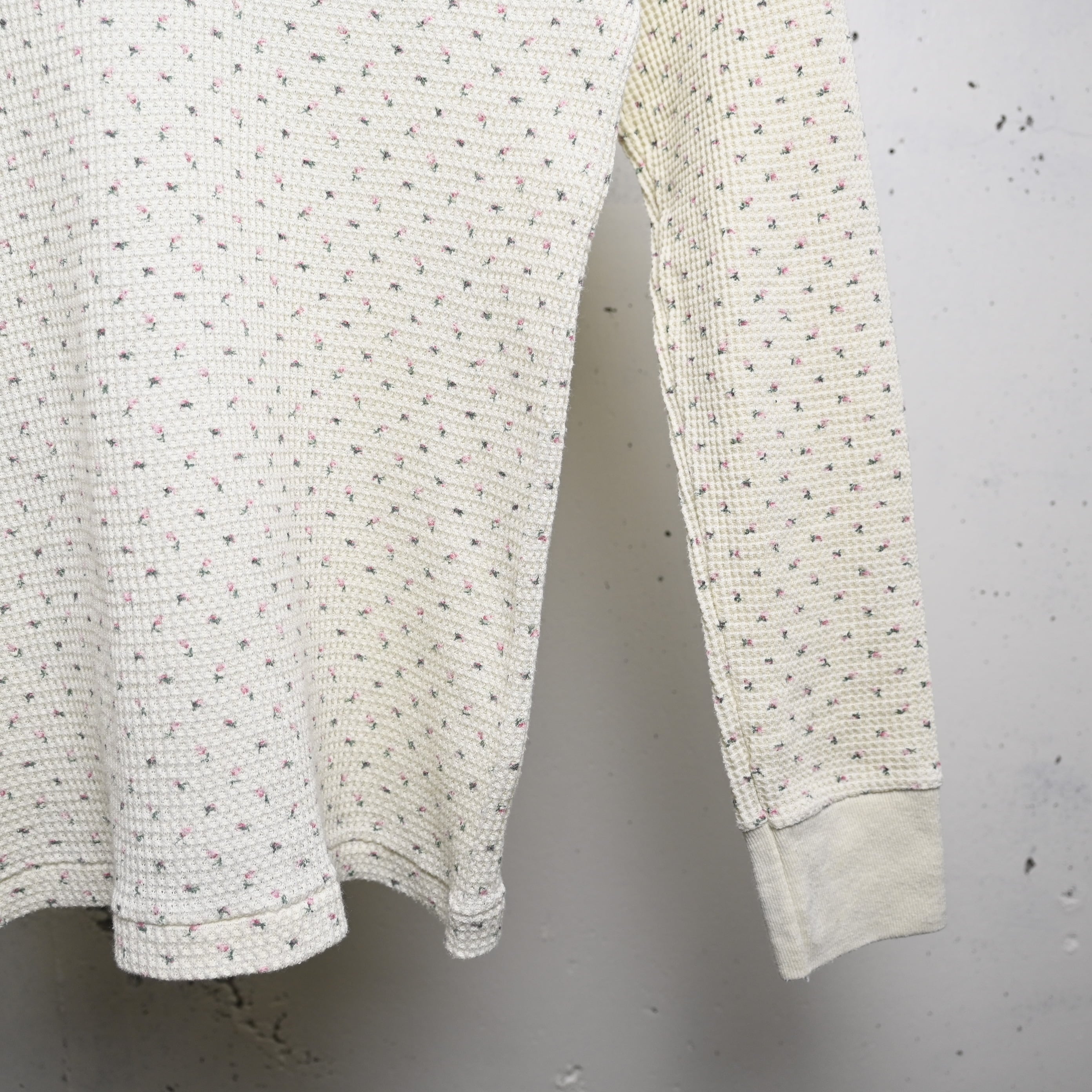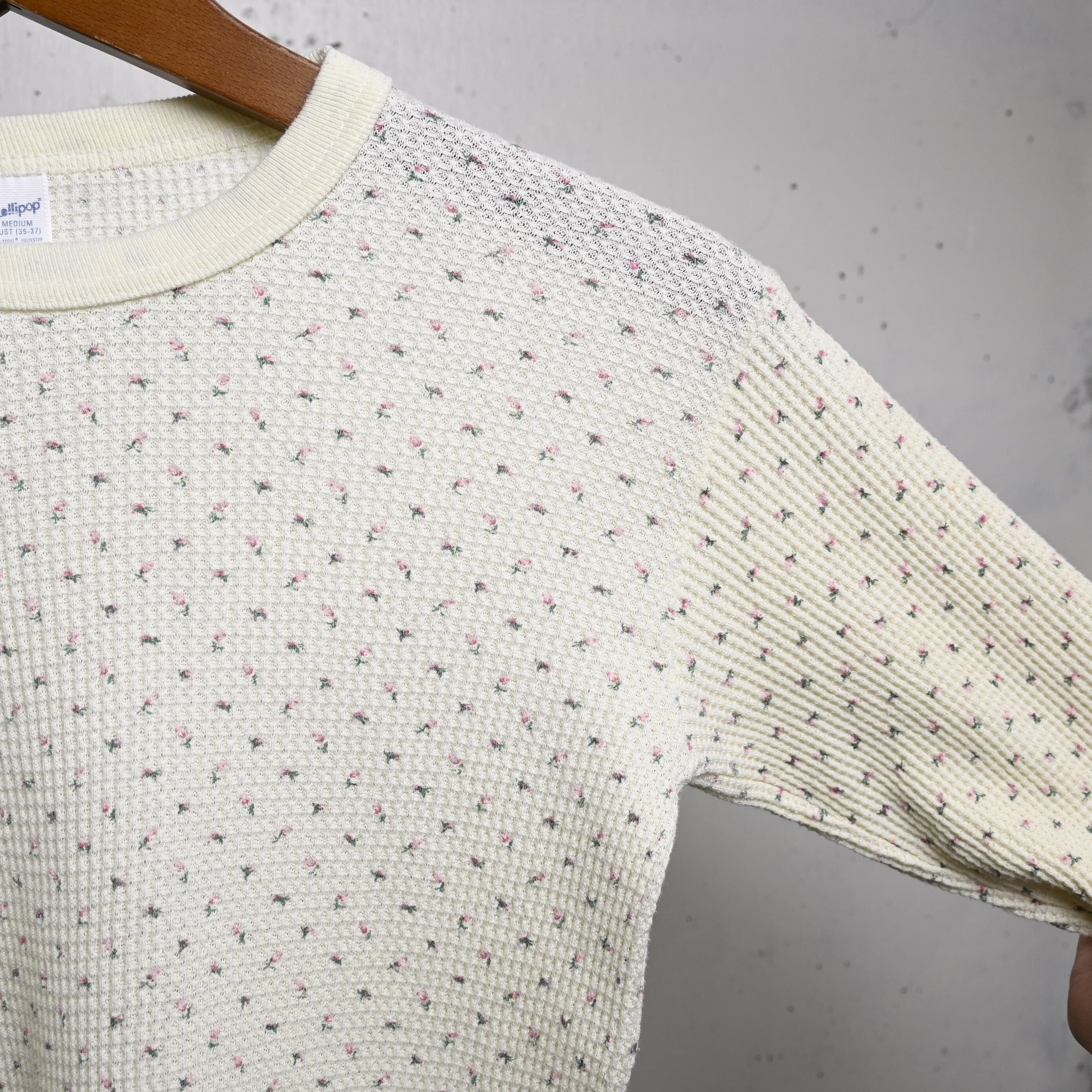 [ M ] Lellipop 90-00s USA製 Floral Pattern L/S Shirt , Cream / フローラルパターン ロングスリーブ ワッフルシャツ