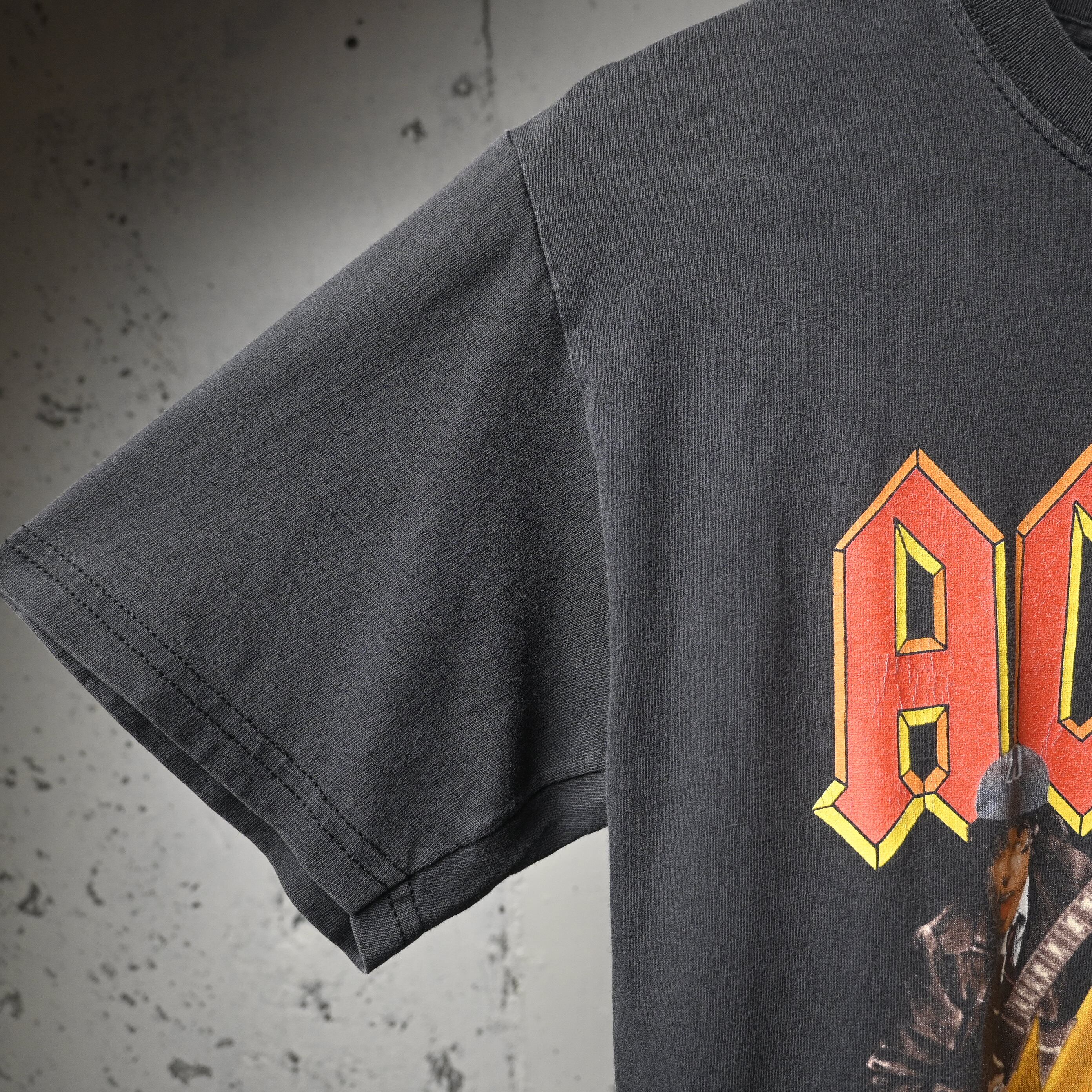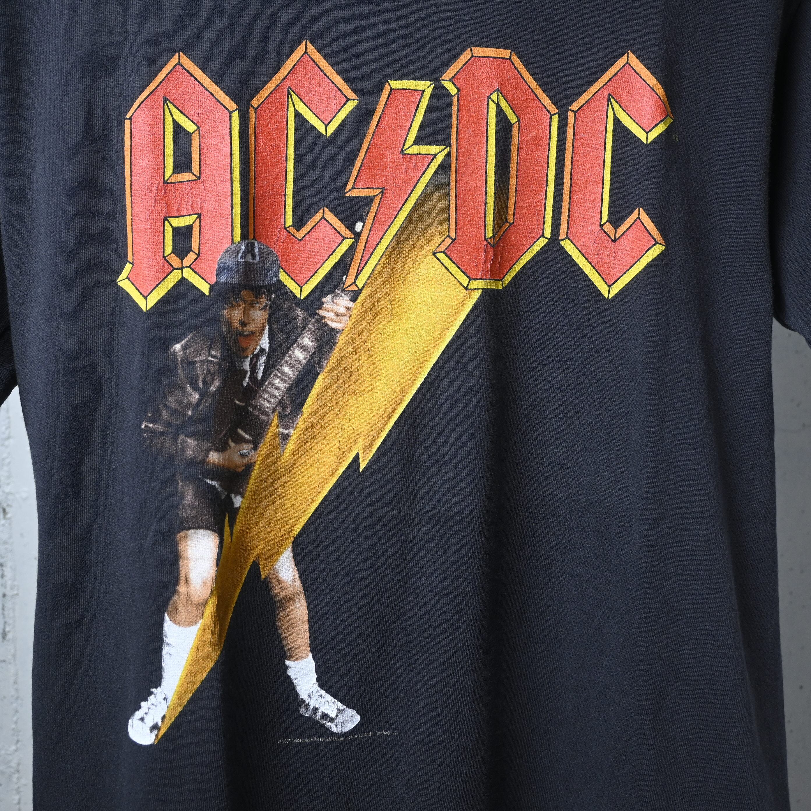 AC/DCの中心人物であるAngus Youngをフロントに大きく配した、2003年コピーライト入りのオフィシャルバンドTシャツです。