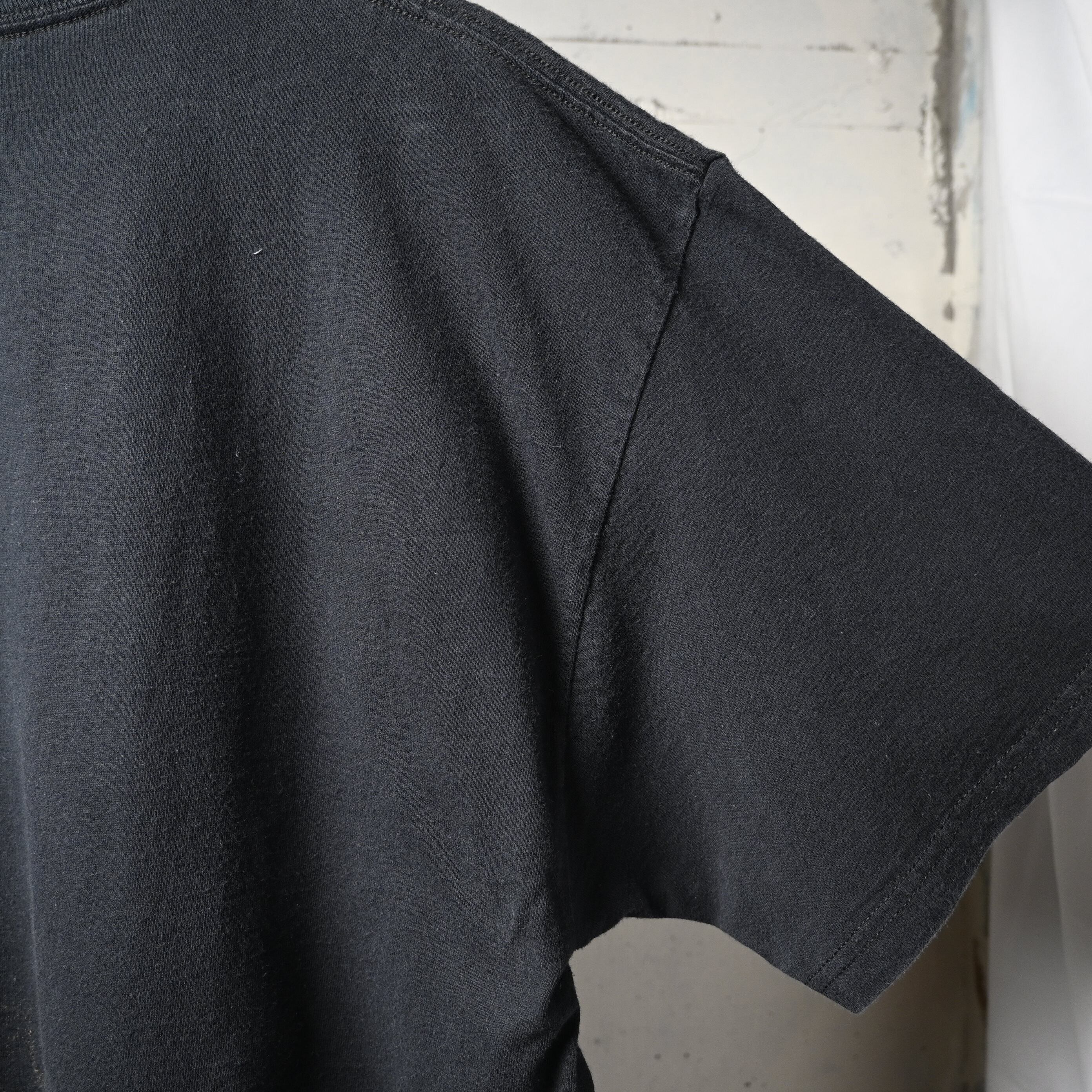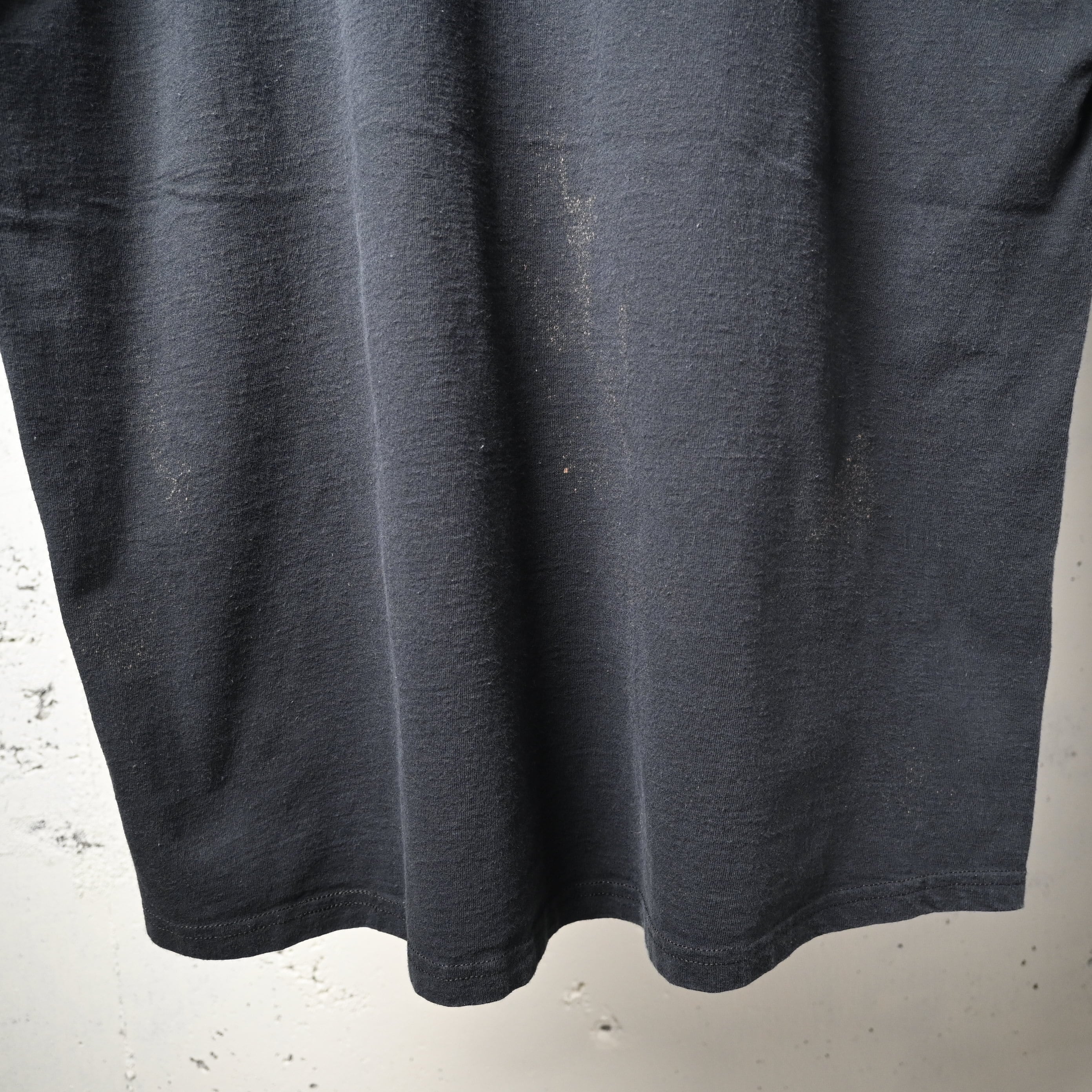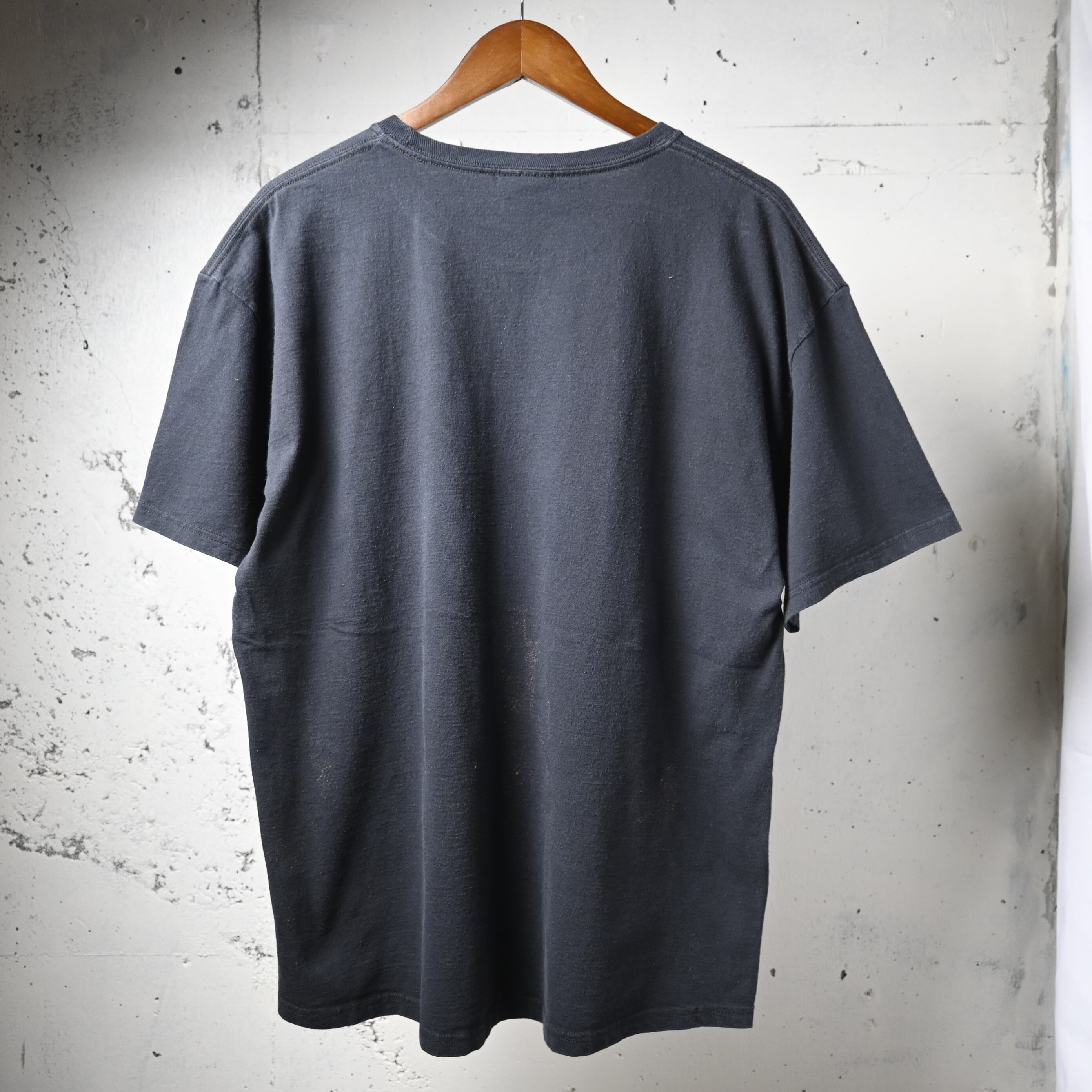 全体に自然な着用感とわずかな色褪せがありますが、目立つ汚れやダメージはなく、プリントの状態も良好です。古着として着用しやすいコンディションです。