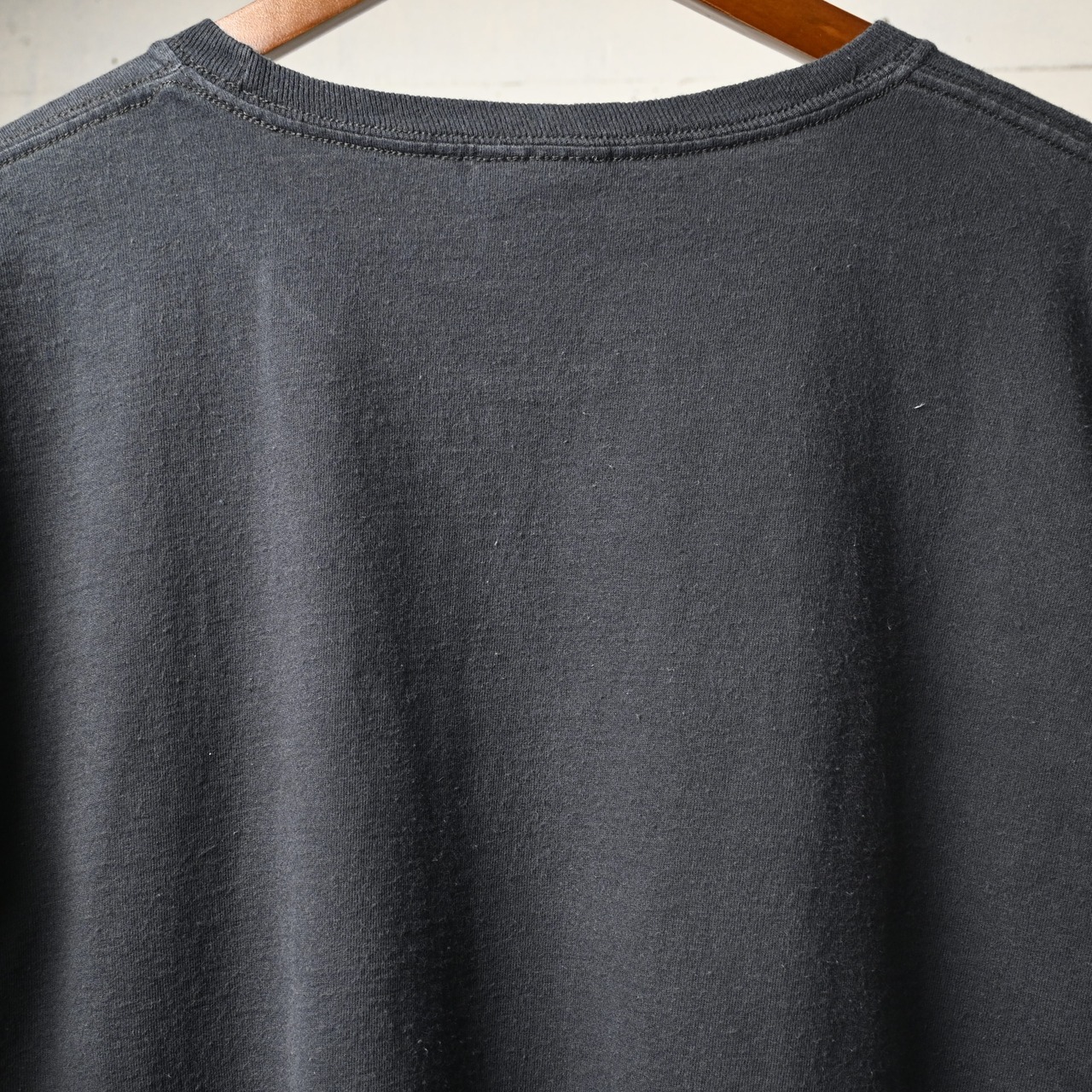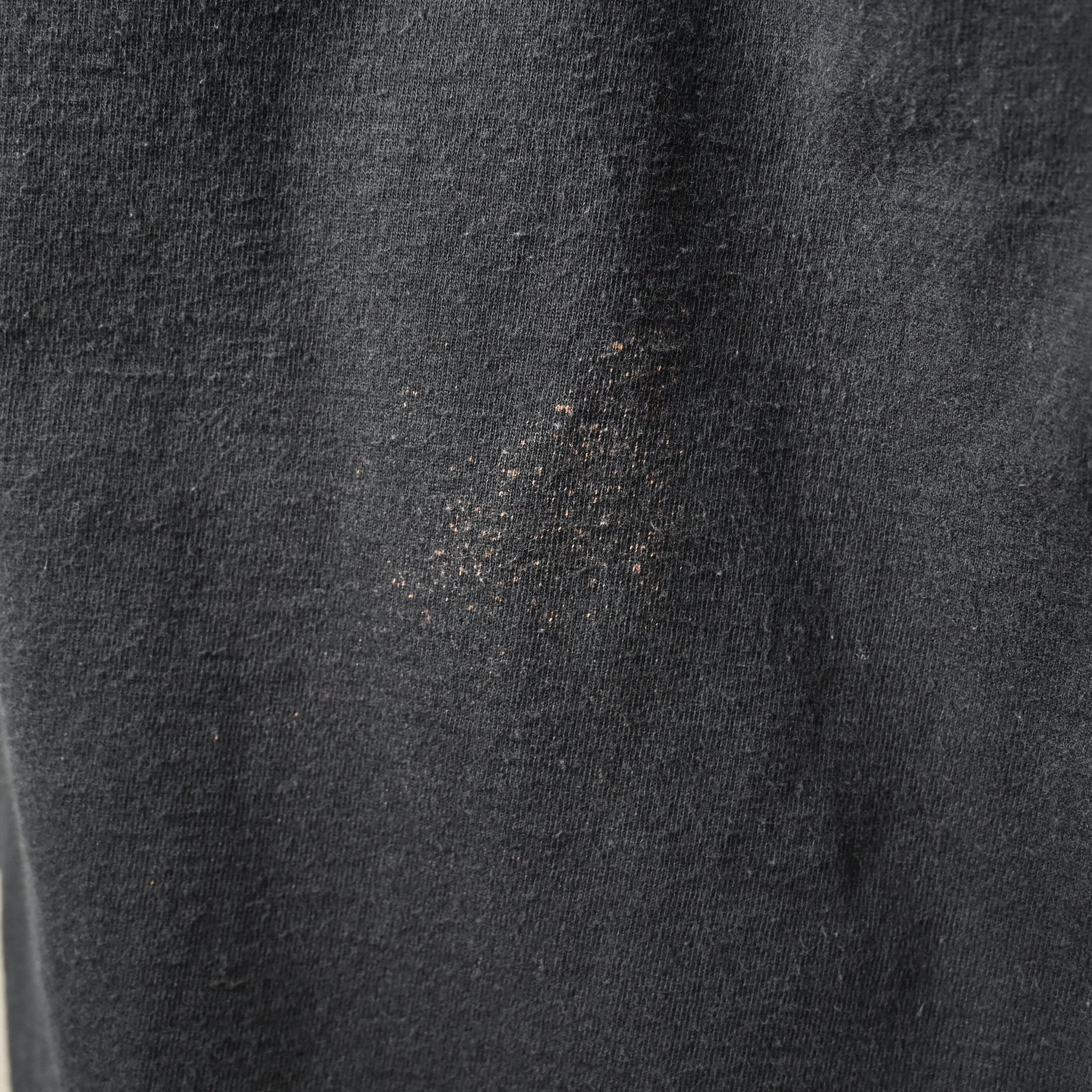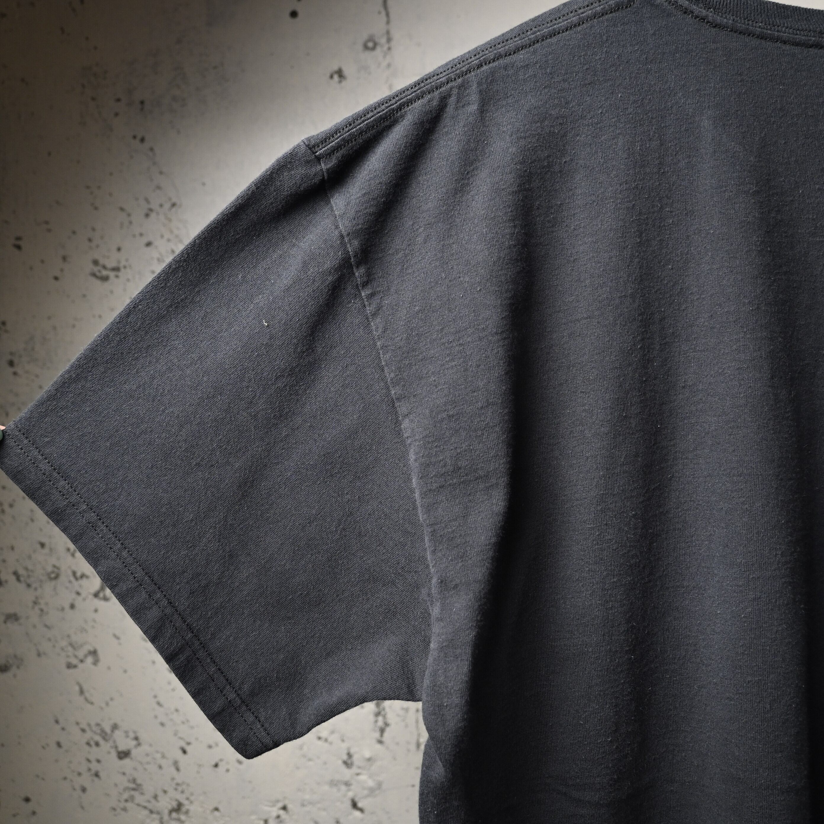 全体に自然な着用感とわずかな色褪せがありますが、目立つ汚れやダメージはなく、プリントの状態も良好です。古着として着用しやすいコンディションです。