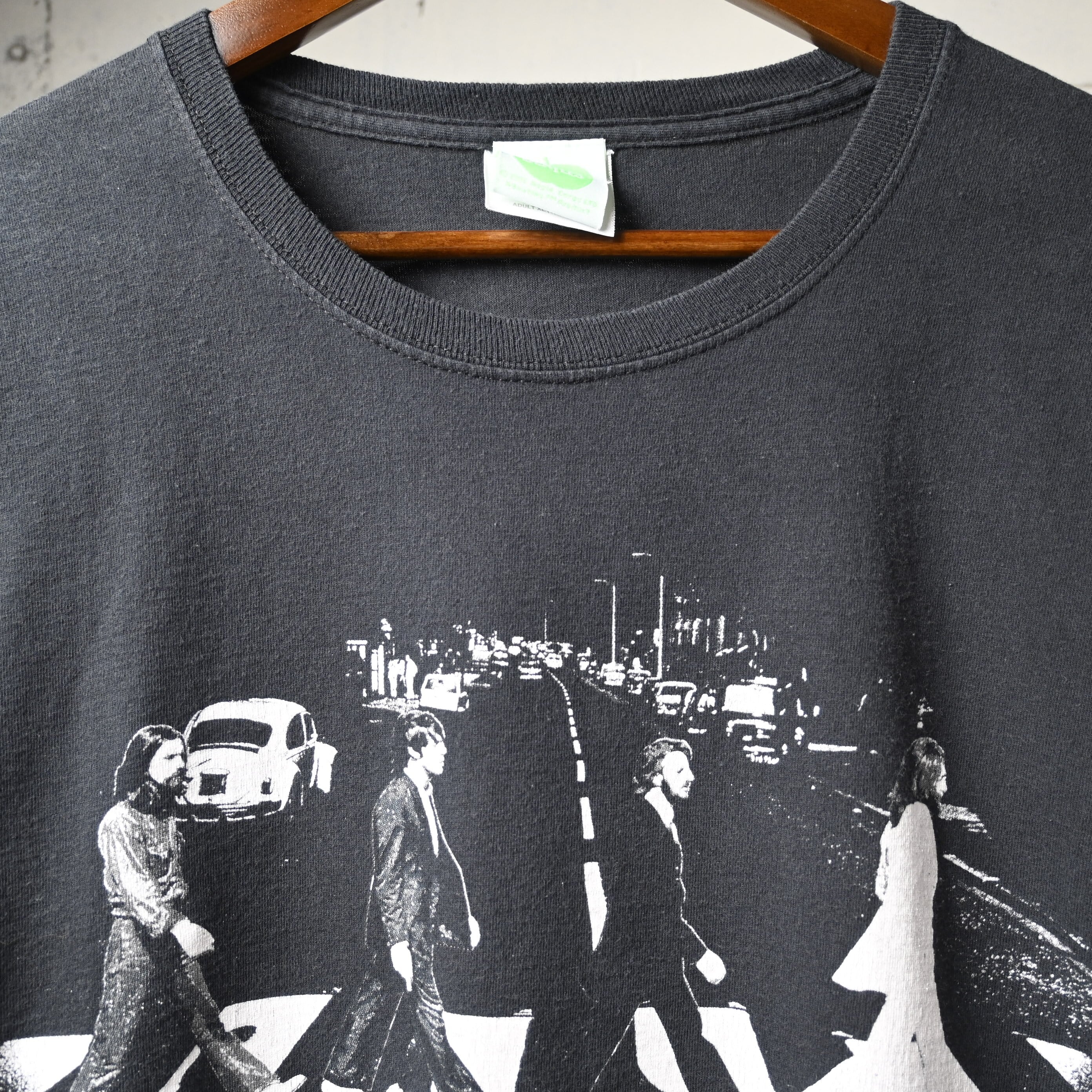 フロントには、Abbey Roadの横断歩道を4人が歩く歴史的なアートワークをモノトーンでプリント。1969年発表のアルバム『Abbey Road』は、ビートルズ後期を象徴する作品であり、この横断歩道のビジュアルは音楽史の中でも最も認知度の高いイメージのひとつです。