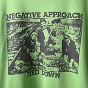 Negative Approachの代表作として知られる Tied Down をモチーフにした、2000年代頃のプリントTシャツです。