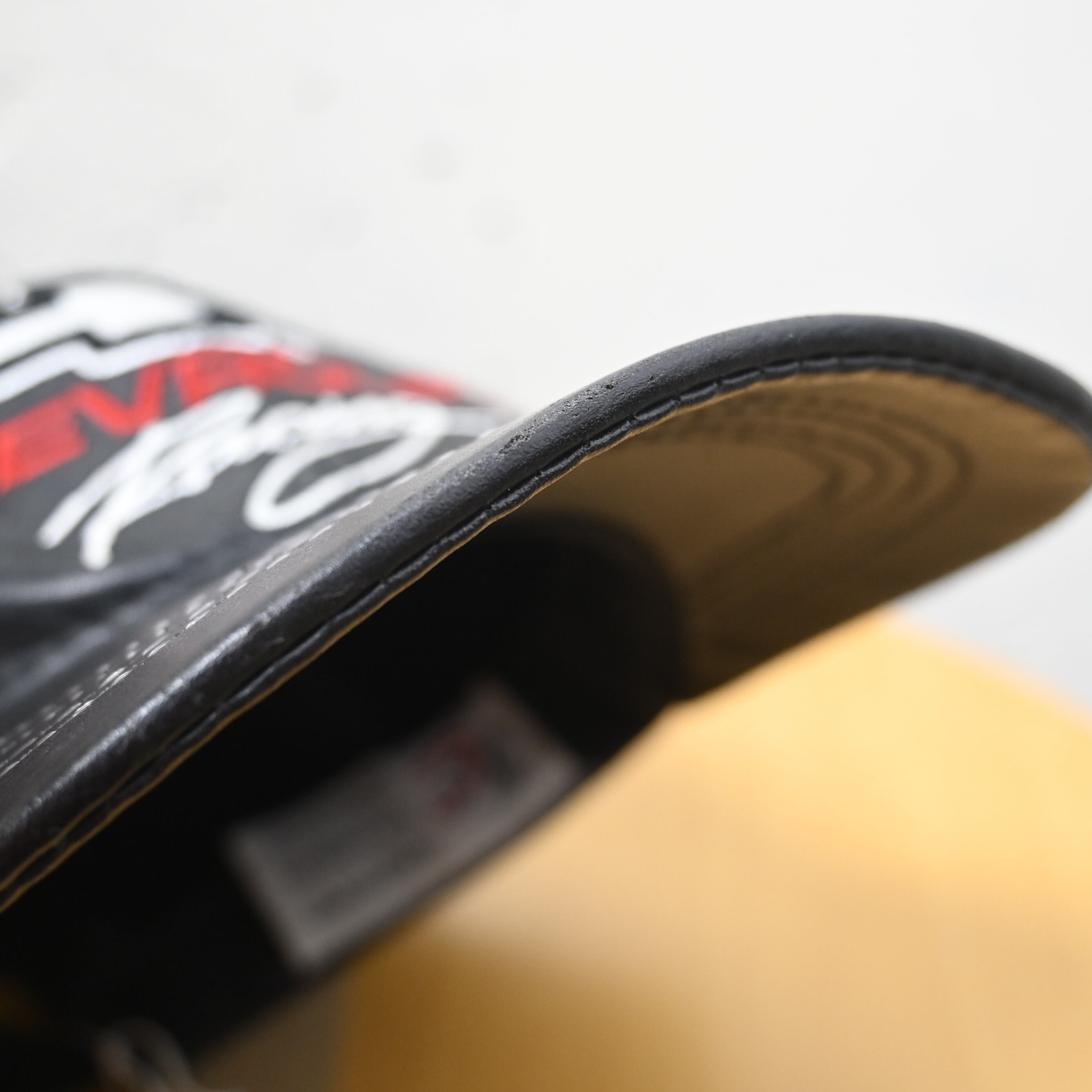 つば先にわずかな擦れあり。内側に軽い使用感がありますが、レザー表面の状態は良好で、全体としてきれいなコンディションです。