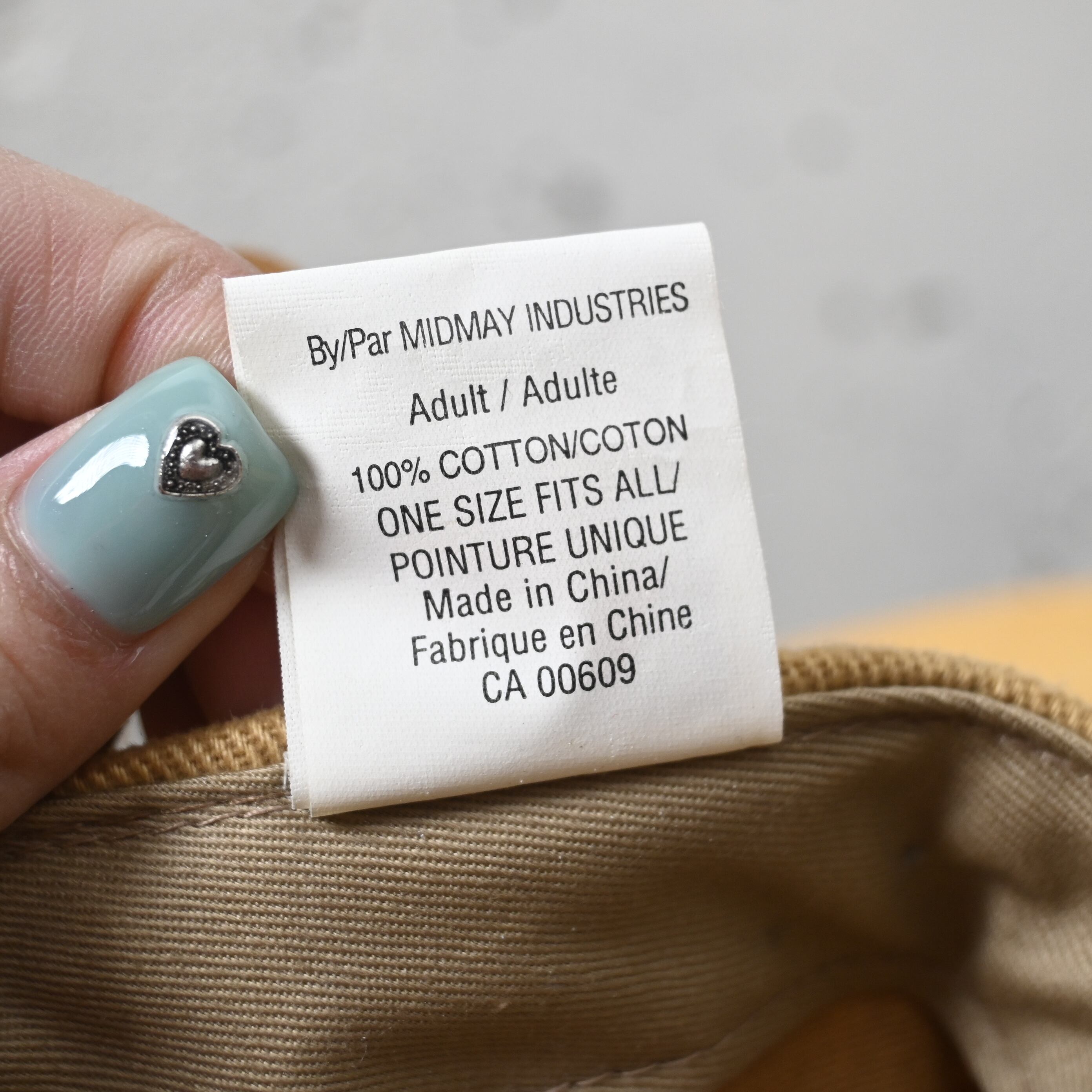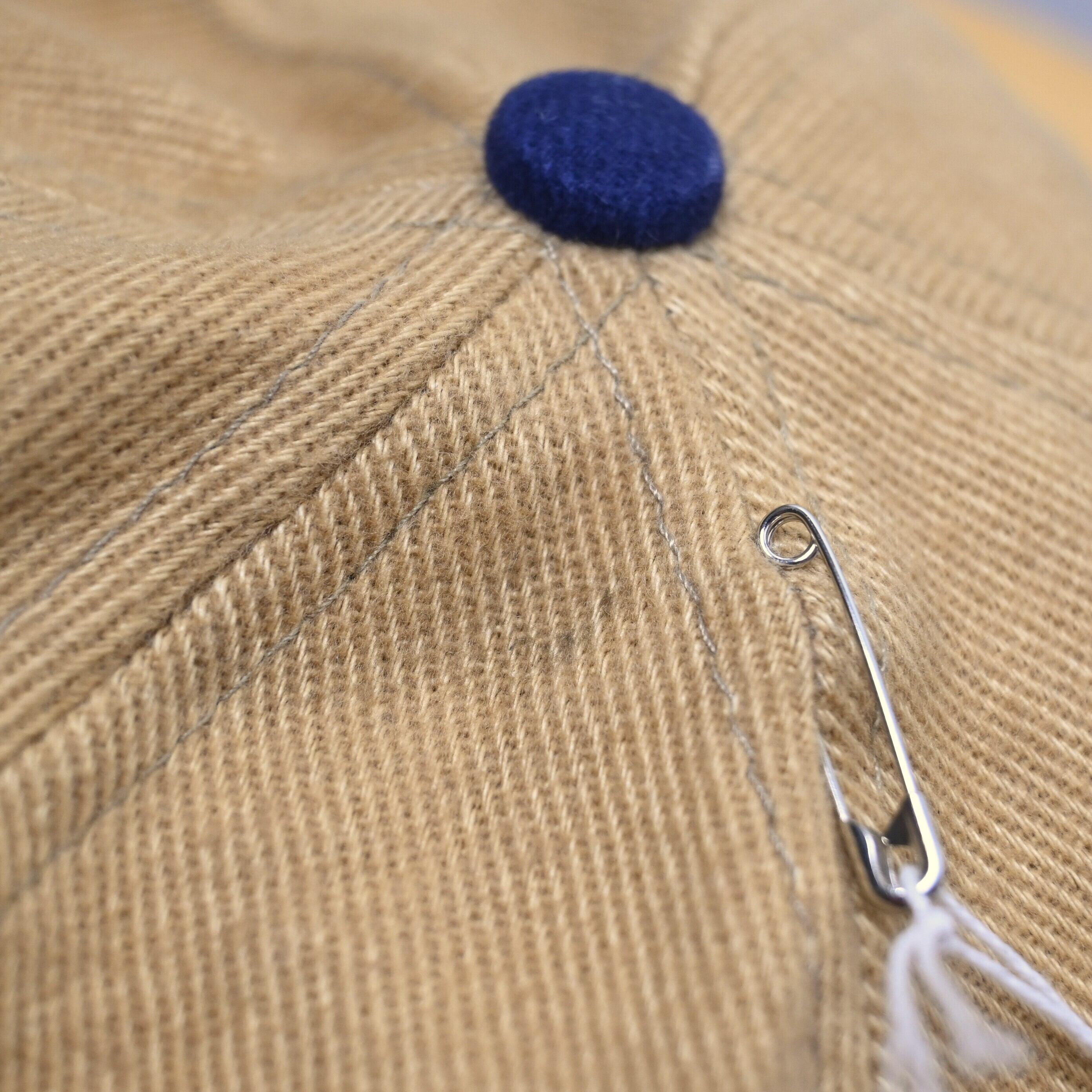 後部はレザーベルト仕様でサイズ調整可能。コットン100%のしっかりした生地感で、日常使いしやすい一本です。