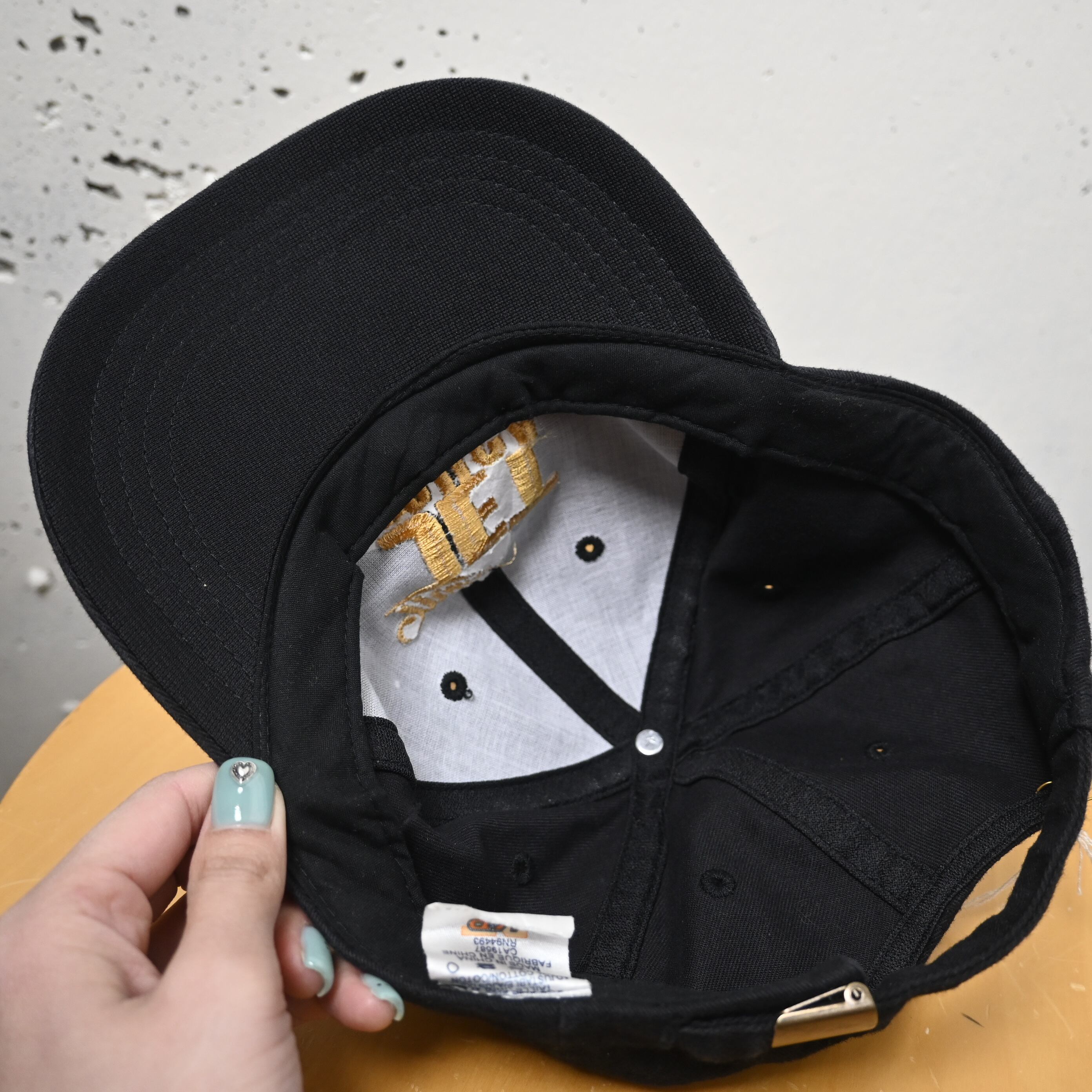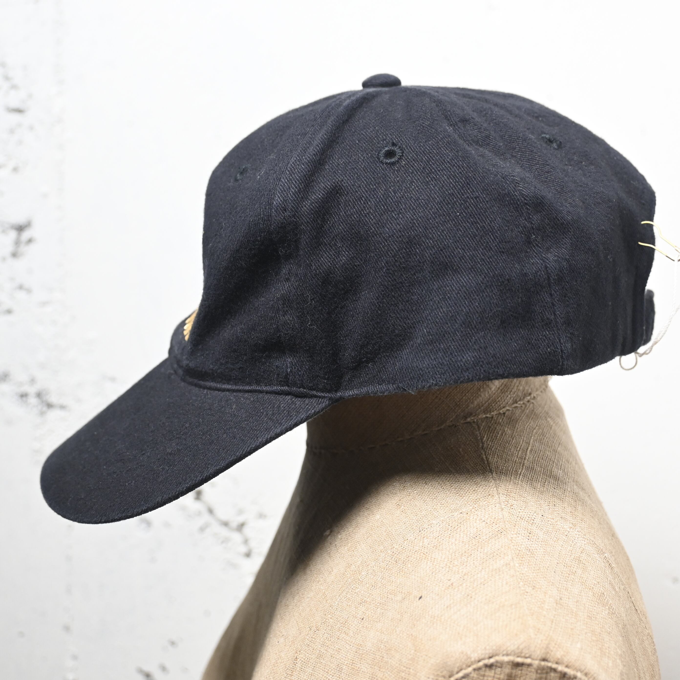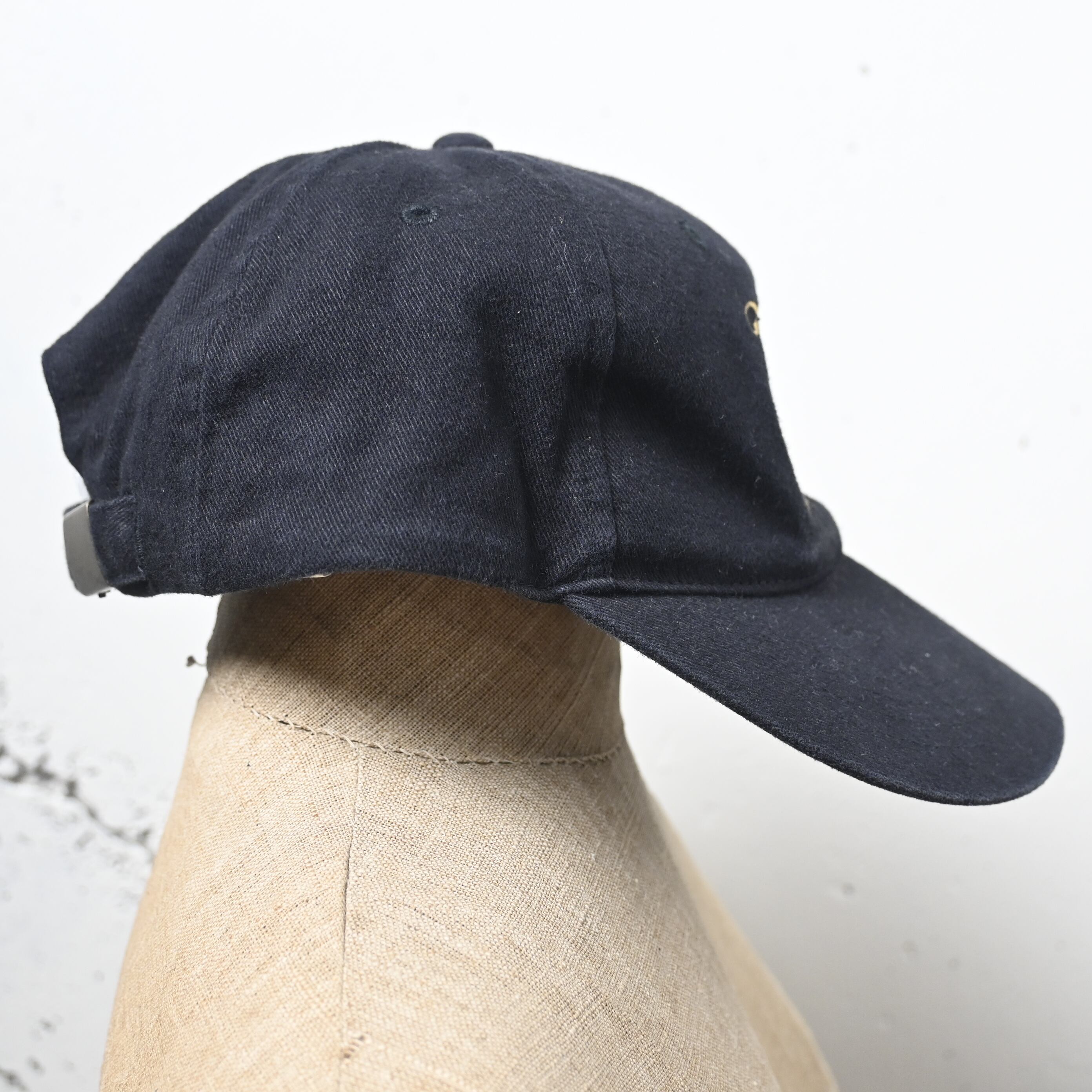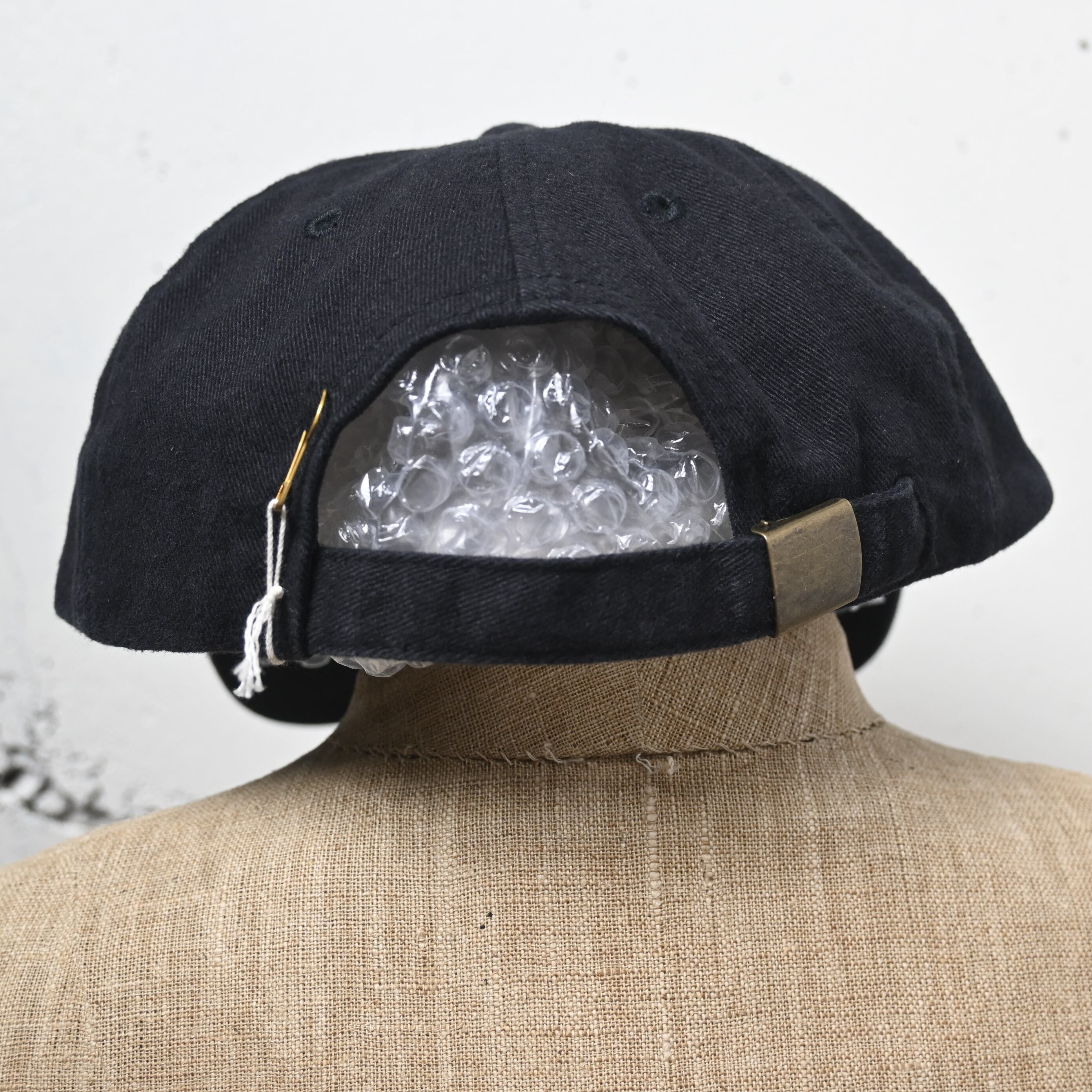 ボディは KP製、100%コットン素材。6パネルのクラシックなシルエットで、バックはアジャスター付きのサイズ調整仕様。刺繍の立体感もあり、シンプルながら古着らしい空気をしっかり持った仕上がりです。