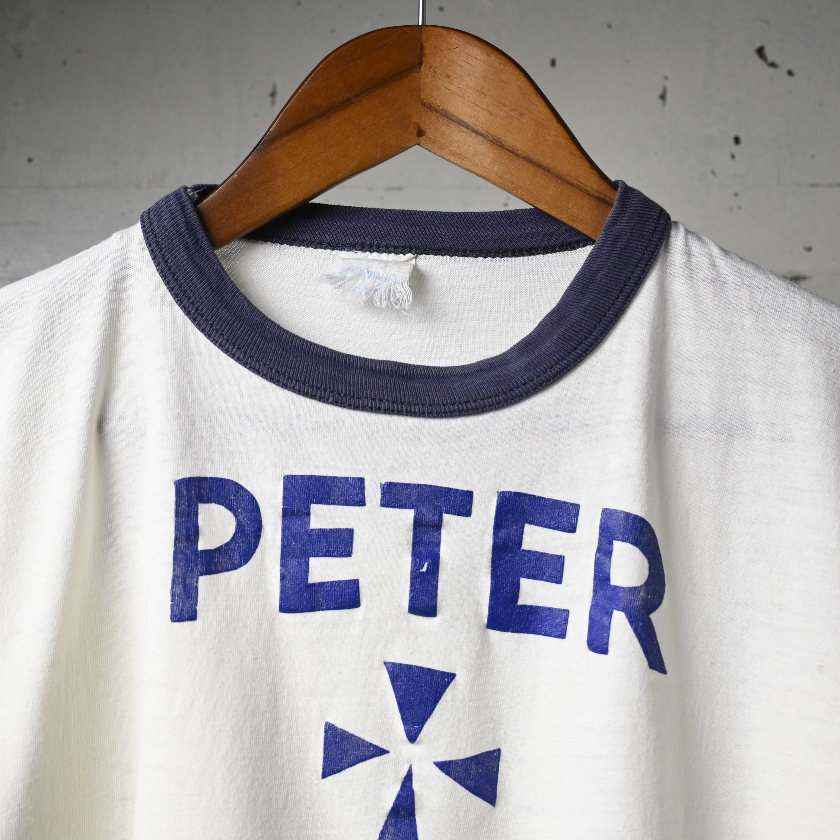 [ about M ] Unknown 70s "PETER" Ringer T-shirt , White Navy / 70年代 リンガーTシャツ ホワイト ネイビー