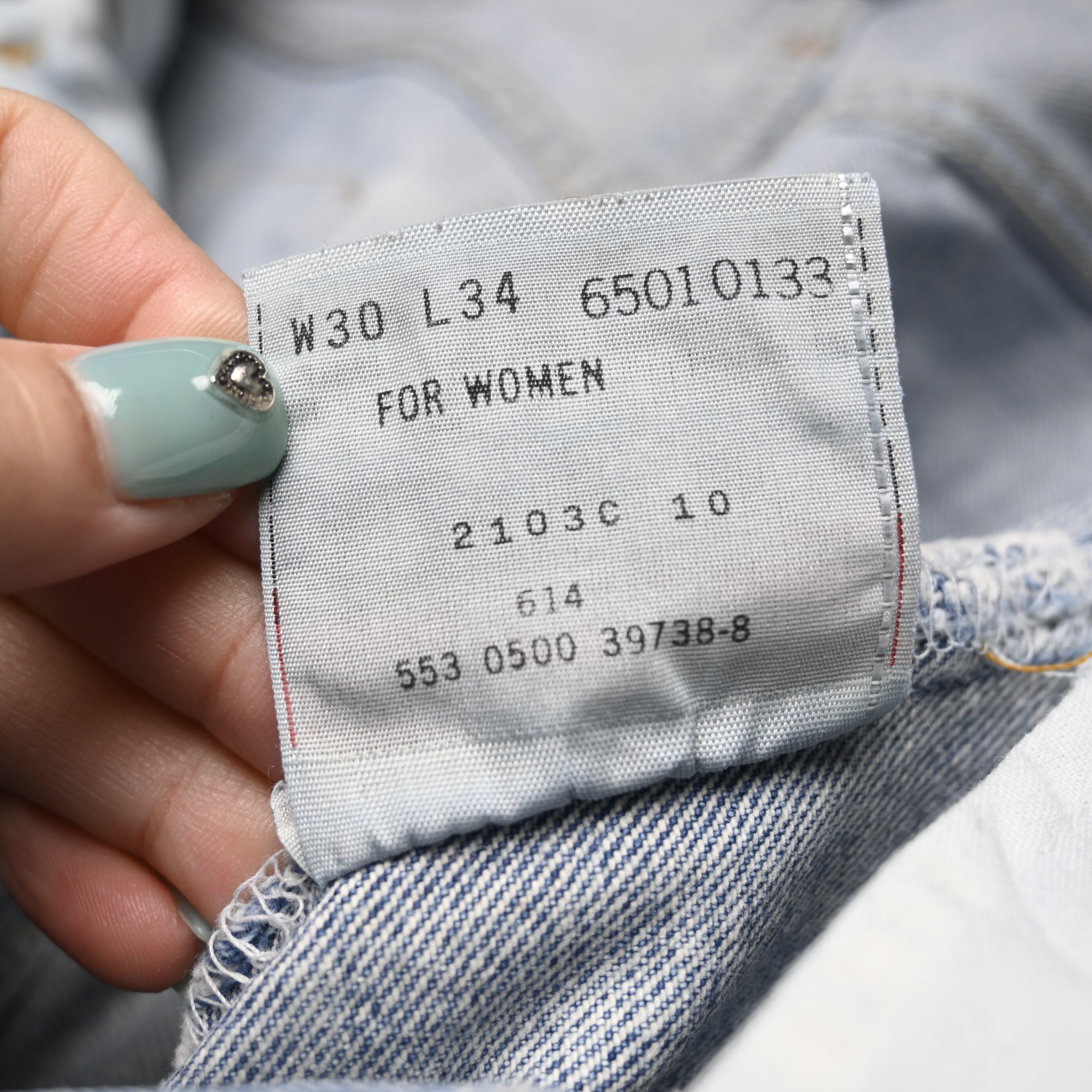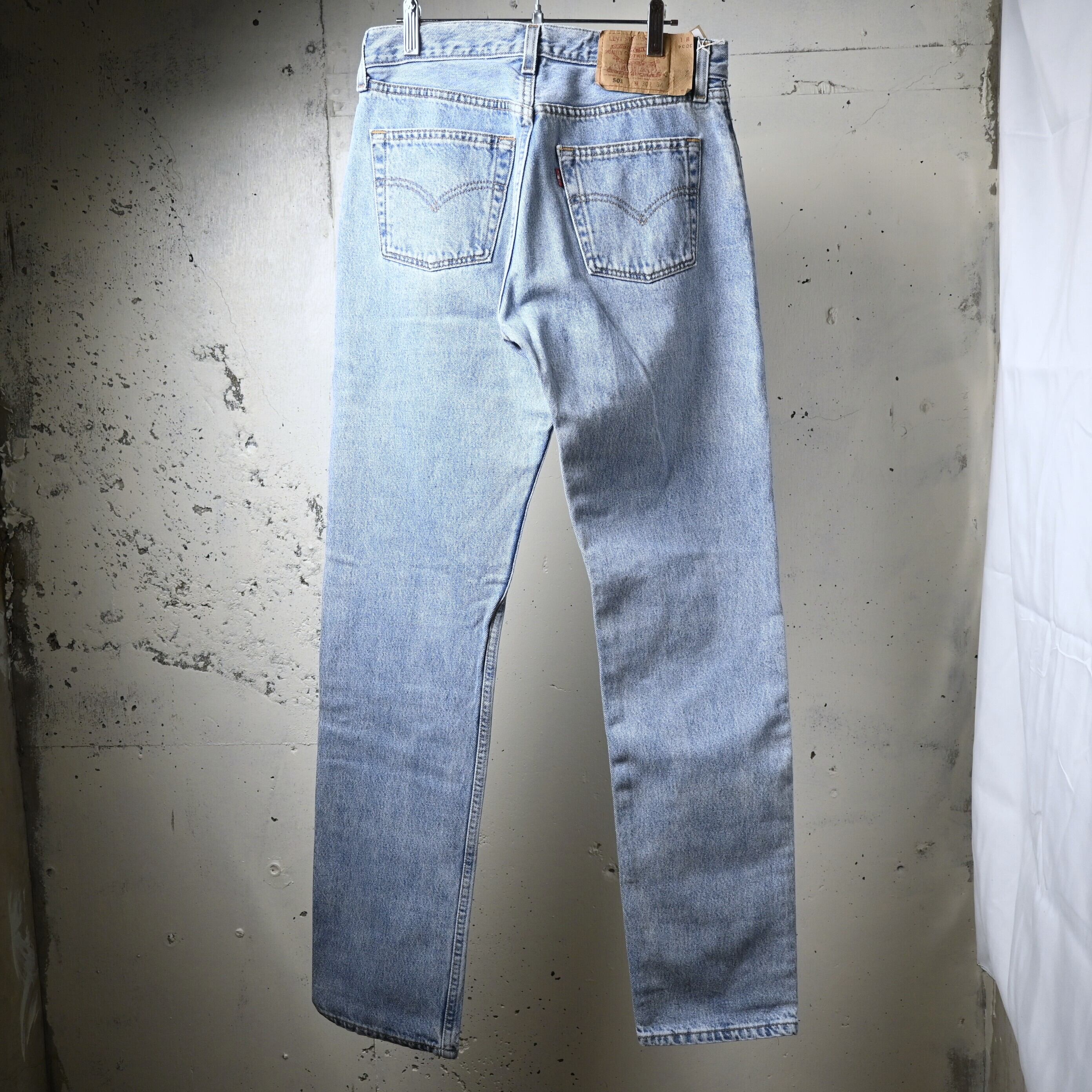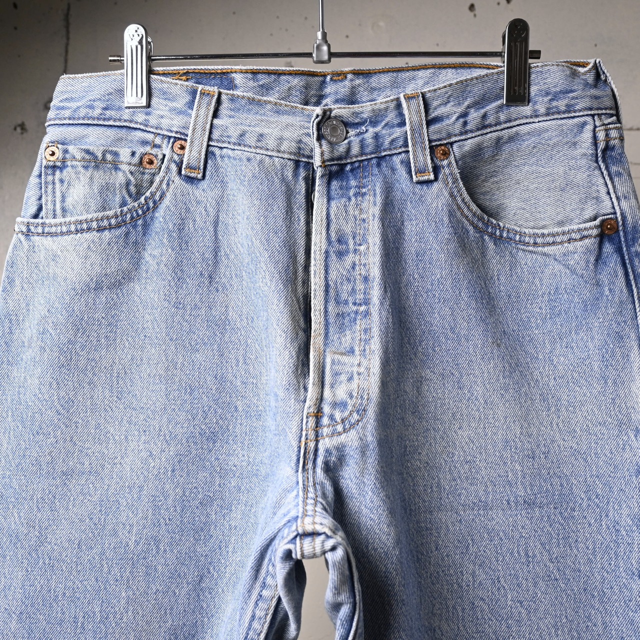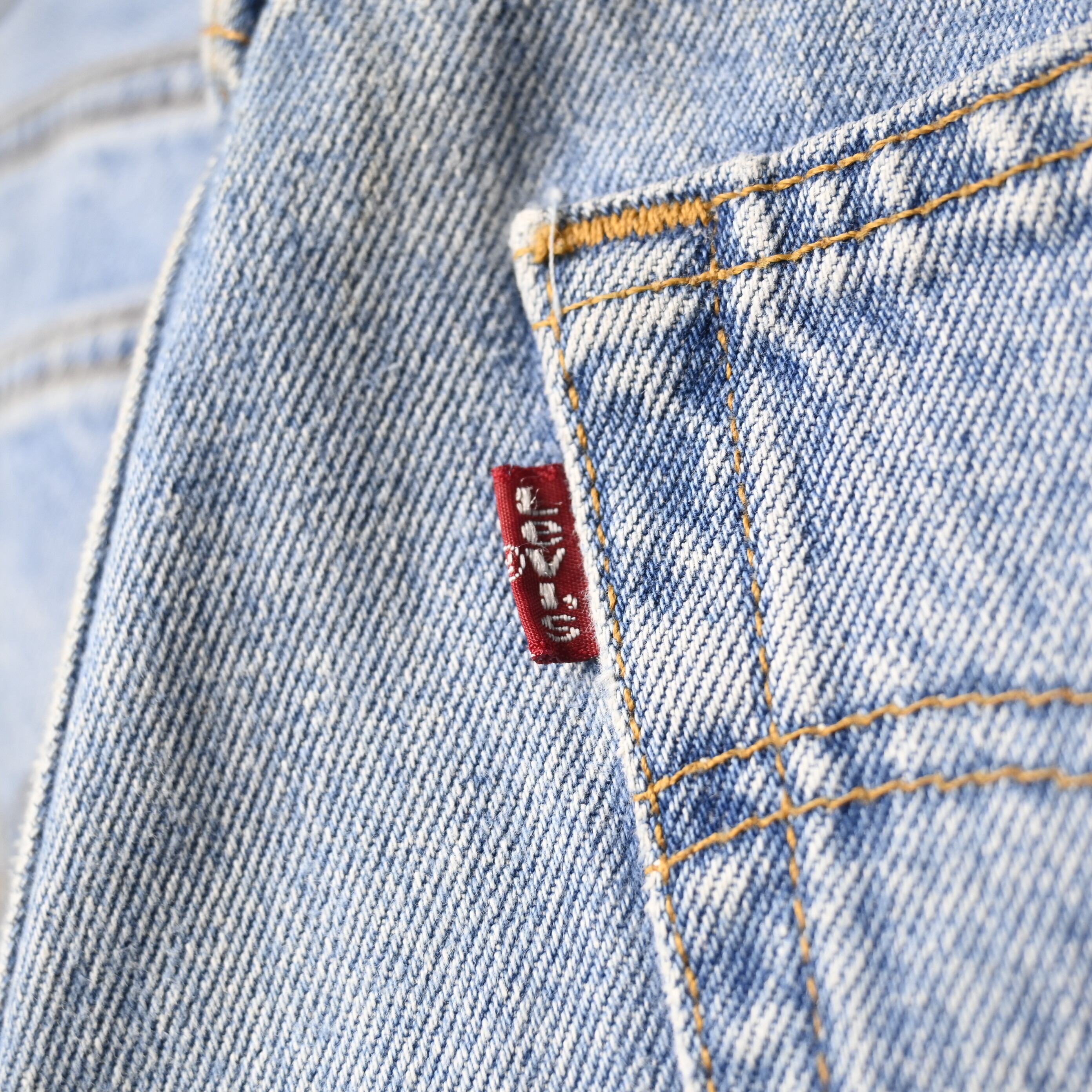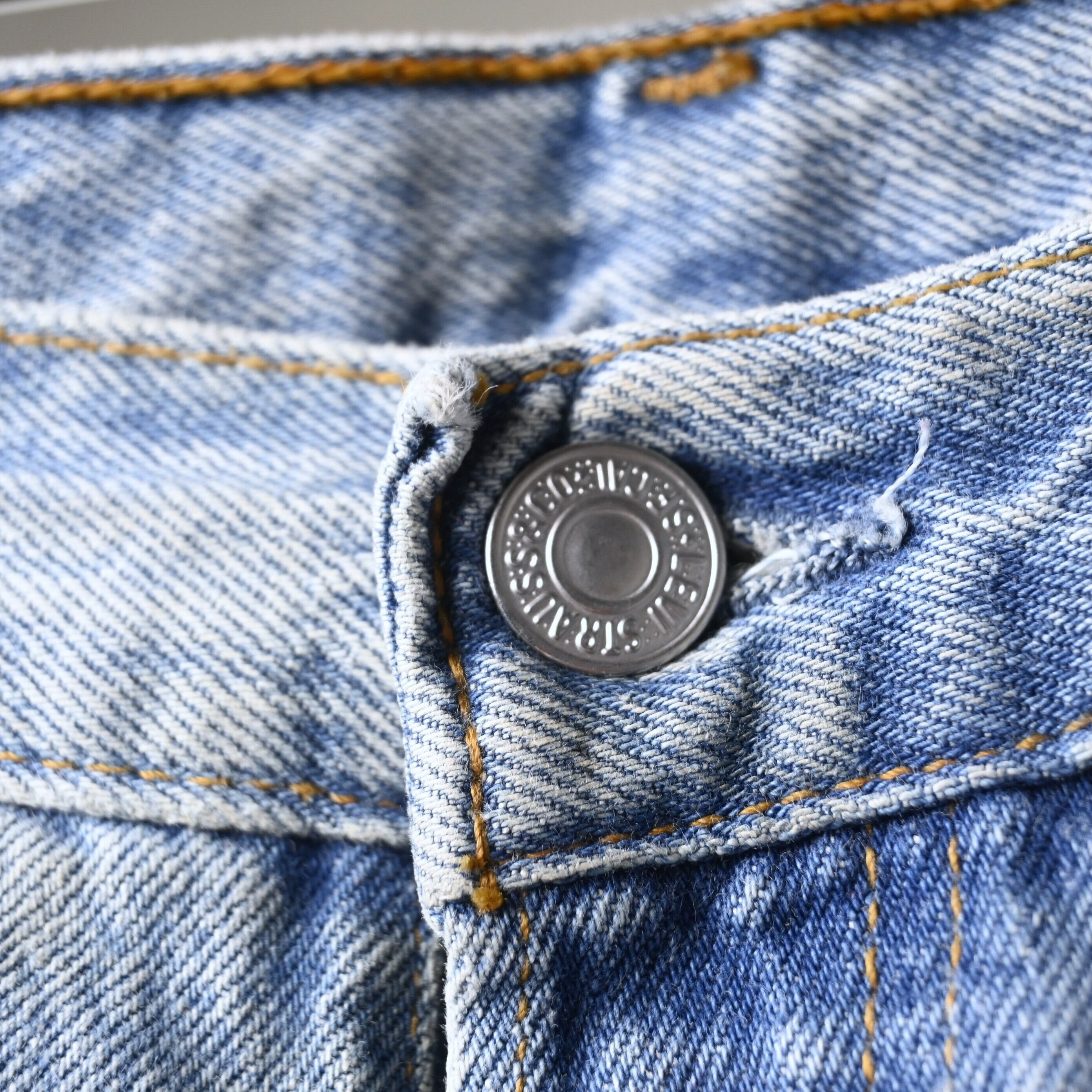 こちらは2000年USA製の一本。まだアメリカ生産が継続されていた時期の個体で、近年あらためて評価が高まっている年代です。全体は淡く均一に色が抜けたライトブルーで、強すぎない自然なフェードがあり、クリーンな印象で穿ける一本に仕上がっています。