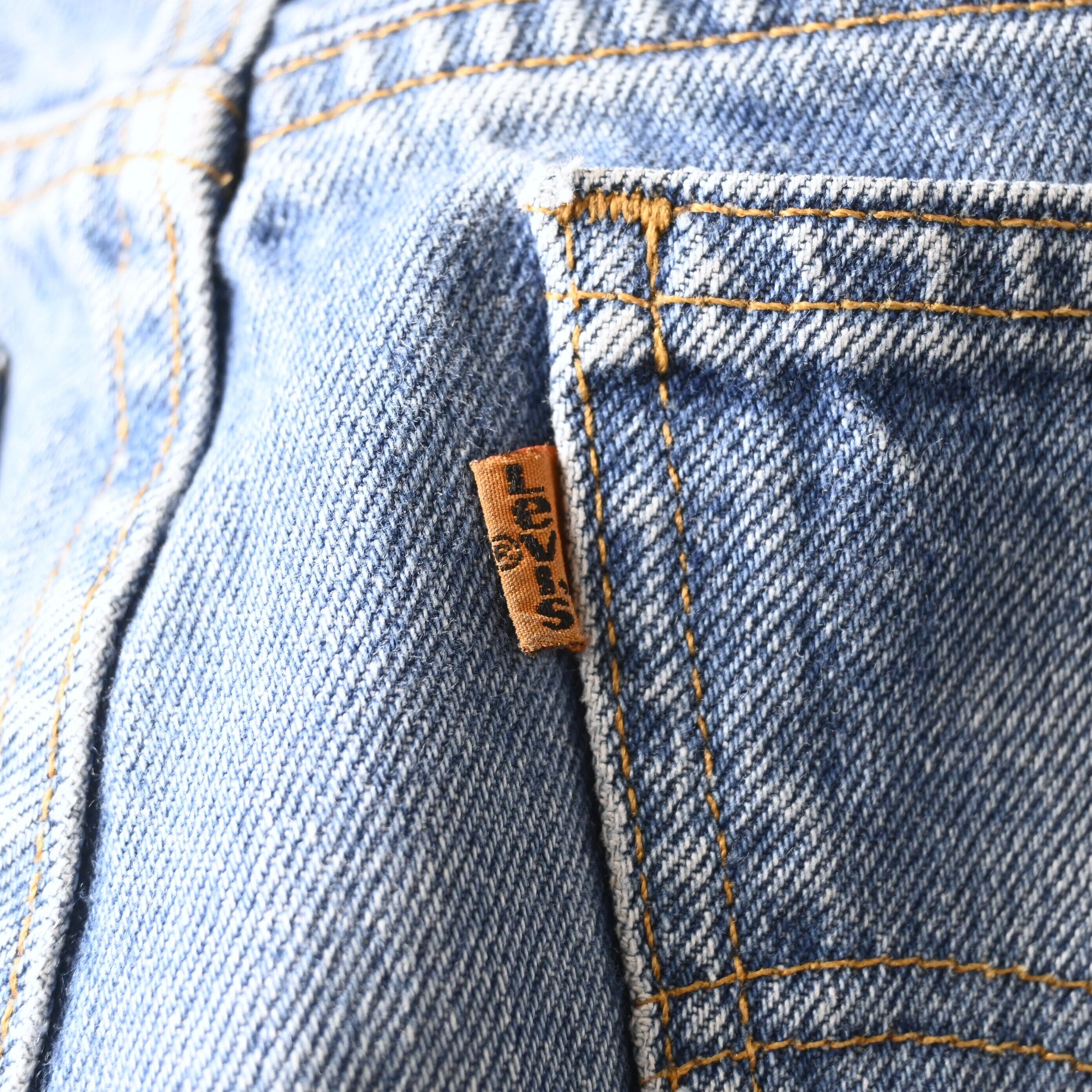 全体にしっかりと縦落ちが出始めた淡いブルーで、フロントからヒップにかけて自然なフェードが入り、90年代USA製らしい軽やかな色味に仕上がっています。505らしい癖の少ないストレートシルエットで、スニーカー・革靴どちらにも合わせやすく、通年使いやすい一本です。