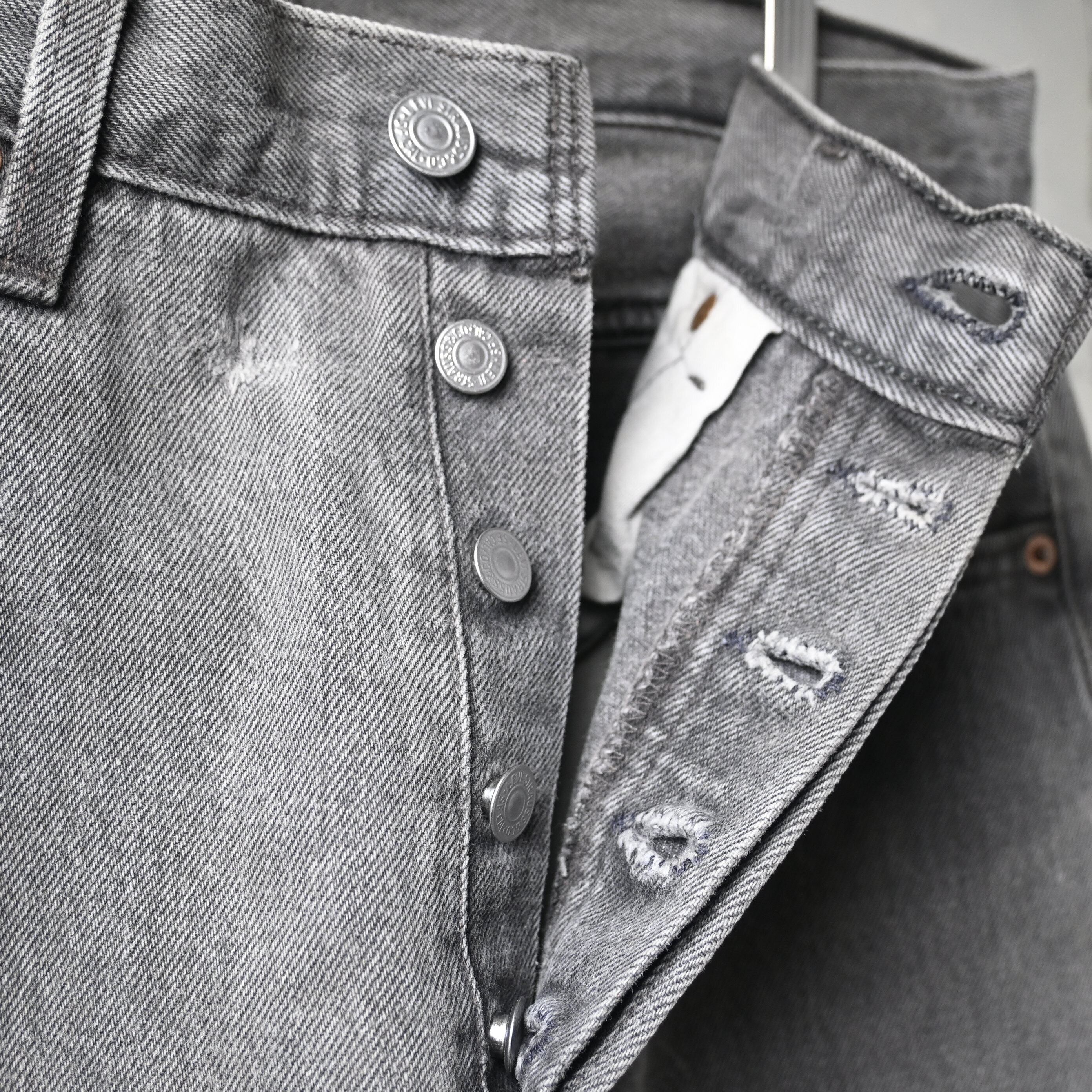 501ならではのストレートシルエットはクセがなく、スウェット、ミリタリージャケット、レザー、シャツまで幅広く対応。グレー寄りに抜けた色味は春夏にも取り入れやすく、ブラックデニムとはまた違った軽さがあります.