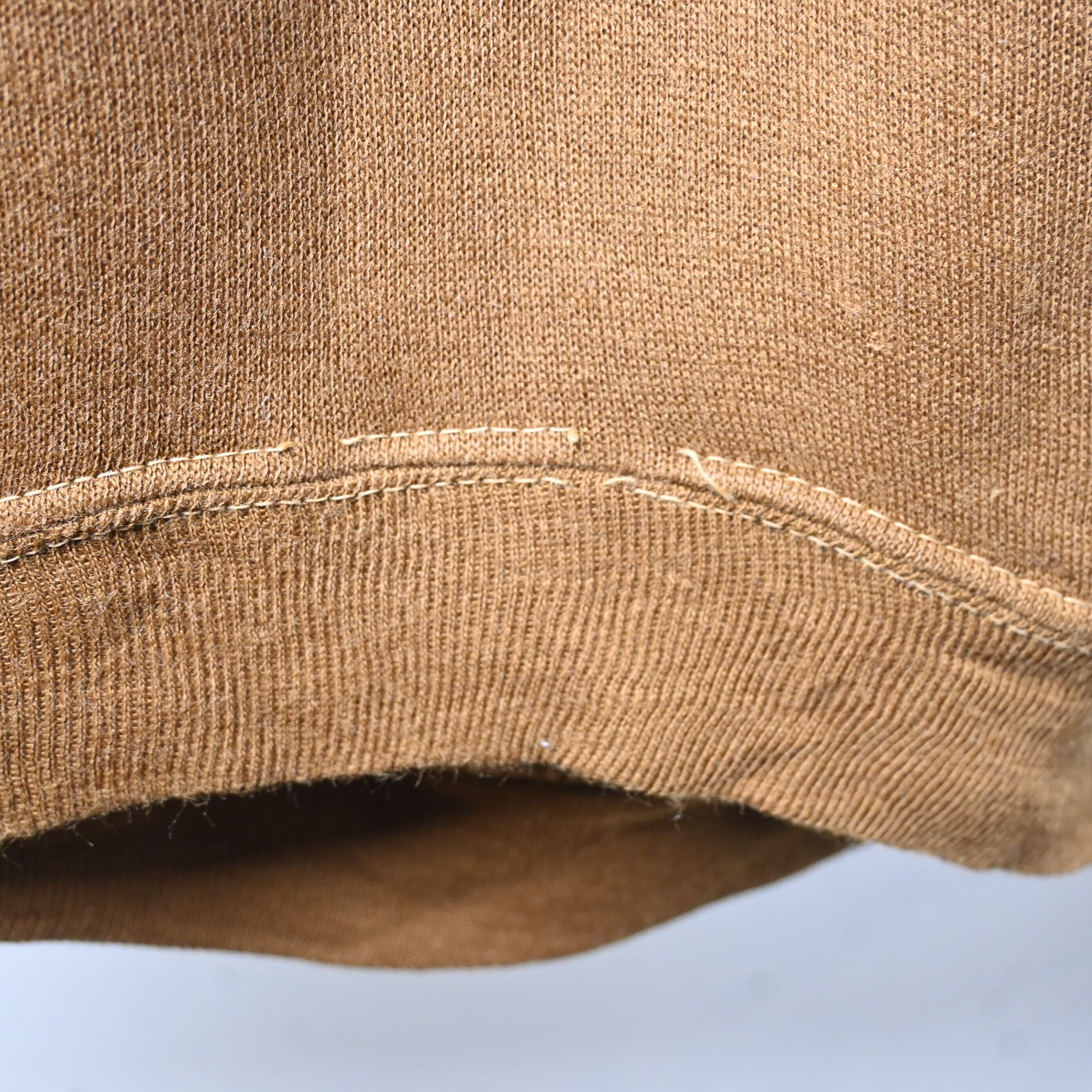 首リブ部分に小さなほつれがあります。全体に自然な使用感はありますが、生地の状態は良く、着用に支障のある大きなダメージはありません。