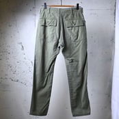 フロントの大きなL字型パッチポケット、バックのフラップポケットという無駄のない構成はそのままに、クセの少ないストレートシルエットで、シャツ・スウェット・ジャケットまで幅広いスタイルに自然に馴染みます。軍パンでありながらクリーンに穿ける一本として、古着の定番として長く支持されているモデルです。