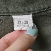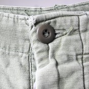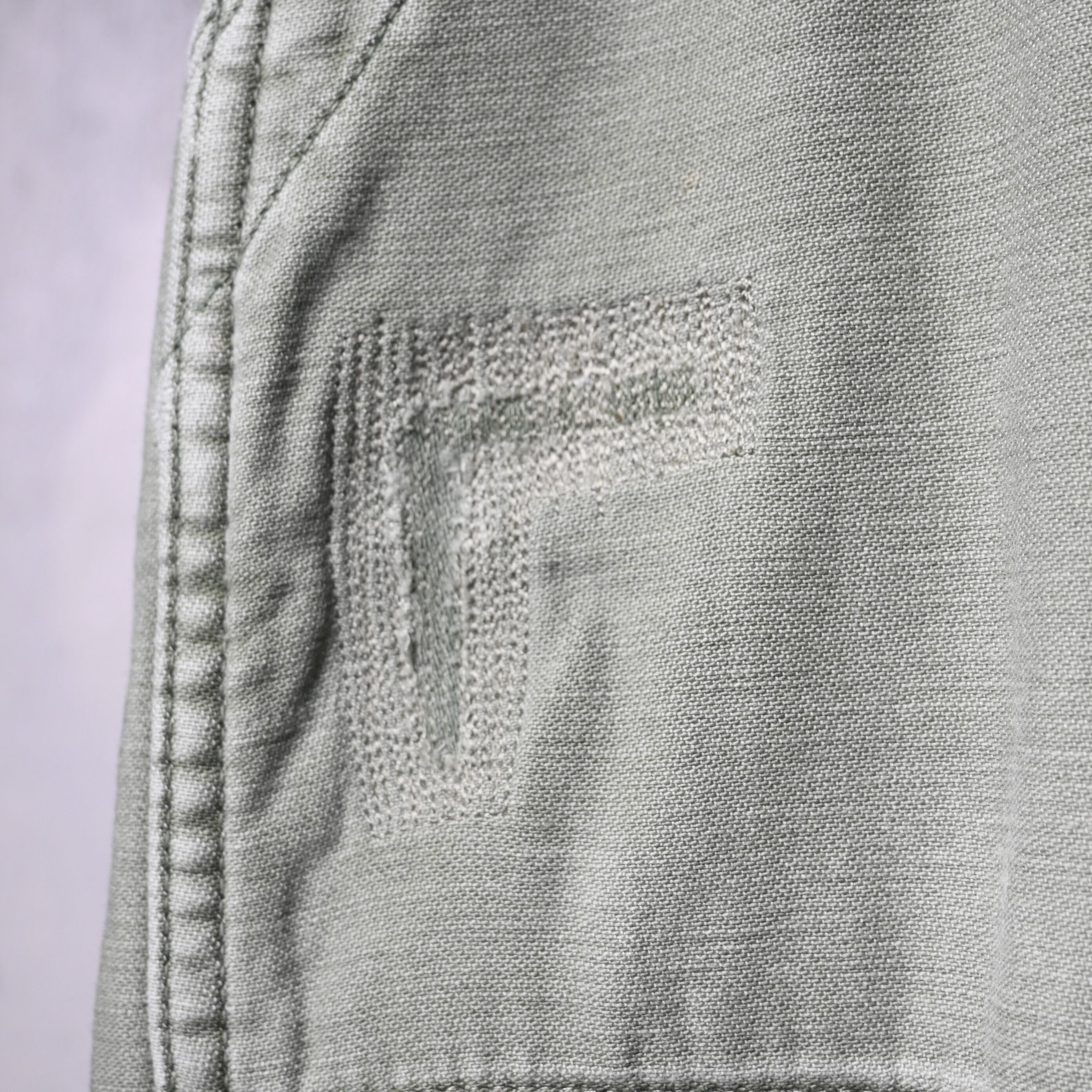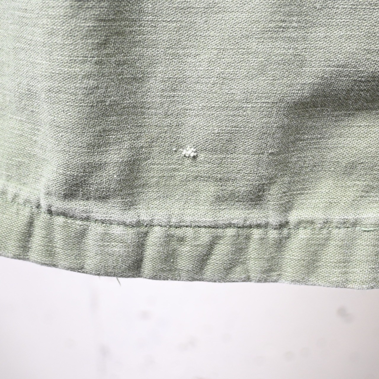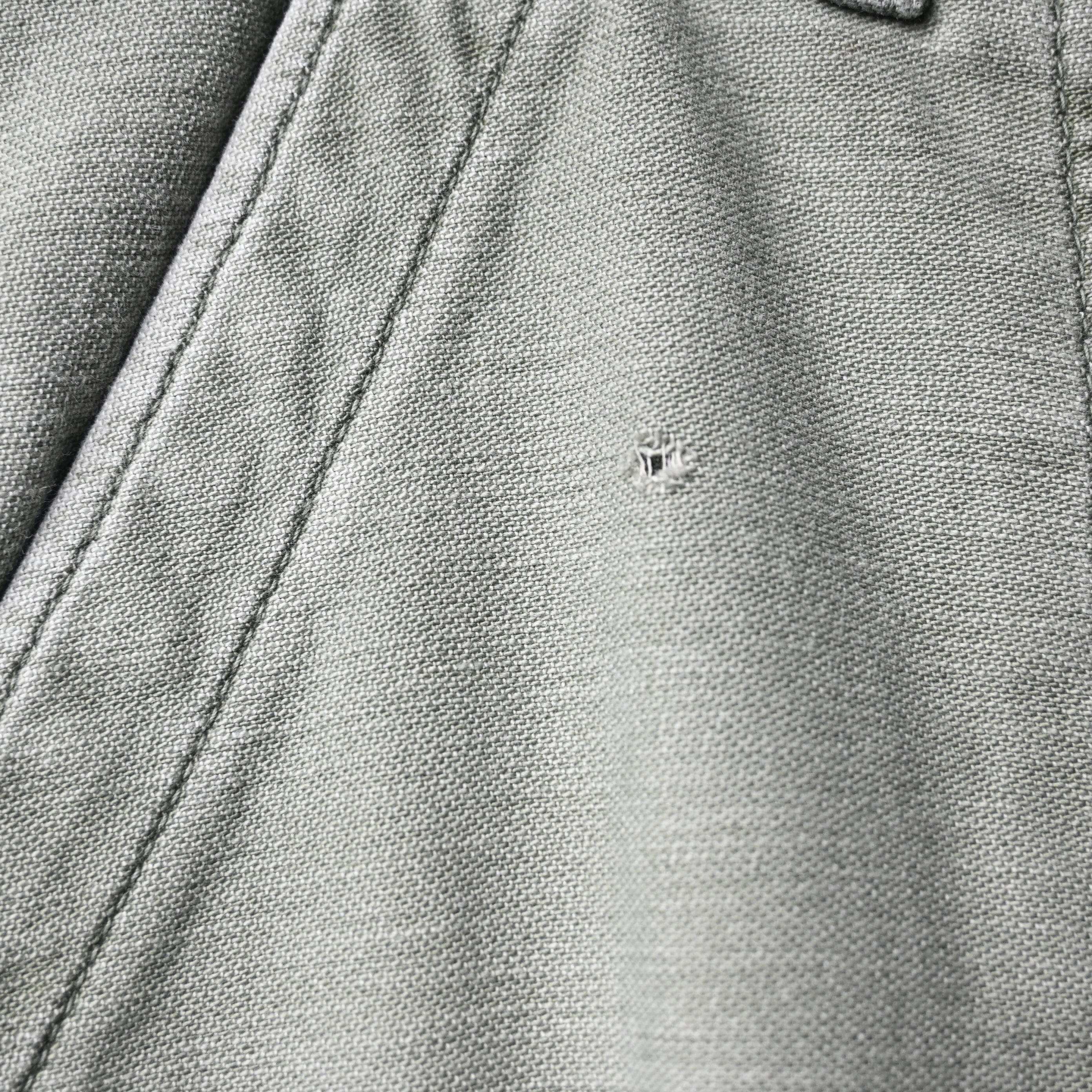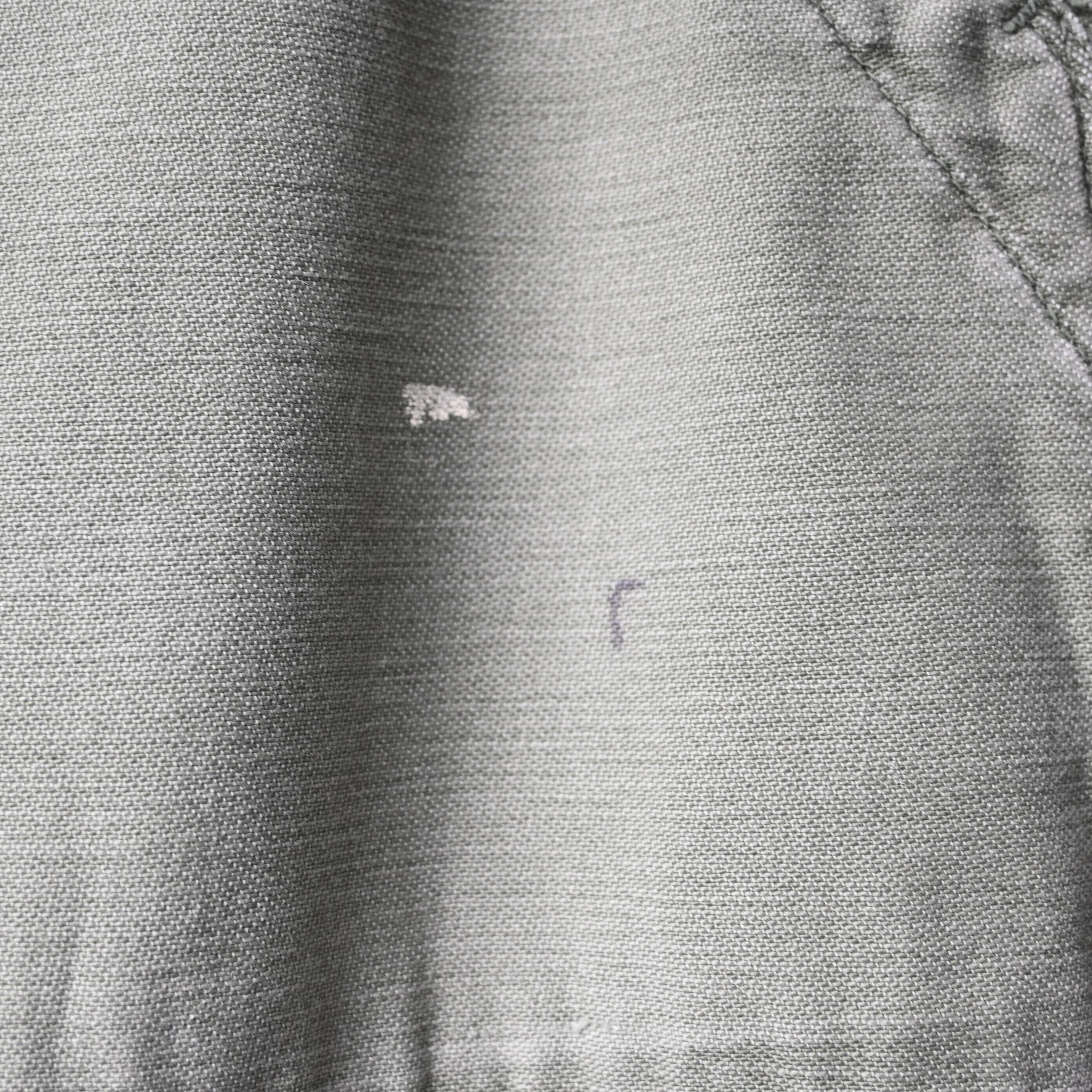 フロントポケット付近にネーム跡あり。ペンキ汚れもあります。全体にフェード、着用感がかなりありますが、ヴィンテージミリタリーらしい自然な風合いとしてお楽しみいただけるコンディションです。