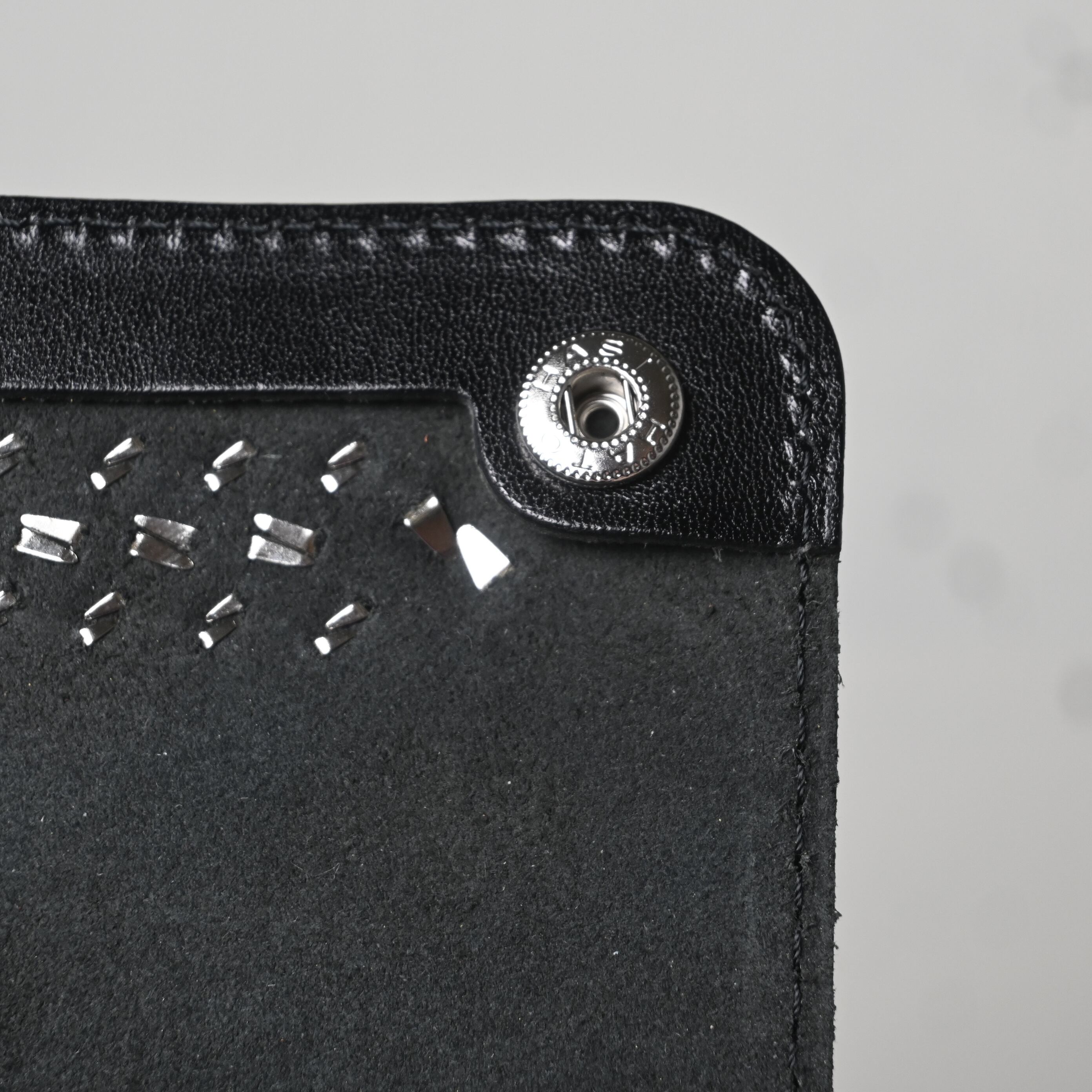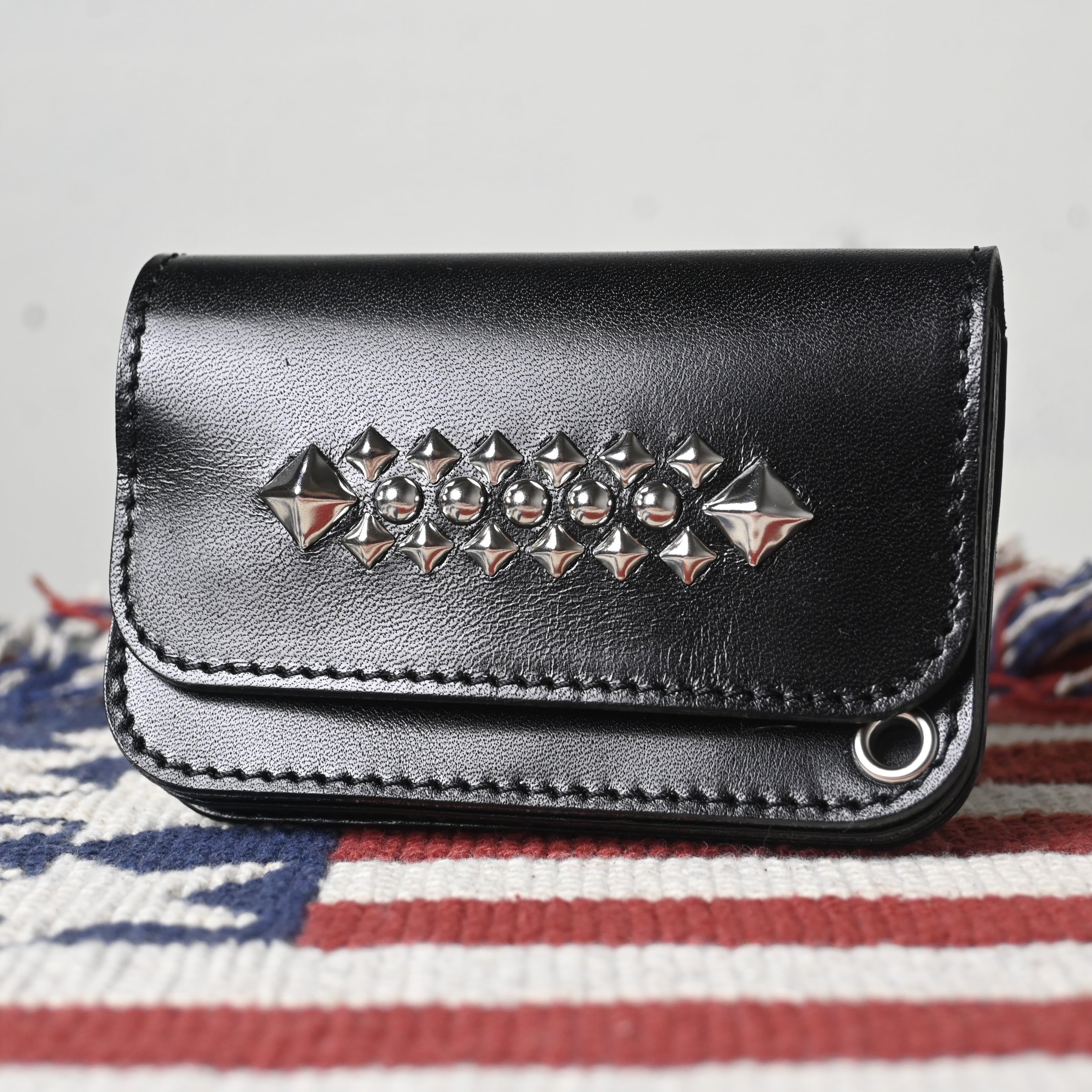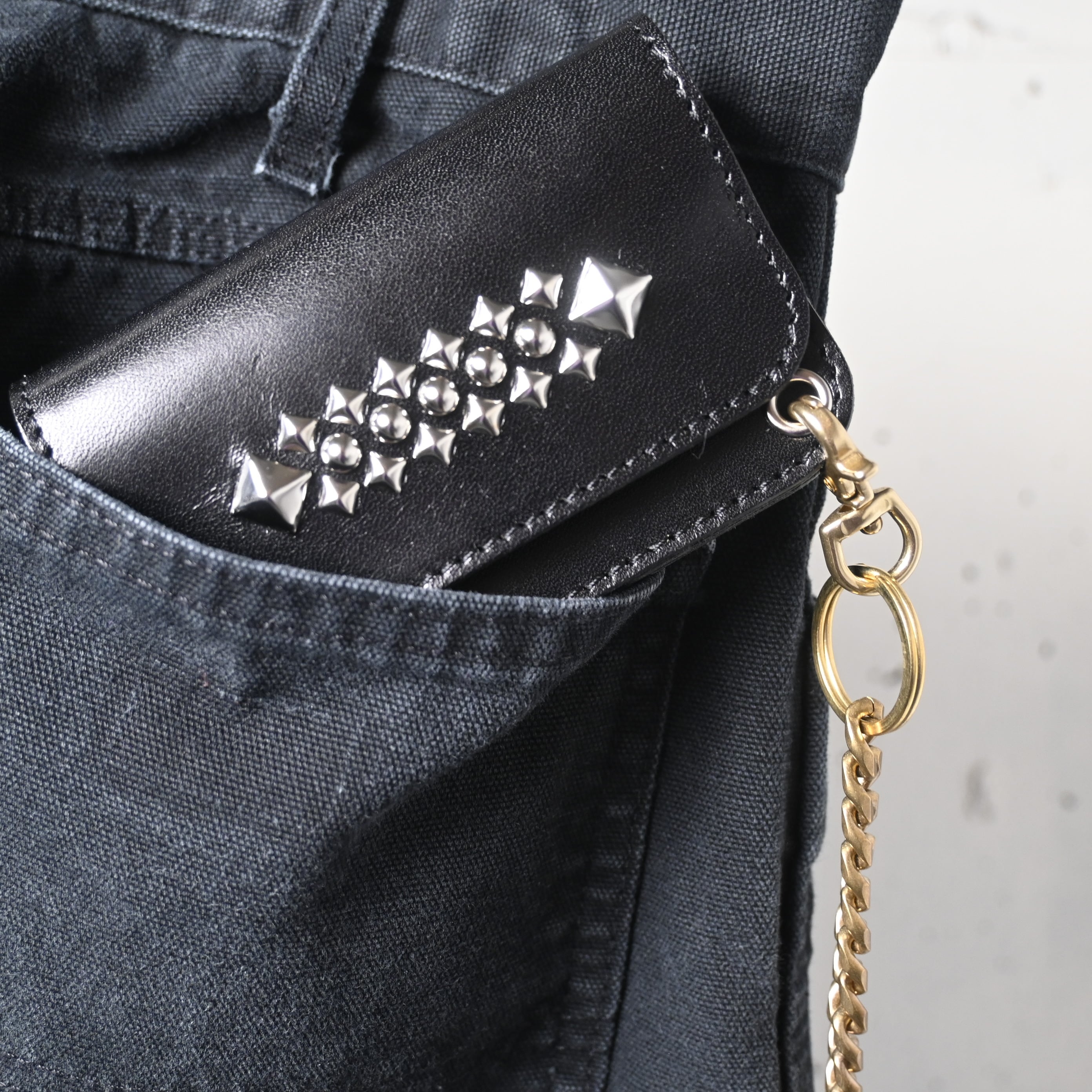 WLSD-007-ST4 栃木レザー スタッズ トラッカーウォレット 日本製 , ブラック シルバースタッズ