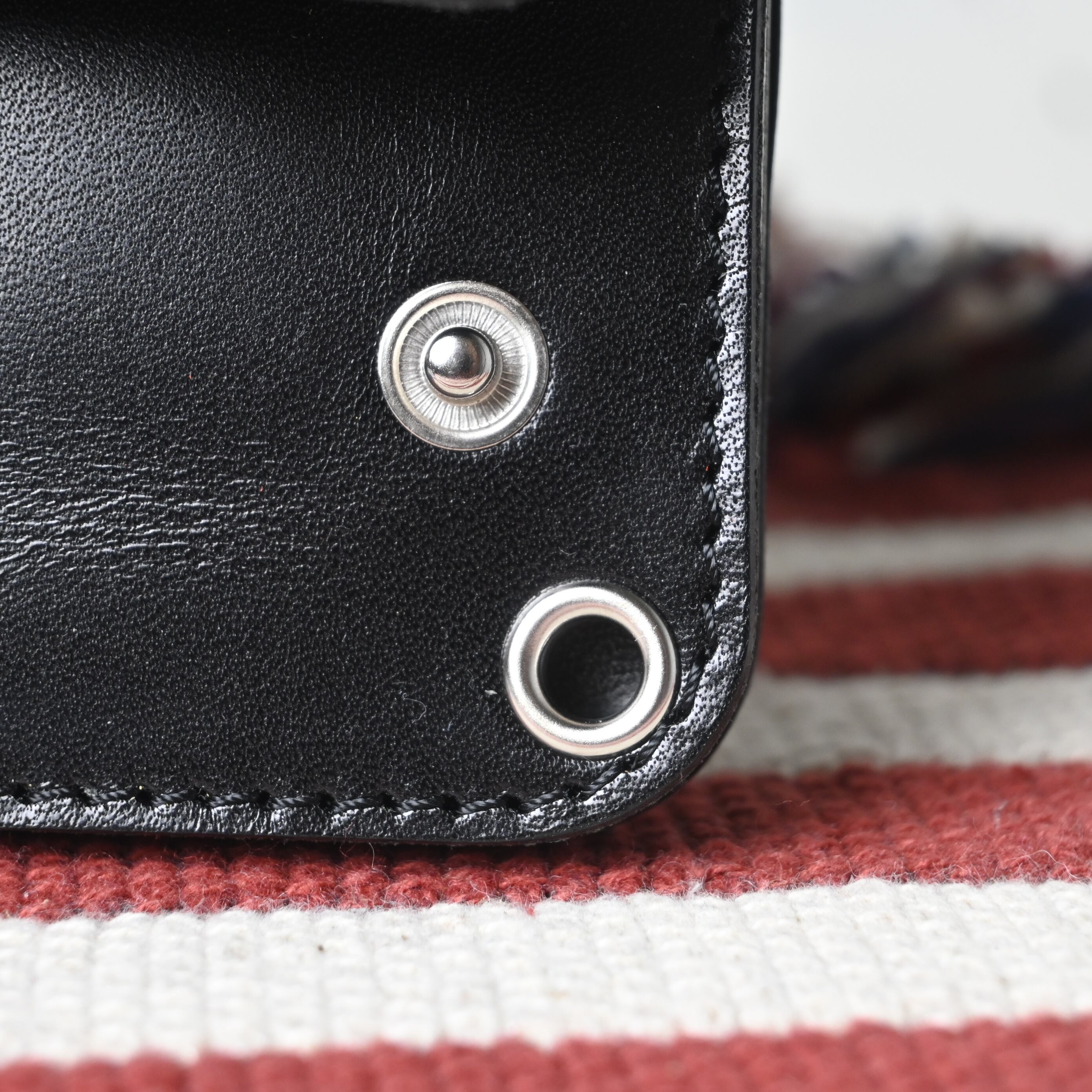 上質な栃木レザーを使用し、日本国内で丁寧に仕上げられたコンパクトサイズのスタッズトラッカーウォレットです。