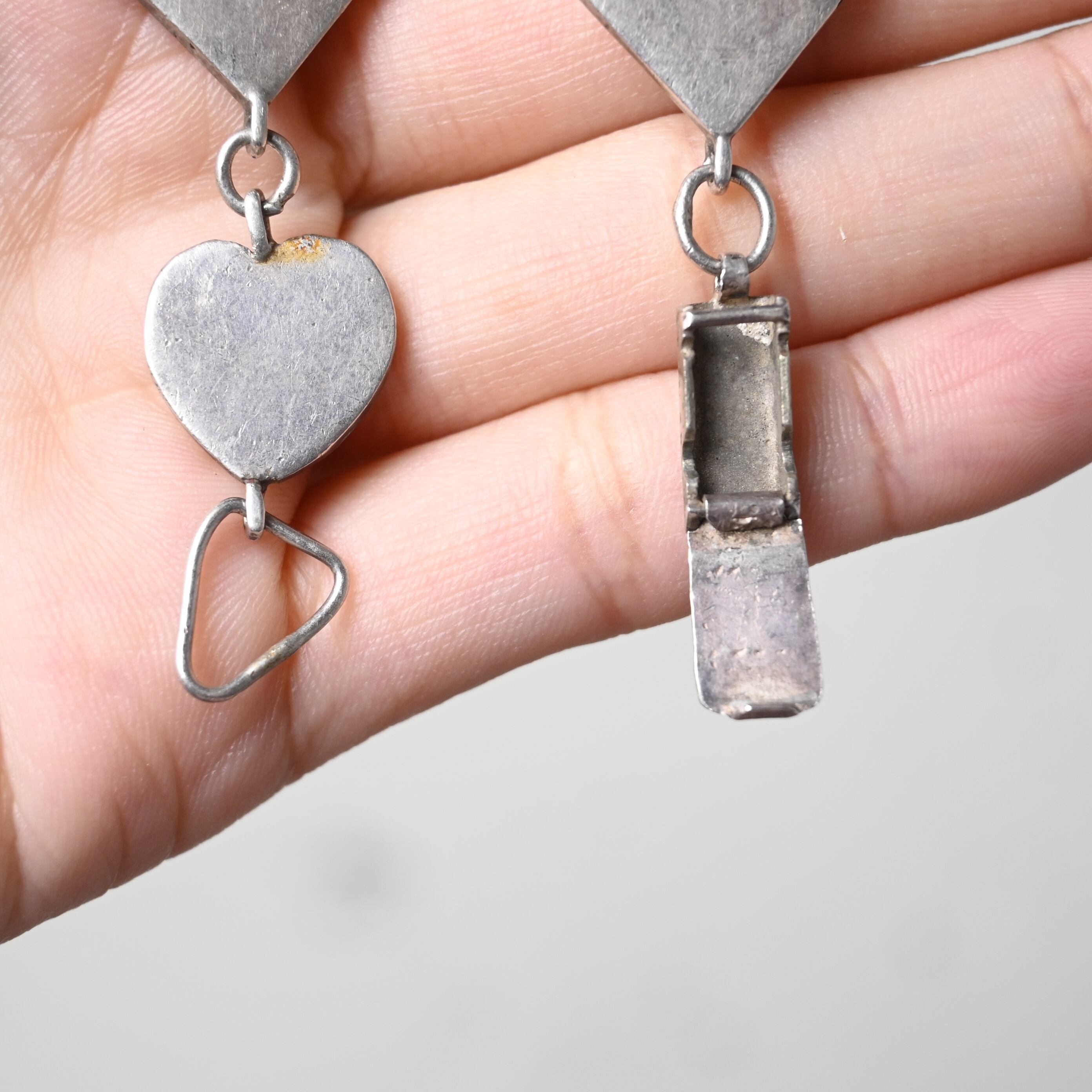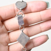 ハートモチーフとダイヤ型プレートを交互に組み合わせた、印象的なデザインのシルバーブレスレットです。