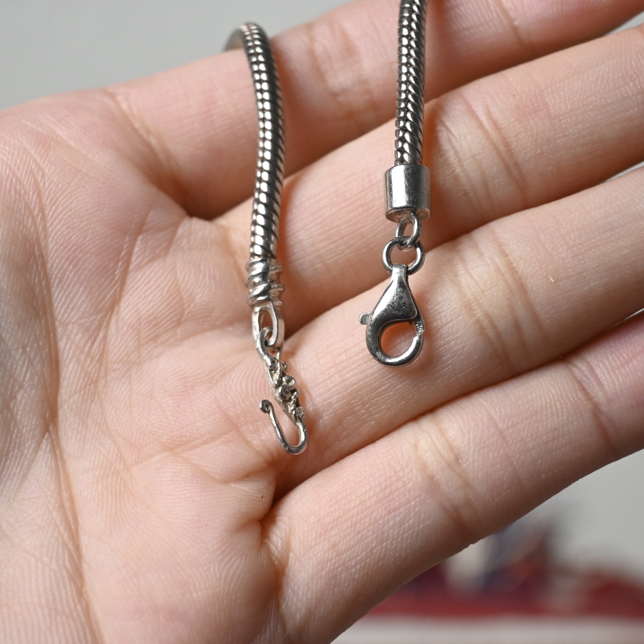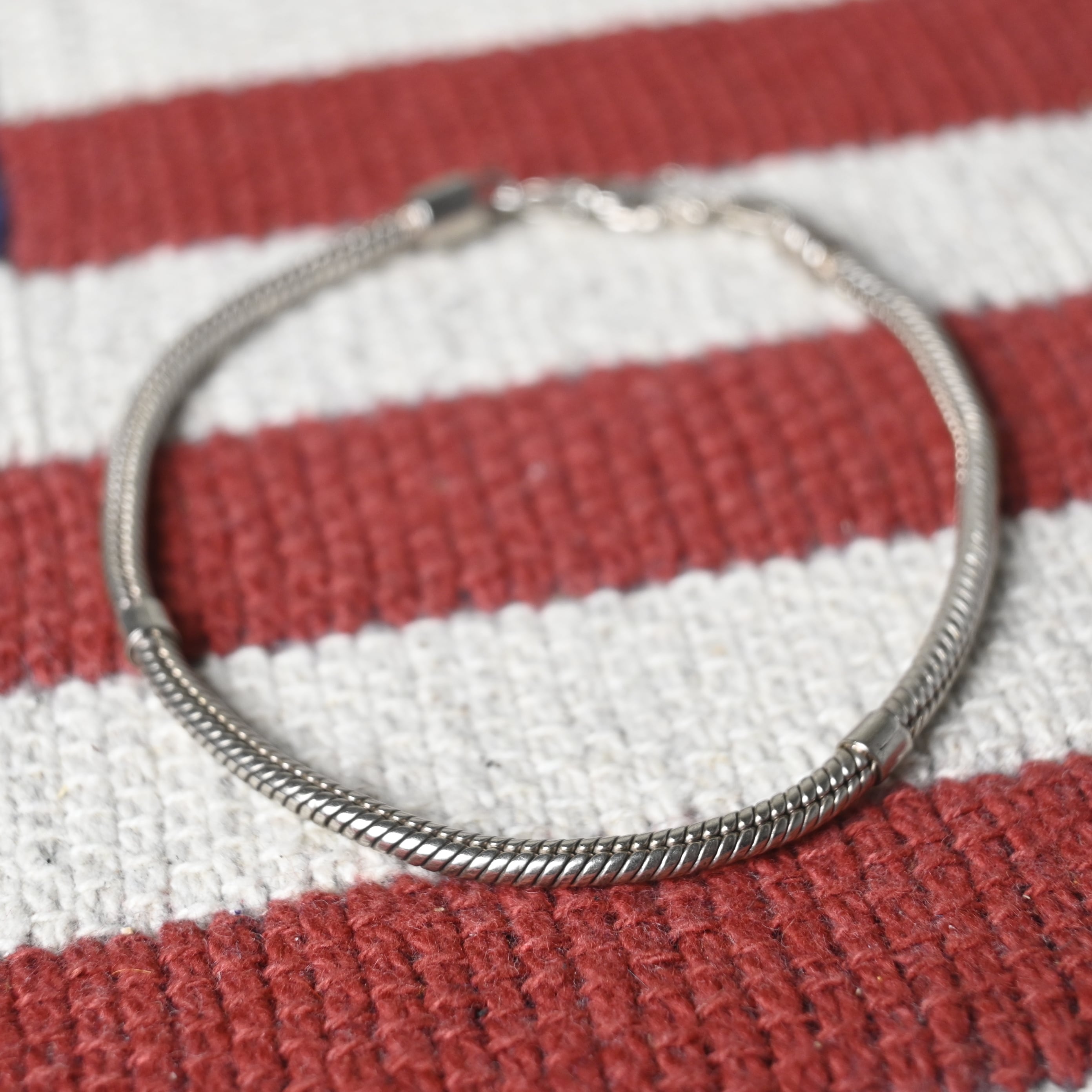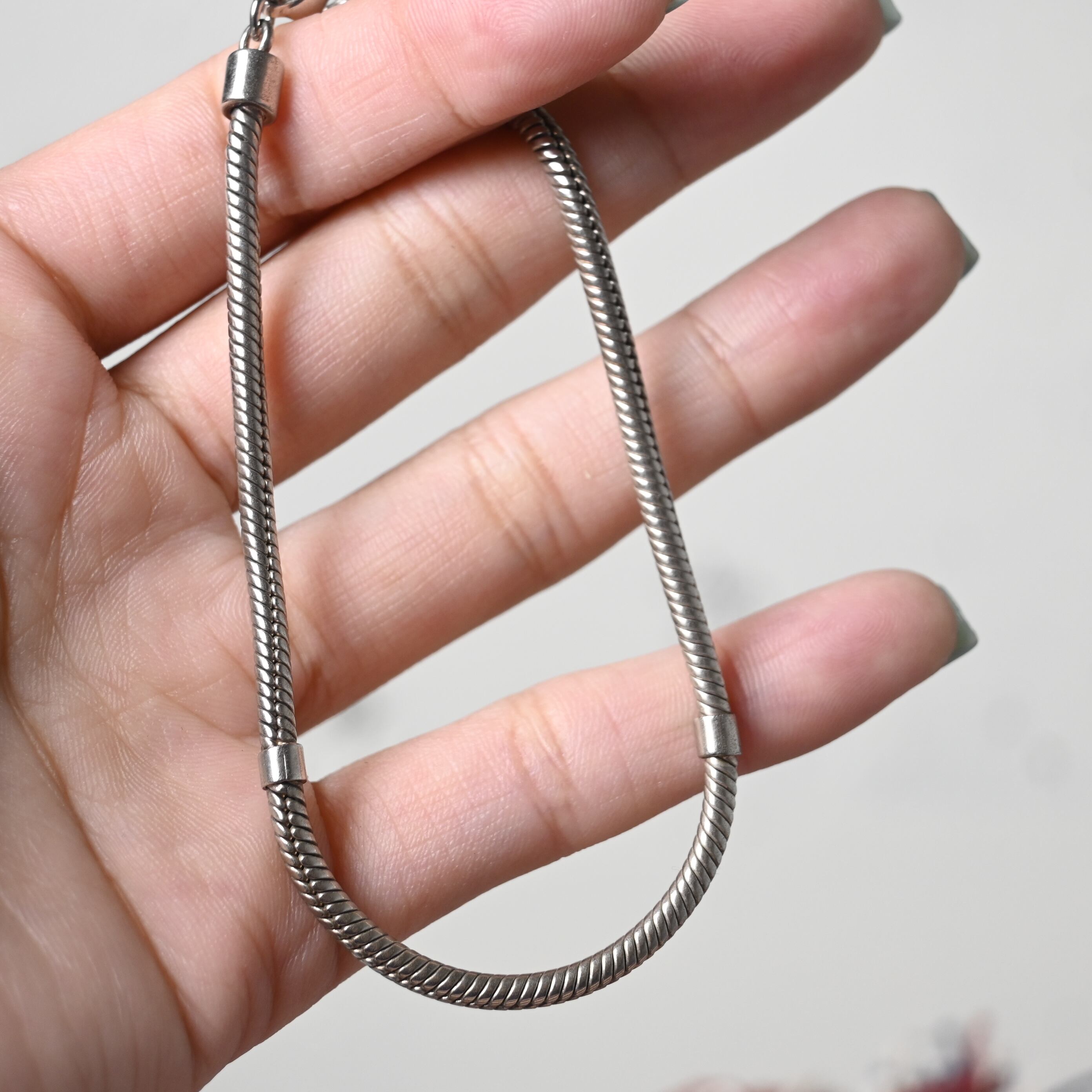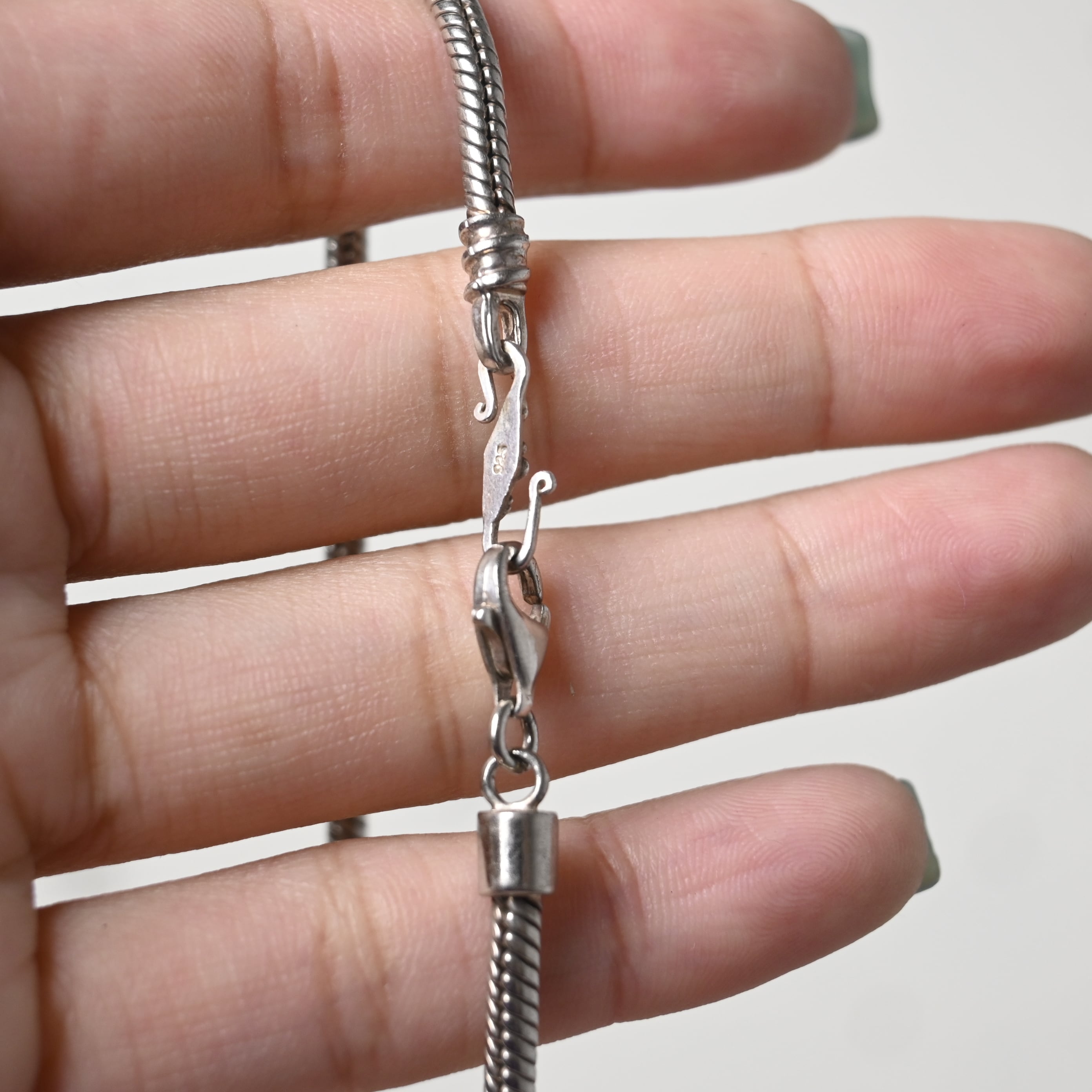 しなやかなスネークチェーンをベースにした、ミニマルな印象の925シルバーブレスレットです。