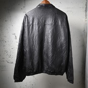 シェルには100% genuine leatherを使用。柔らかくしなやかな質感で、着用時に自然なドレープが生まれ、肩を落として着られるXL表記のゆったりしたバランスも魅力です。シャツやニットの上からはもちろん、スウェットの上にラフに羽織るだけでも雰囲気よくまとまります。