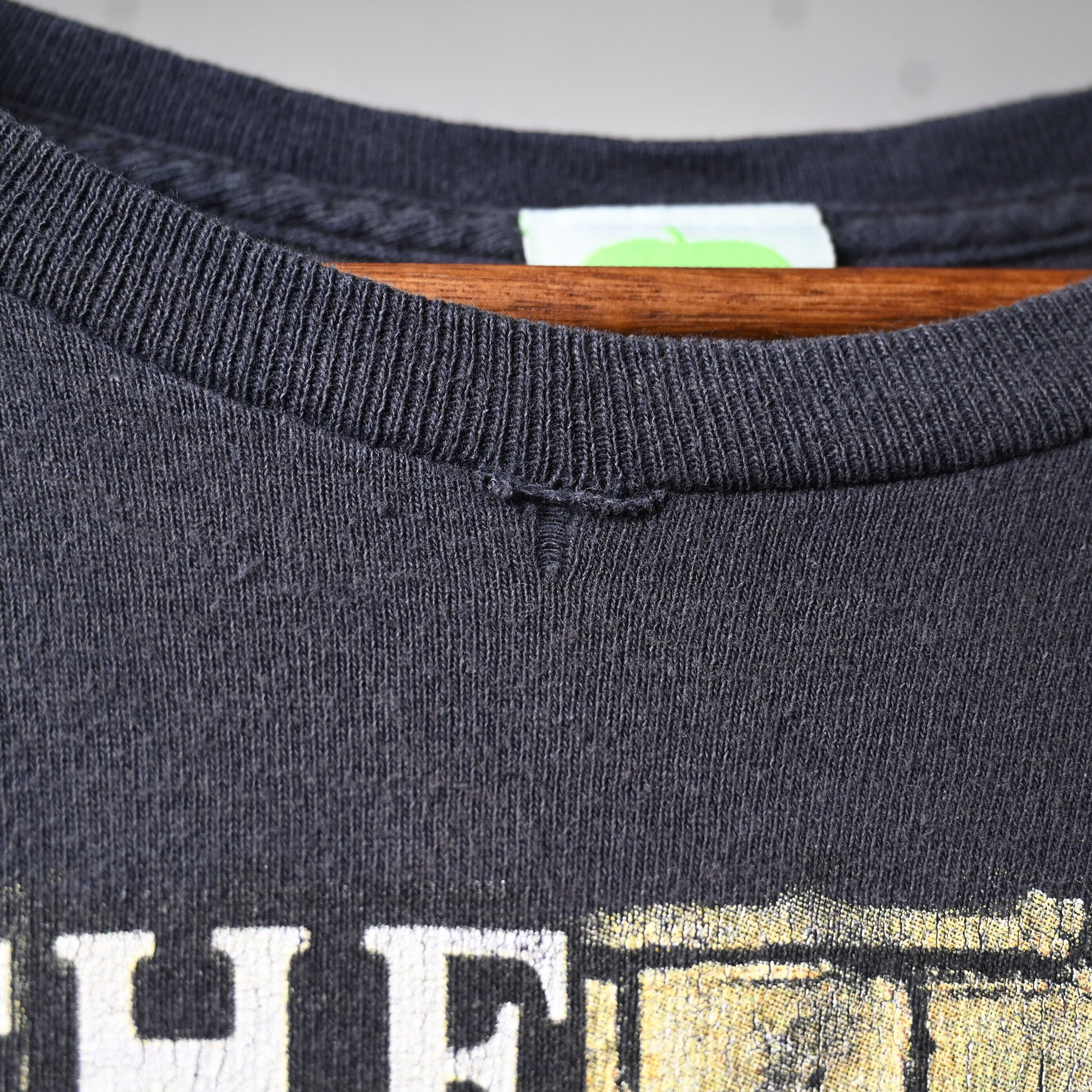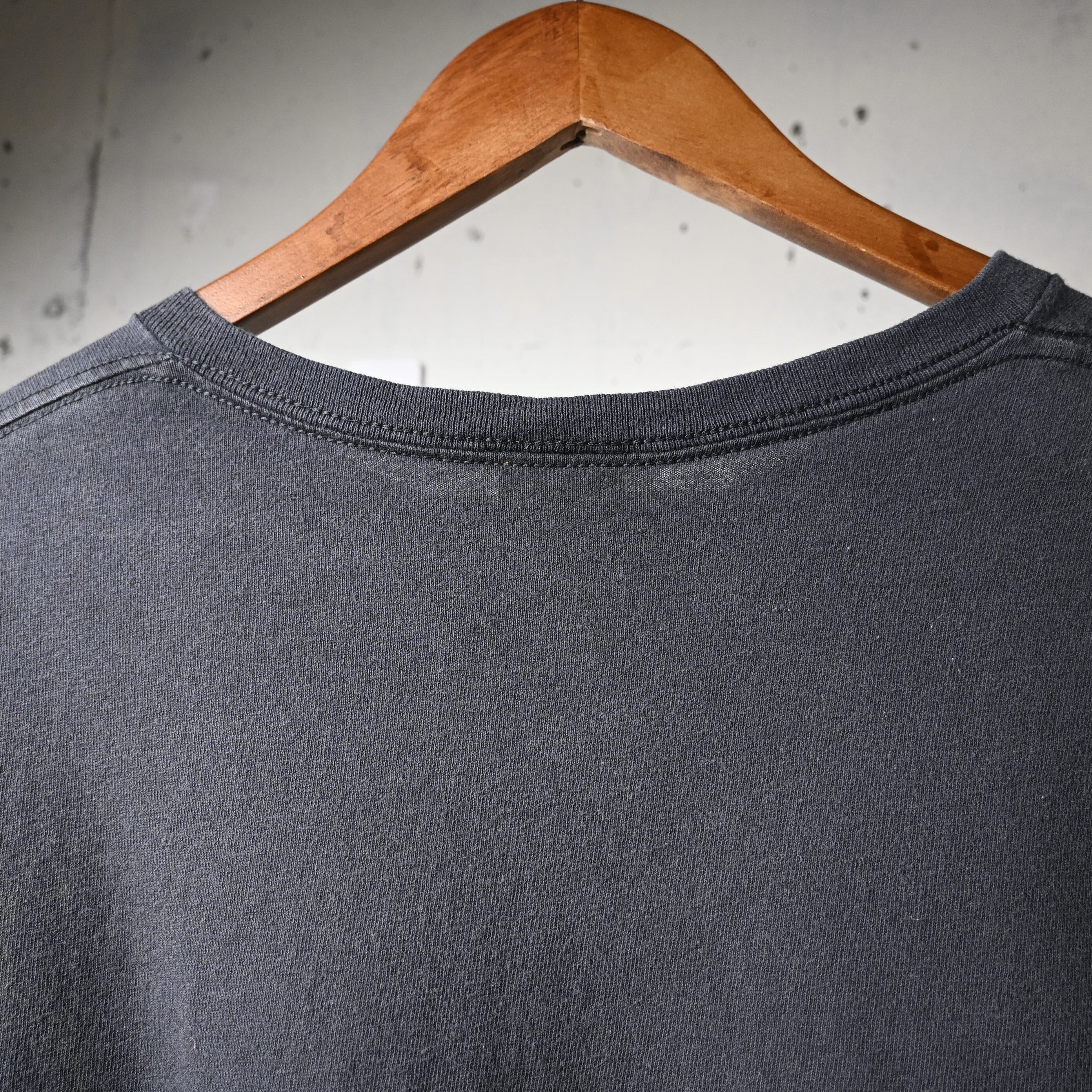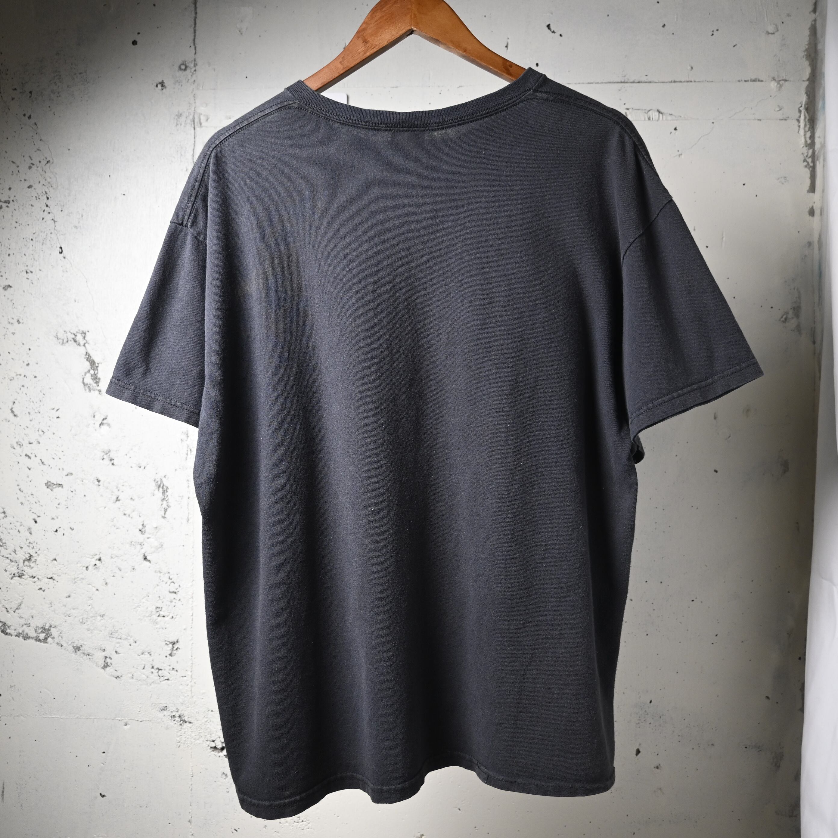 2011年コピーライト入りのオフィシャルライセンスボディで、程よくフェードしたブラックカラーがプリントとよく馴染み、着古された雰囲気も含めてバンドTシャツらしい空気があります。サイズ感はXL相当で、ゆったりとしたシルエット。デニムやカーゴ、ショーツなどと合わせるだけで雰囲気よくまとまります。