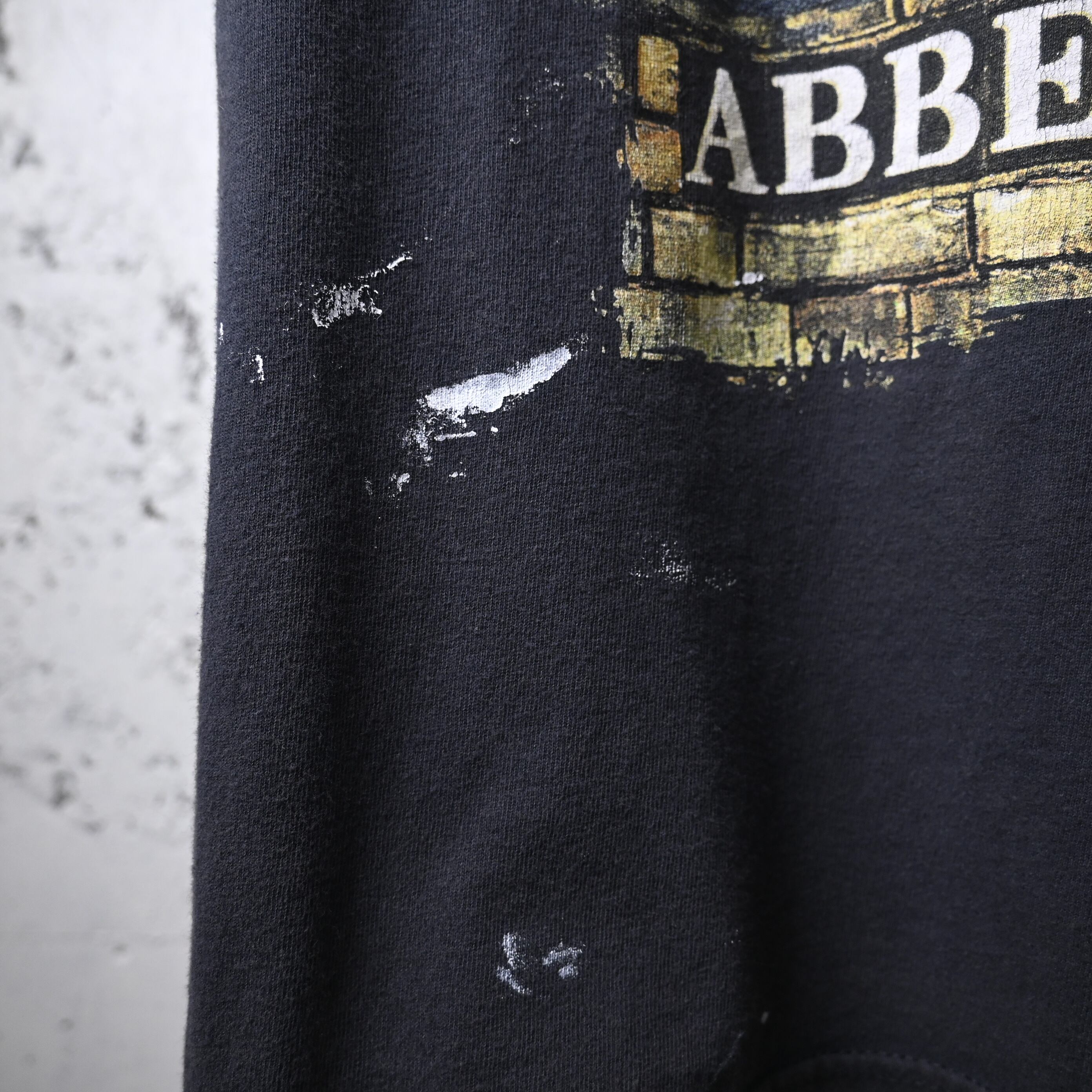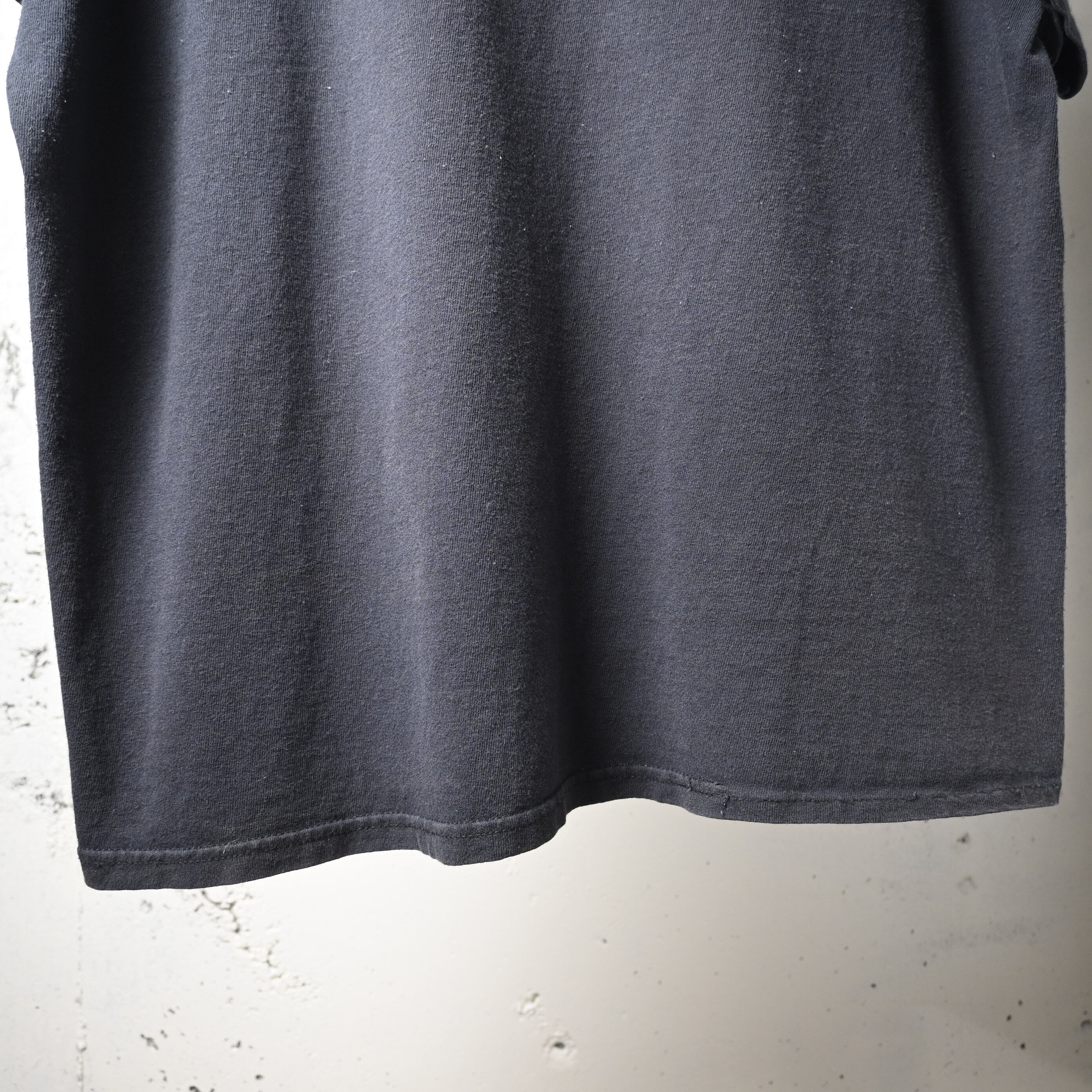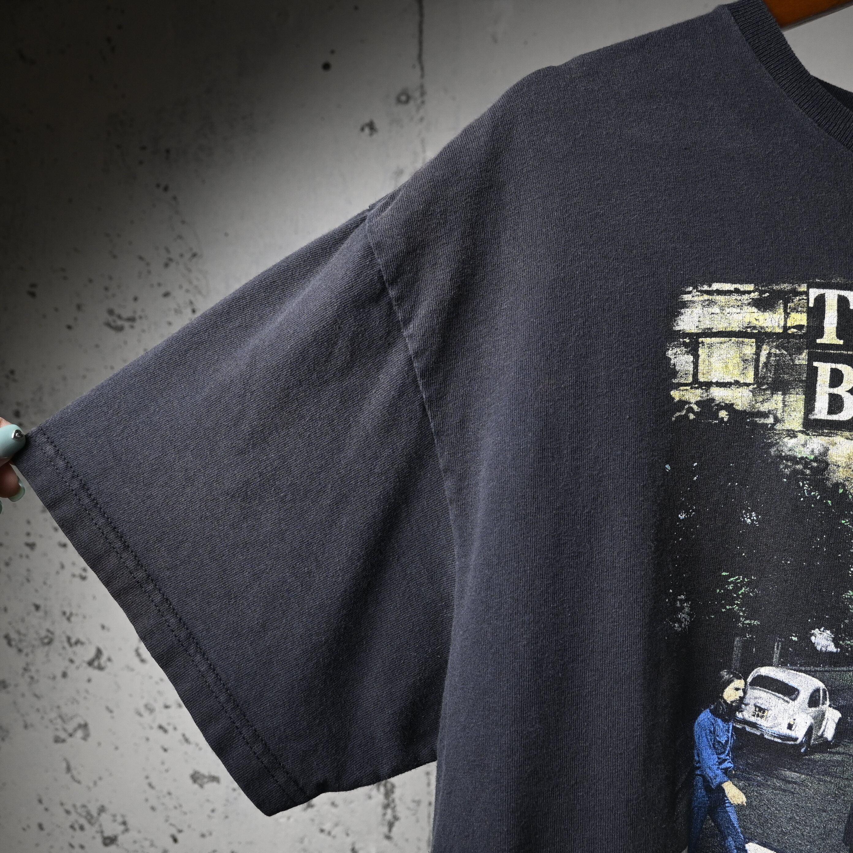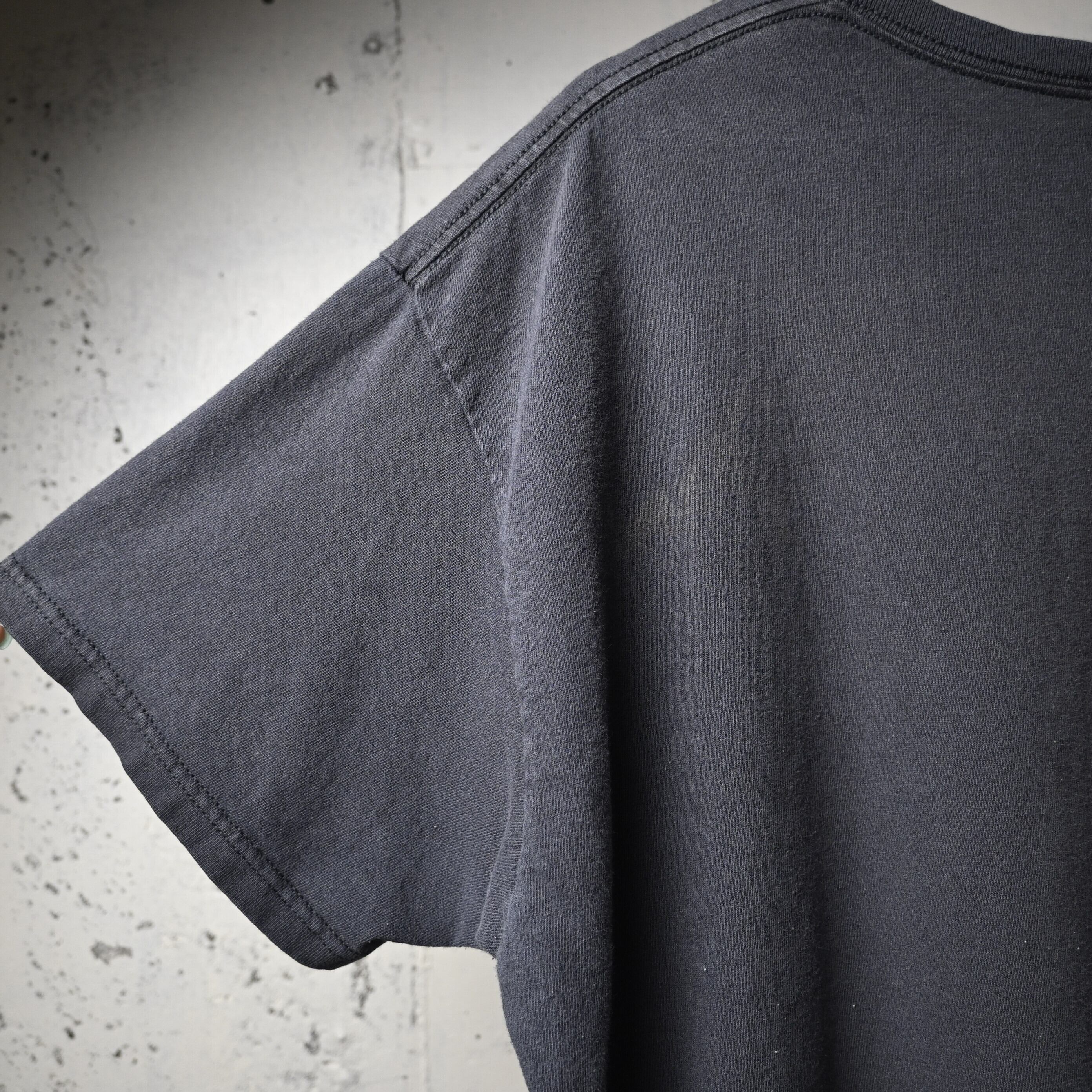 2011年コピーライト入りのオフィシャルライセンスボディで、程よくフェードしたブラックカラーがプリントとよく馴染み、着古された雰囲気も含めてバンドTシャツらしい空気があります。サイズ感はXL相当で、ゆったりとしたシルエット。デニムやカーゴ、ショーツなどと合わせるだけで雰囲気よくまとまります。