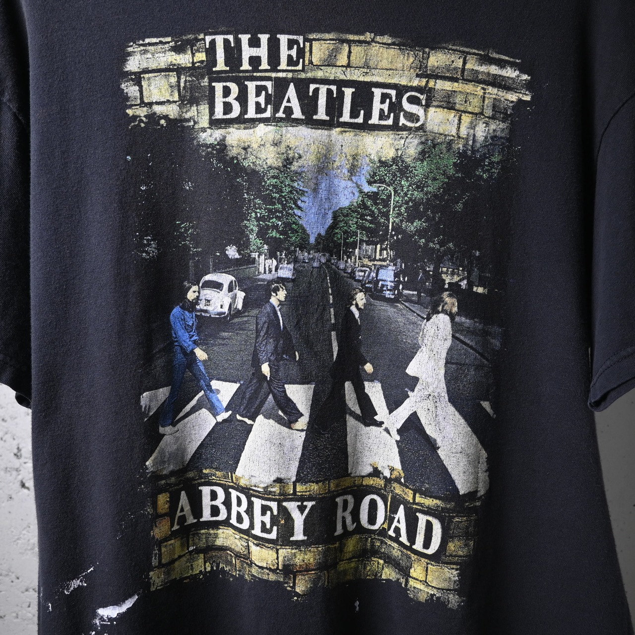 The Beatles の代表作として現在も圧倒的な知名度を持つ Abbey Road のジャケットアートを大胆にフロントへ落とし込んだ一枚です。