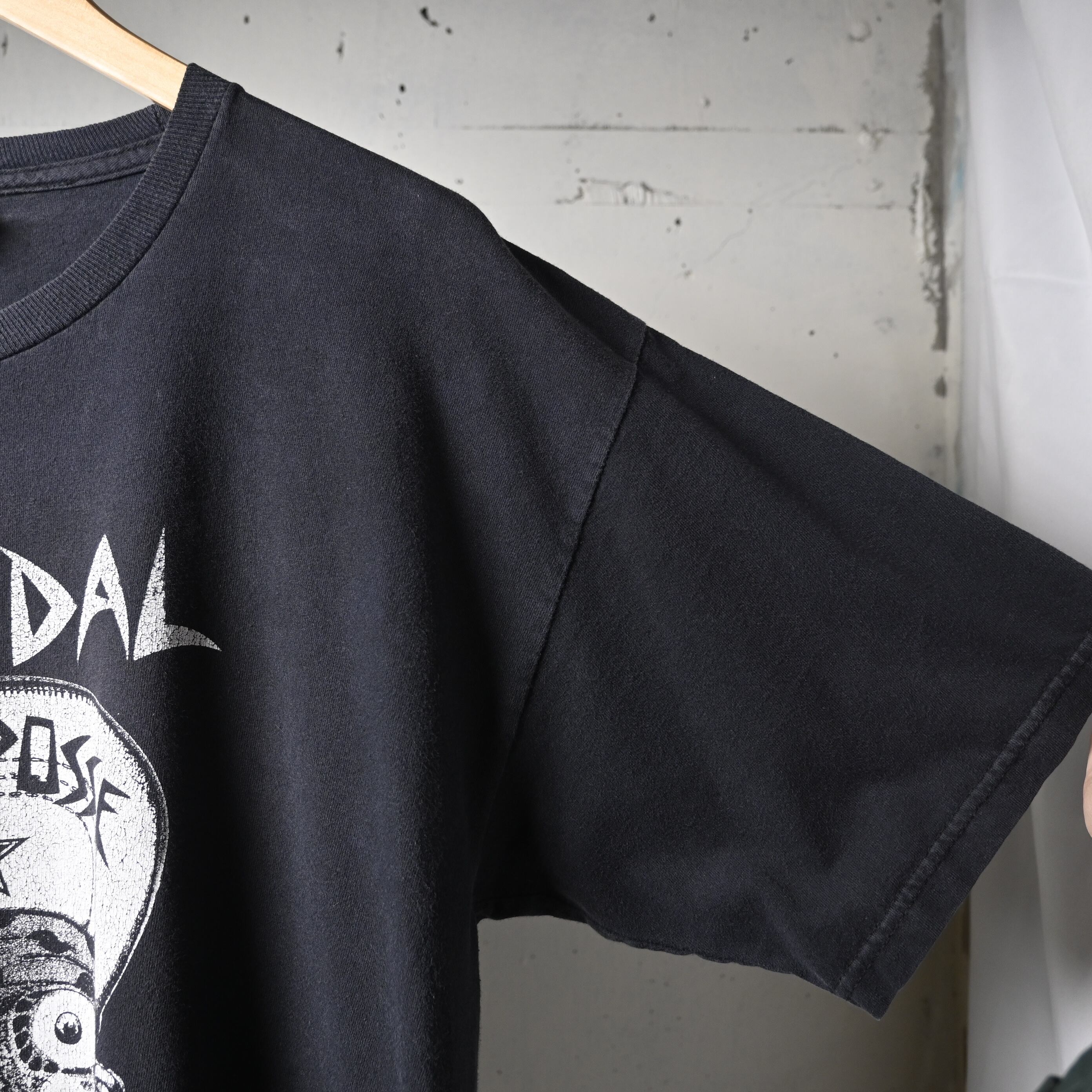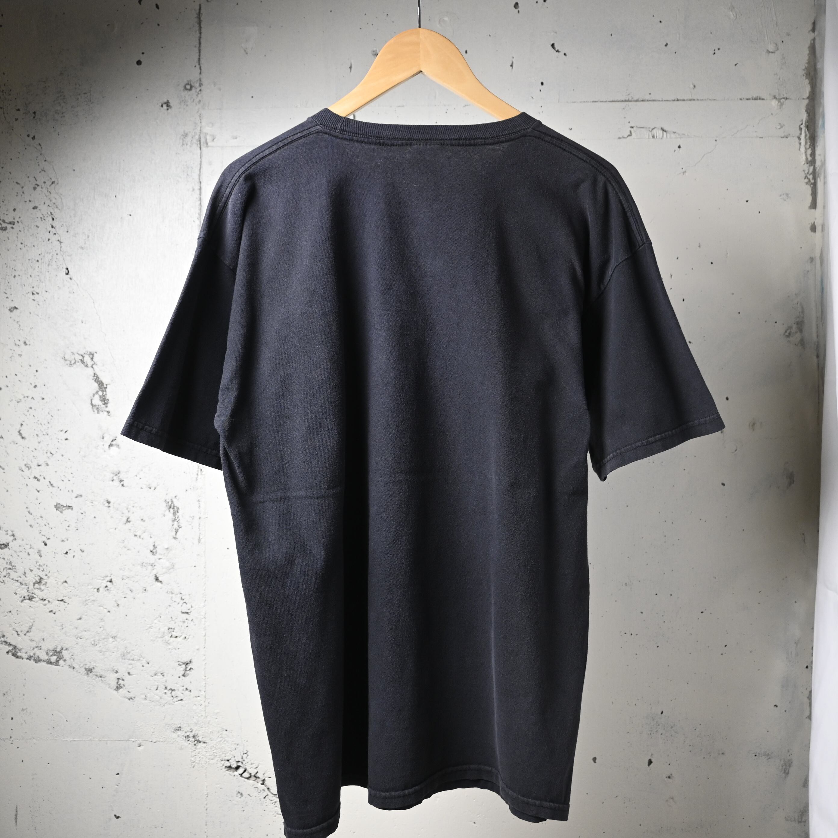 Mexico製コットンボディ。全体に着用感がありますが、プリントの雰囲気も良く、フェード感を含めて古着らしい表情に仕上がっています。左袖には小さなダメージがあります。