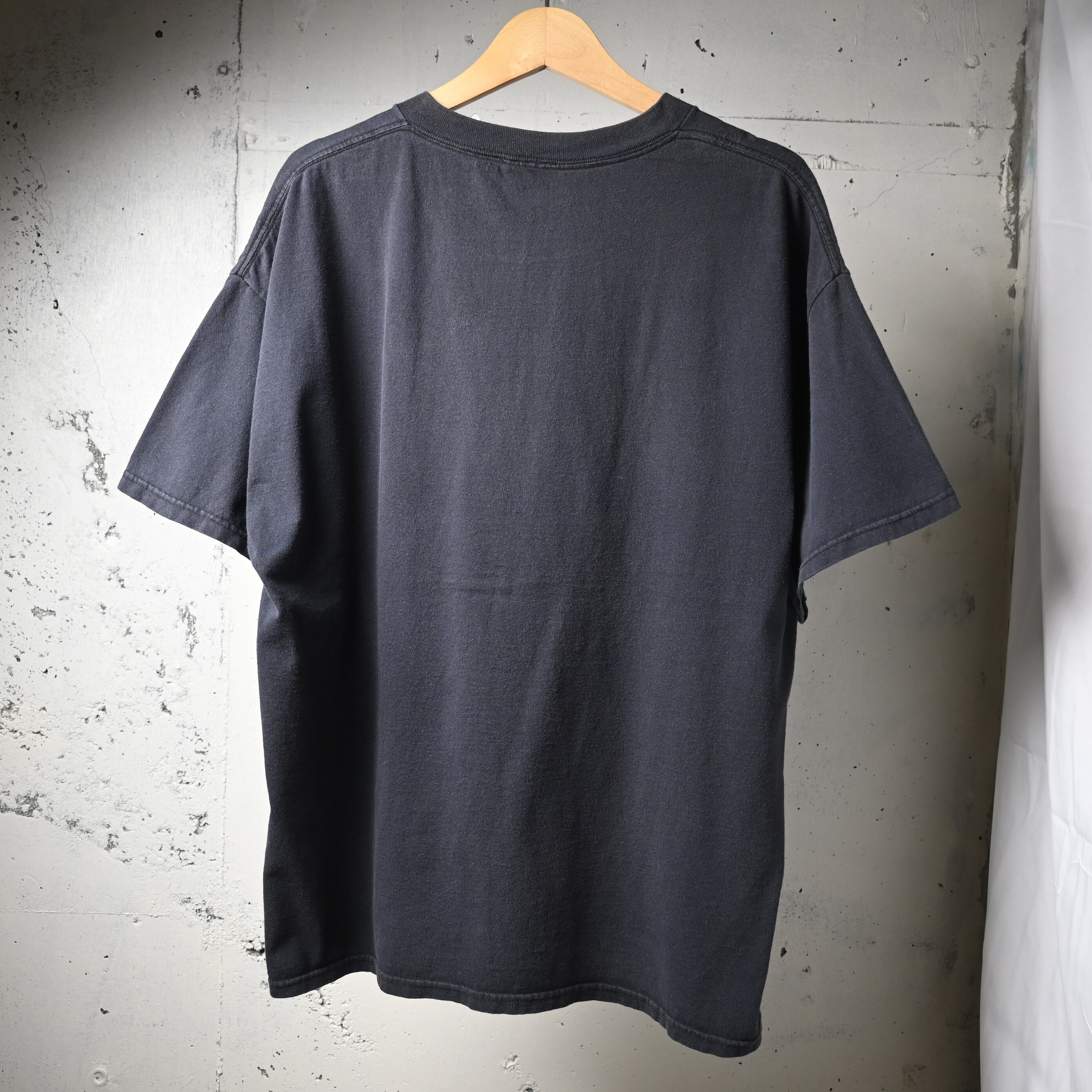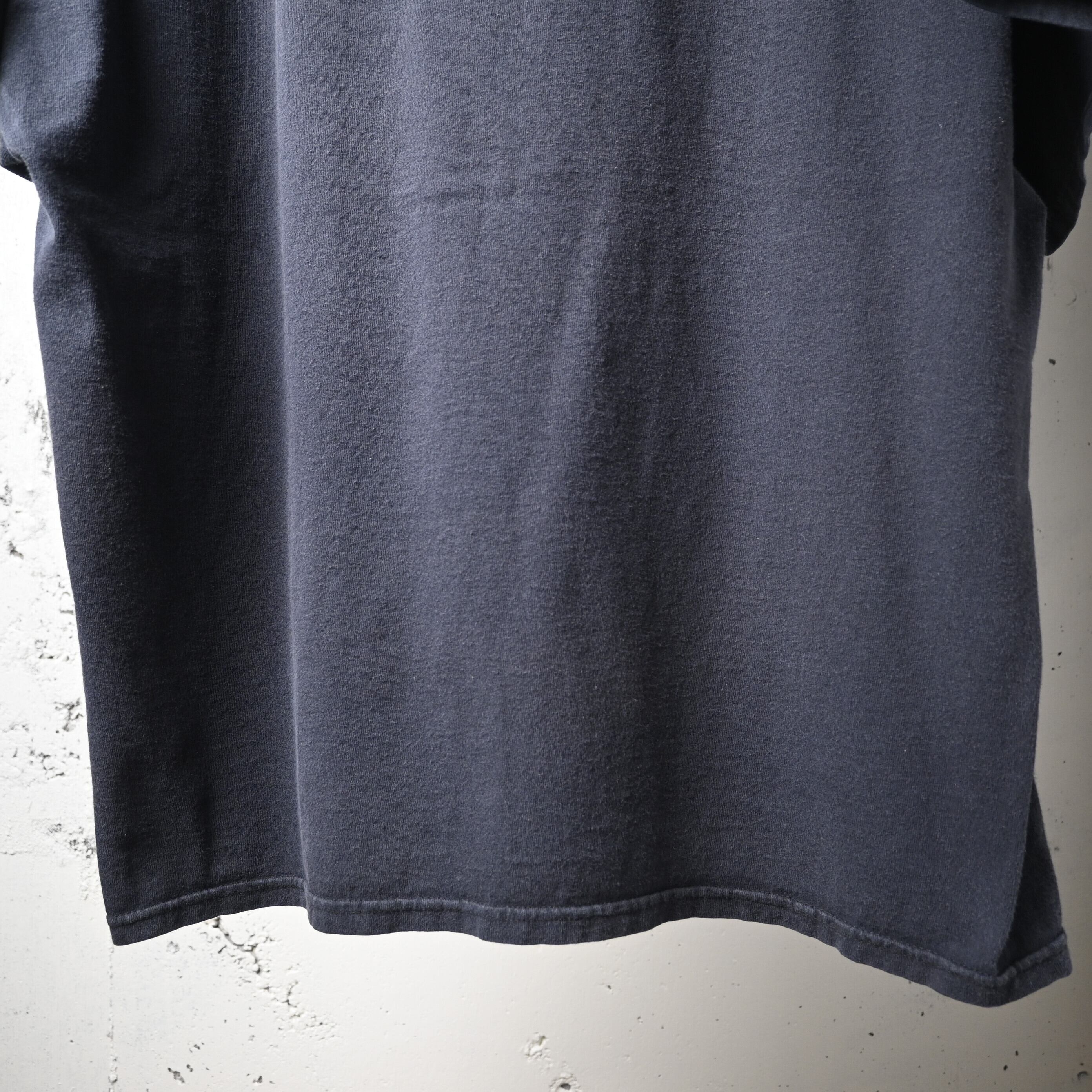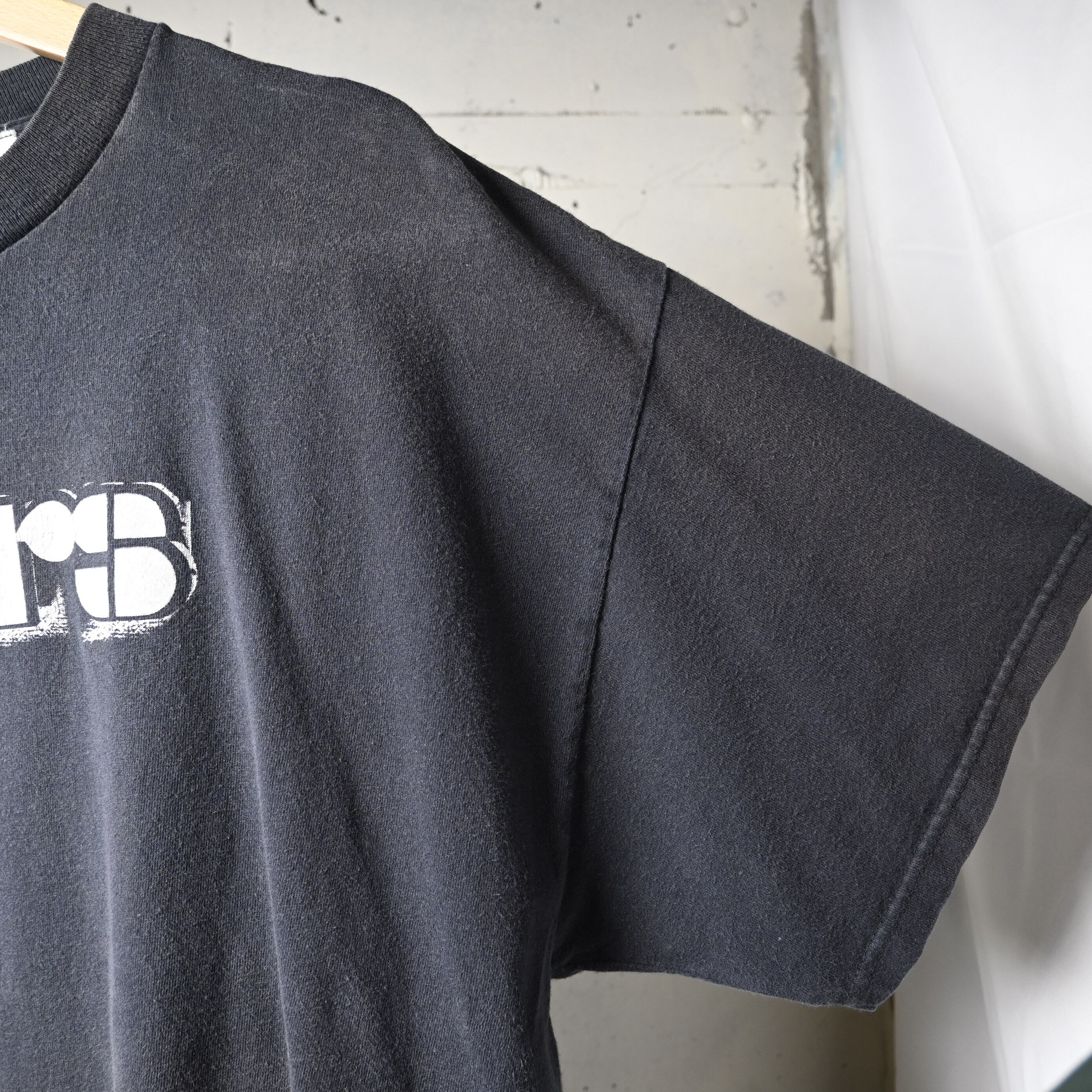 派手なグラフィックではなくロゴ主体なので、デニム、軍パン、スラックスまで幅広く合わせやすく、インナー使いでも主張しすぎないバランスです。フェードしたブラックの色味も含めて、古着らしい空気感が楽しめます。