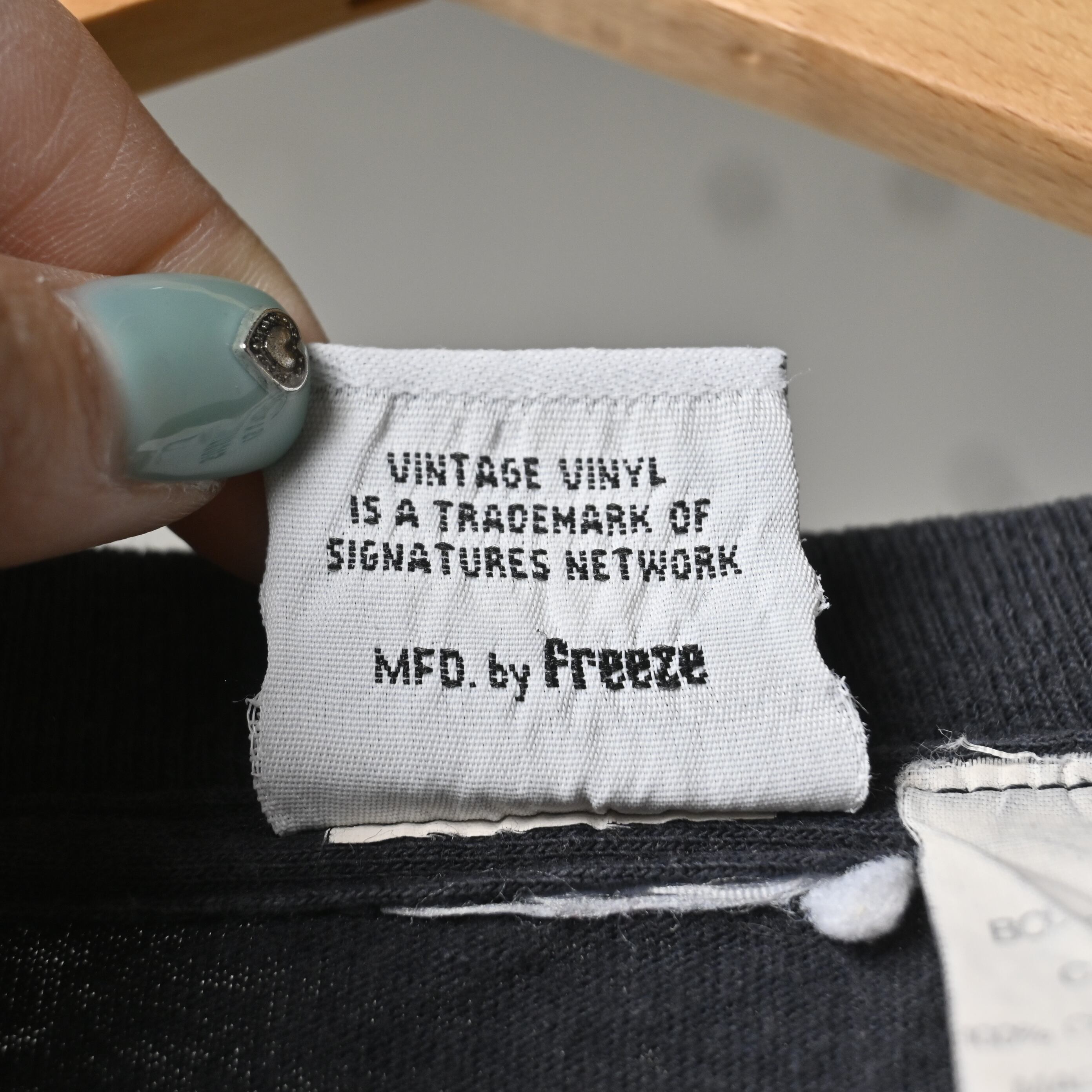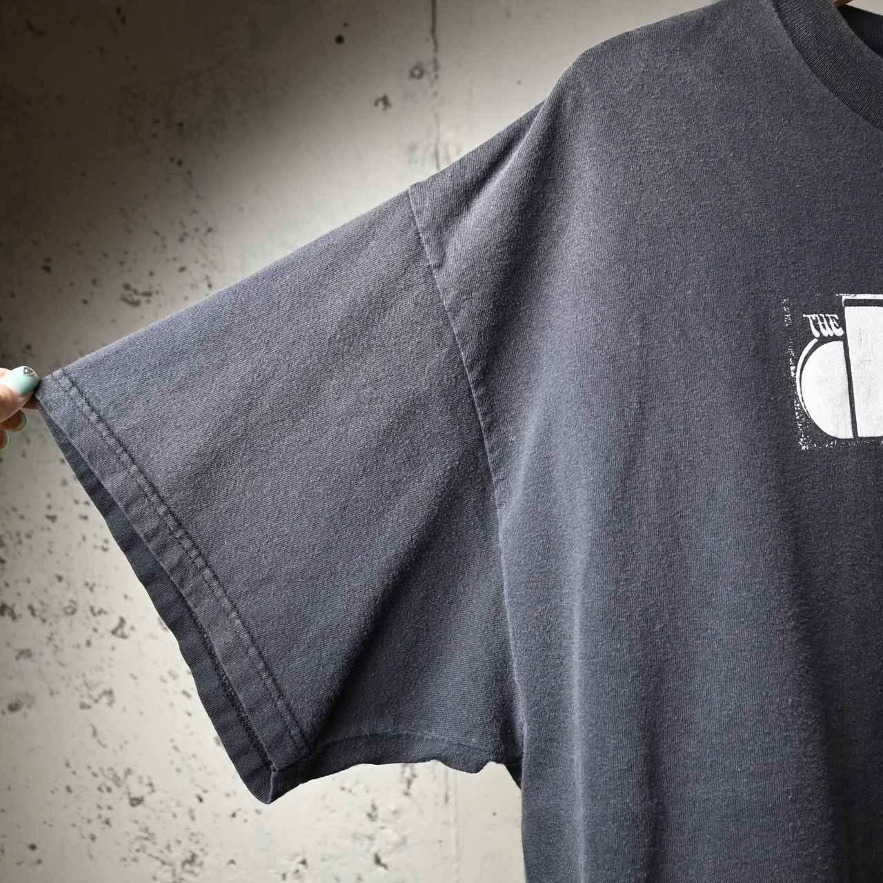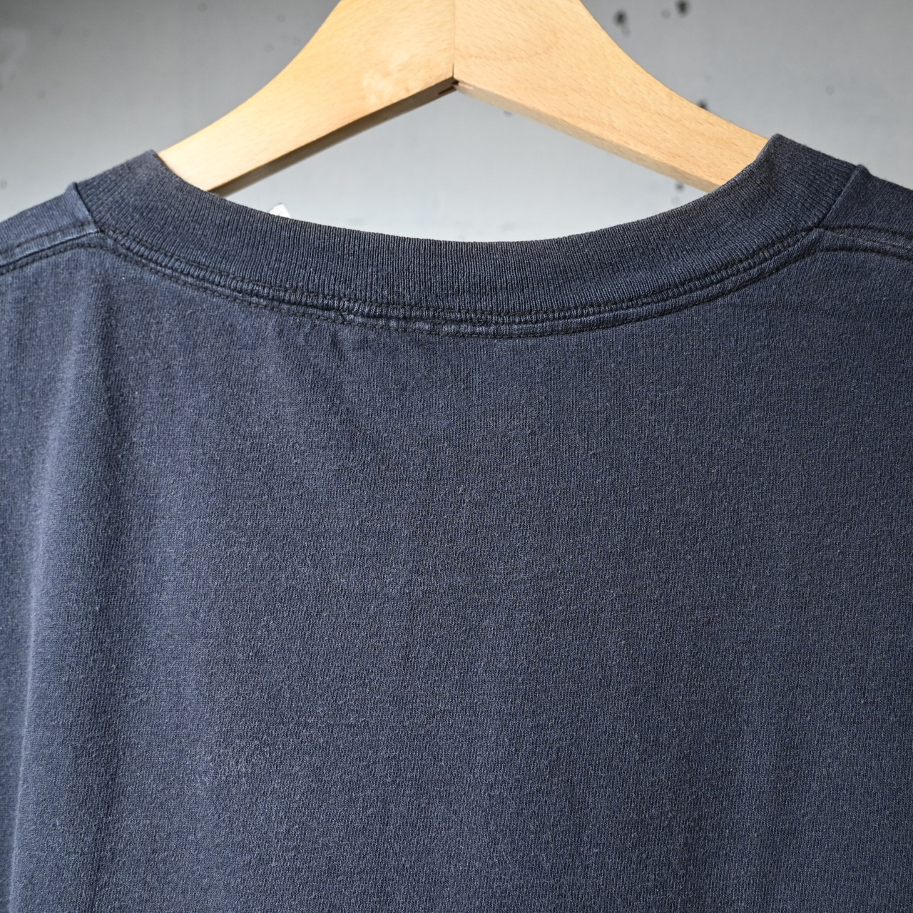 派手なグラフィックではなくロゴ主体なので、デニム、軍パン、スラックスまで幅広く合わせやすく、インナー使いでも主張しすぎないバランスです。フェードしたブラックの色味も含めて、古着らしい空気感が楽しめます。
